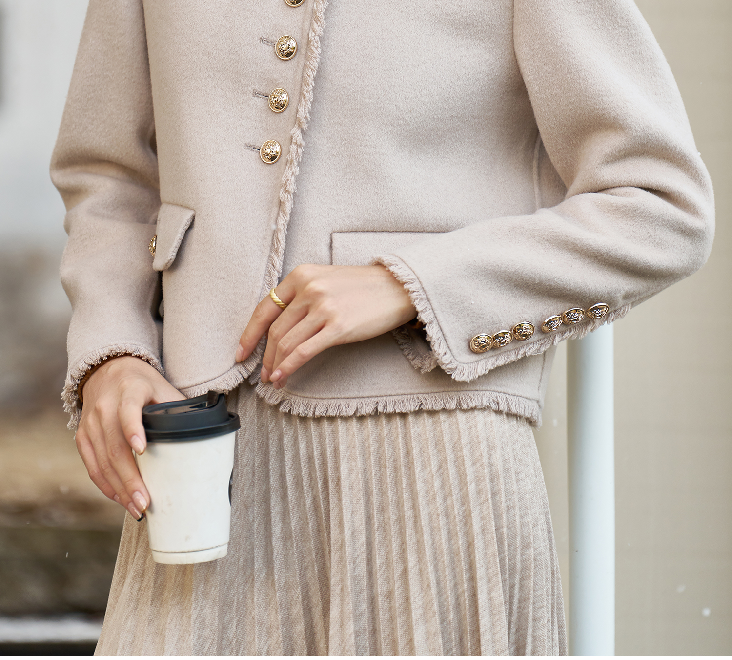 剩S/M/L/XL 【羊毛双面呢外套】米思阳2026春冬季新款法式精致短款毛呢外套高级感羊毛上衣女3660
