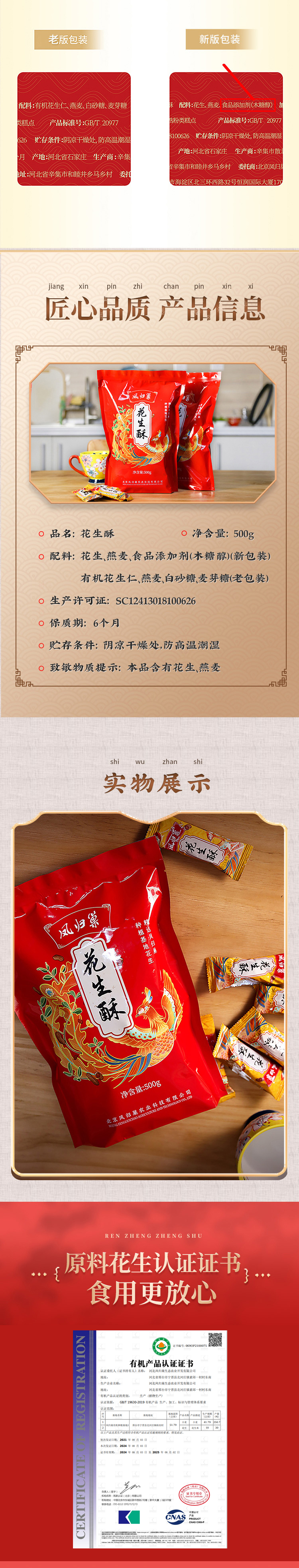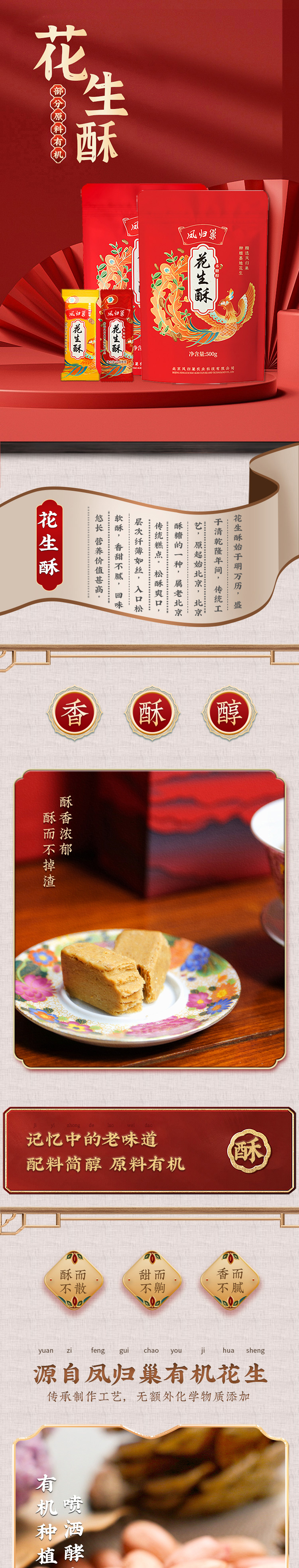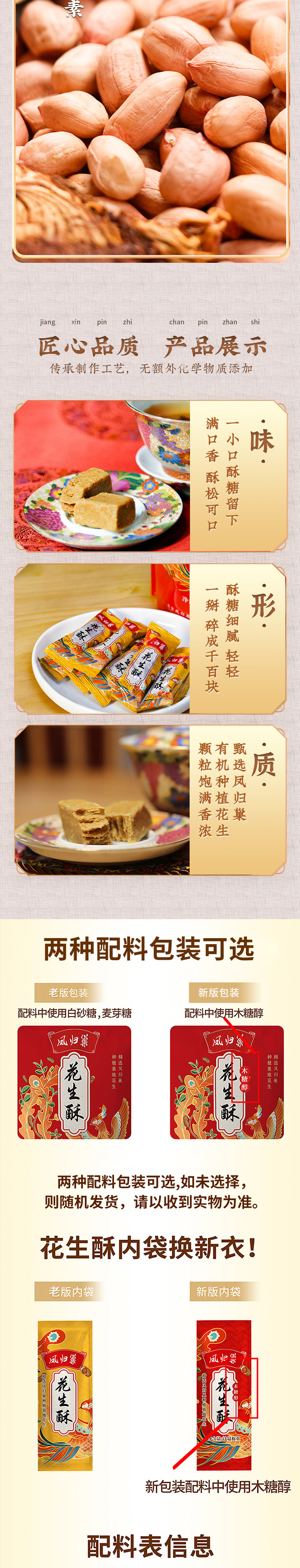 【有机花生制作】凤归巢 花生酥袋装 500g 年货礼品 酥香美味