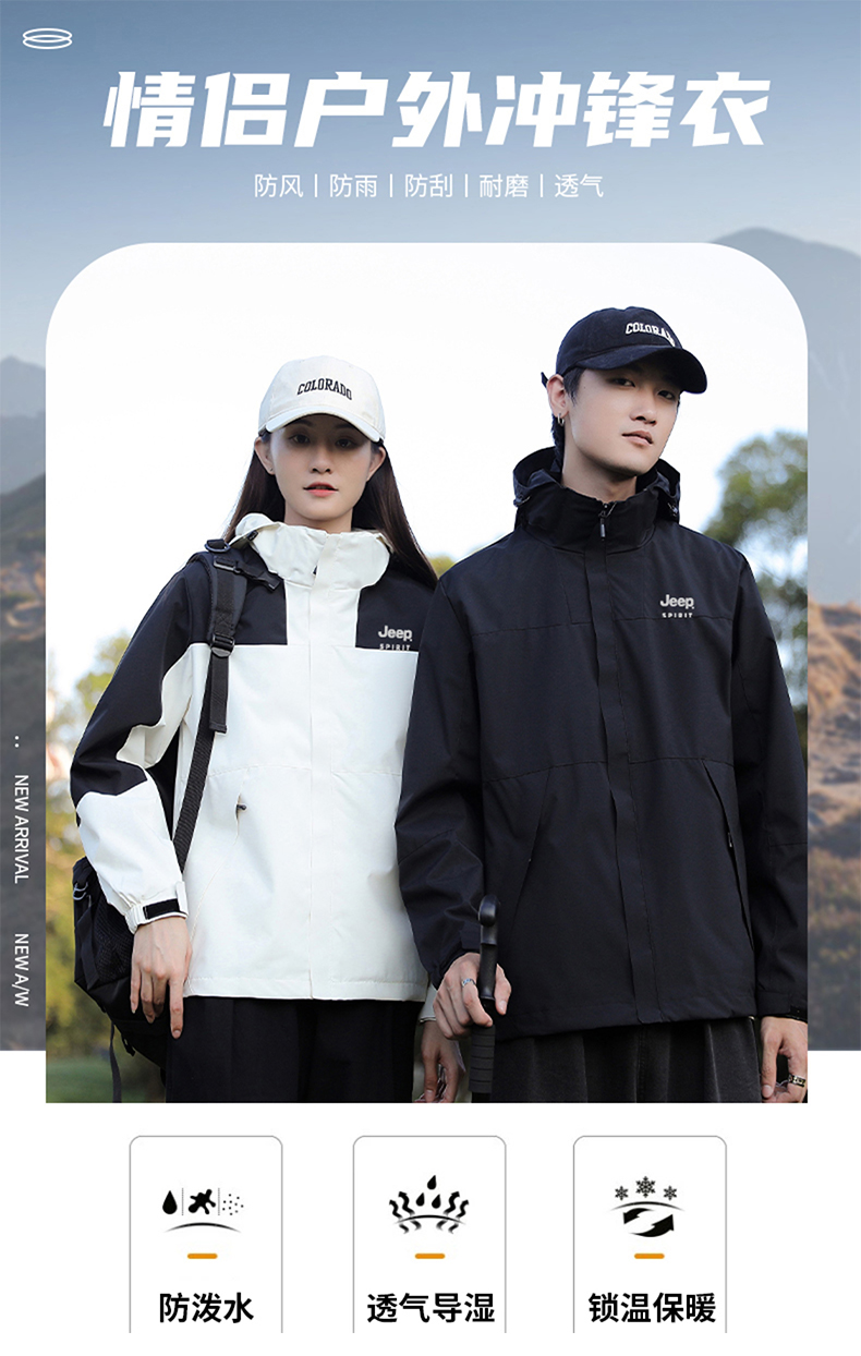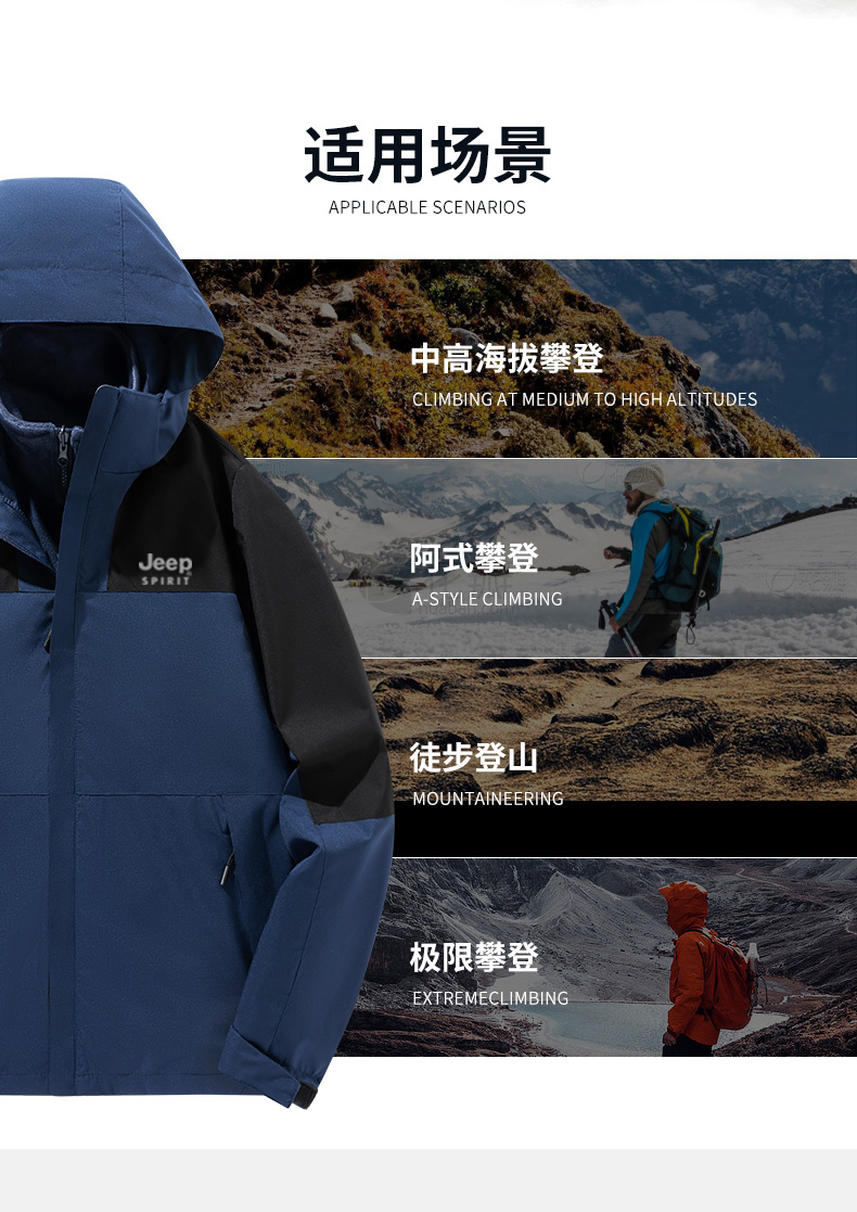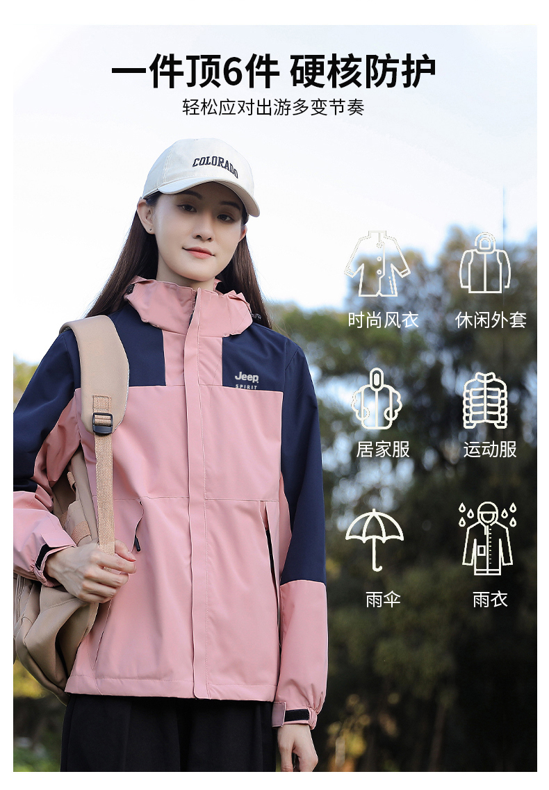 JEEP SPIRIT三合一情侣冲锋衣2308款,加厚可拆卸内胆,防风防水保暖时尚百搭