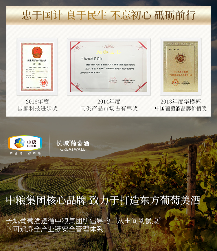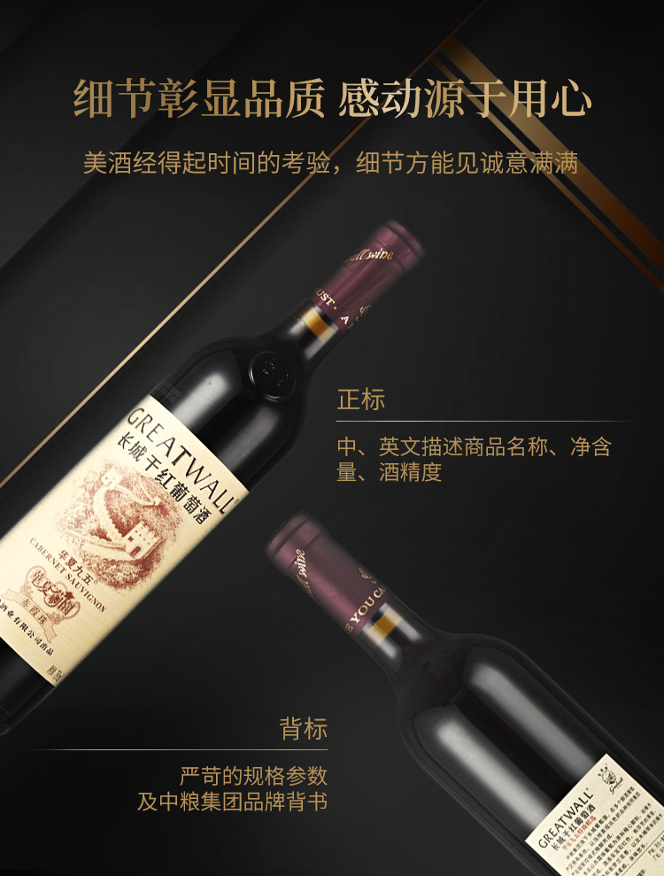 长城 华夏葡园九五特级精选赤霞珠干红葡萄酒 750ml*6瓶 整箱装 中粮出品