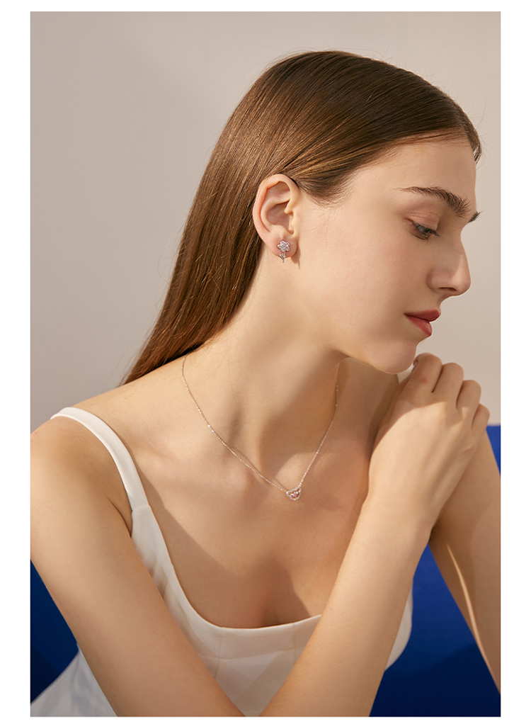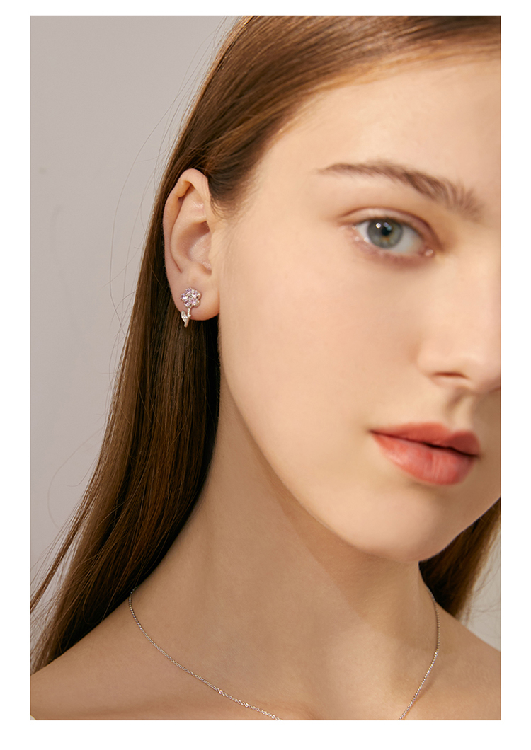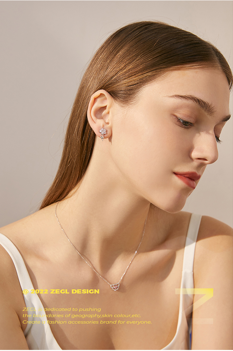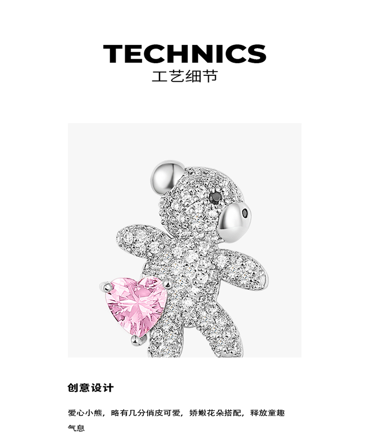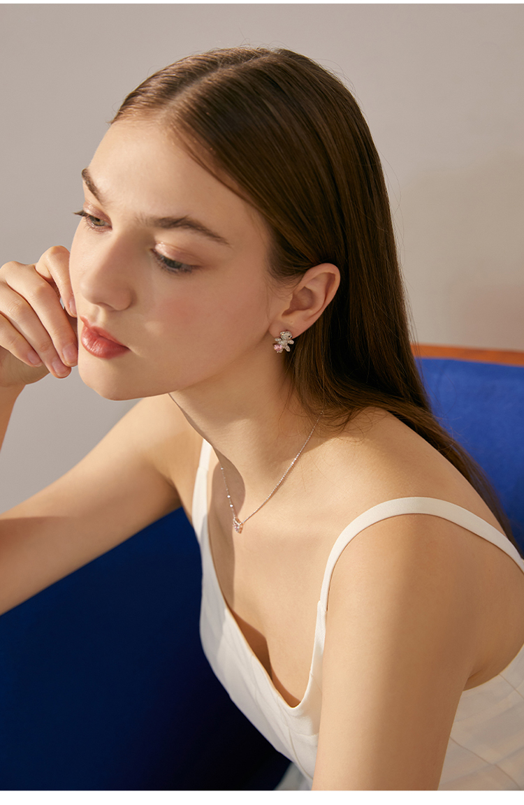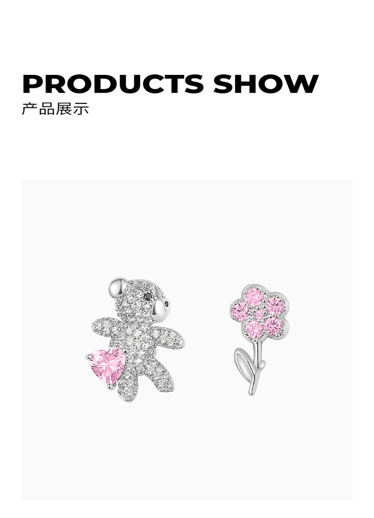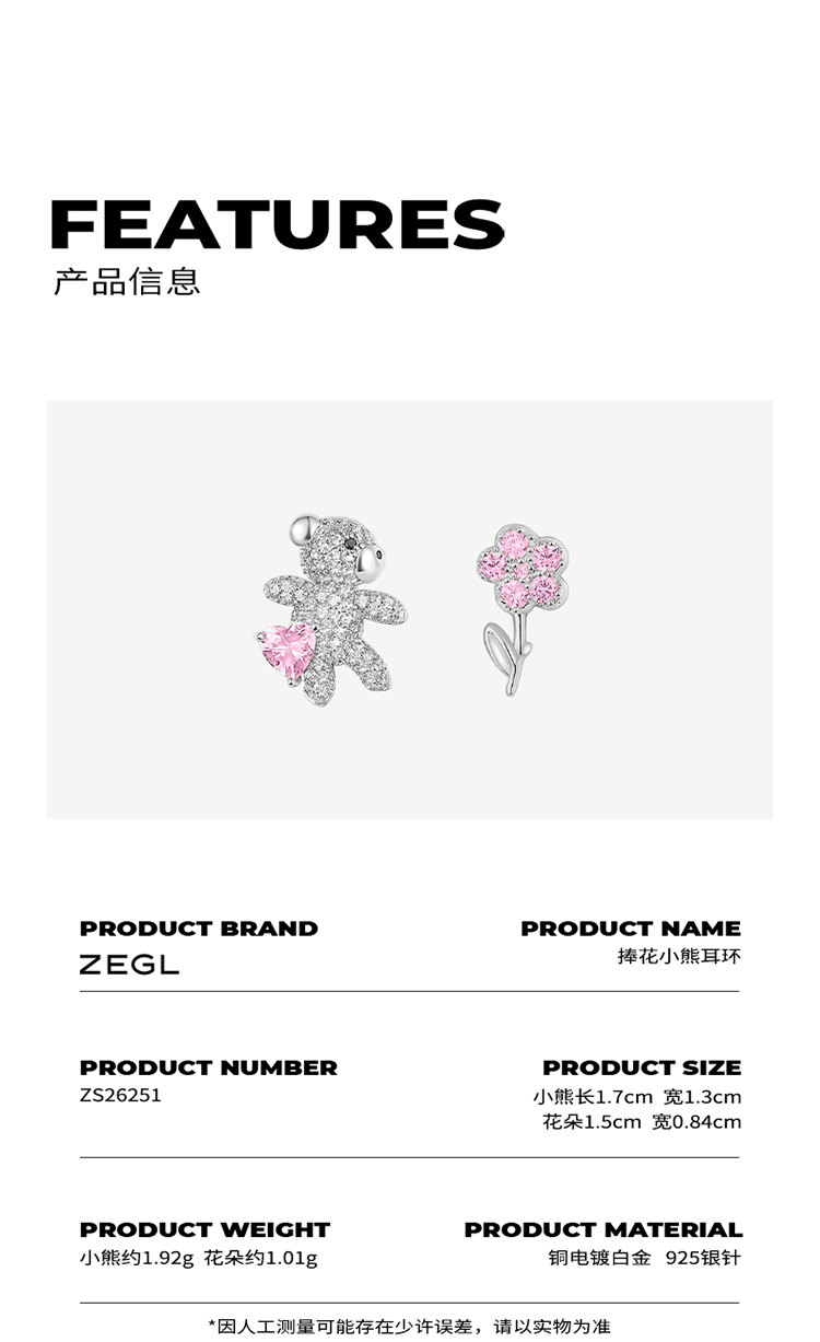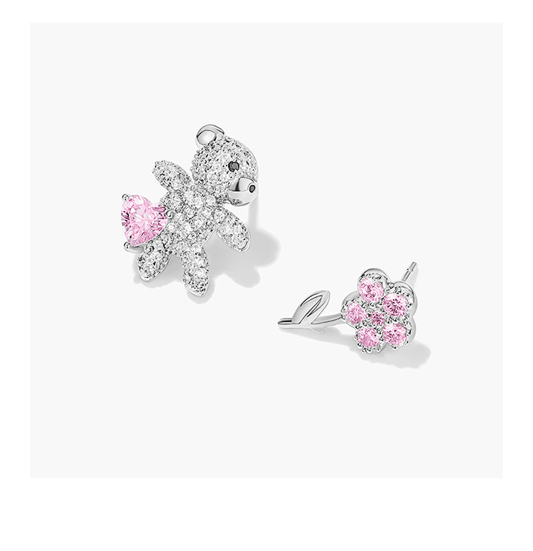 ZEGL设计师小熊花朵耳钉女小众设计感高级耳环925银针不对称耳饰