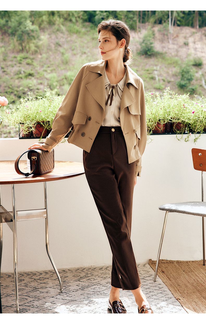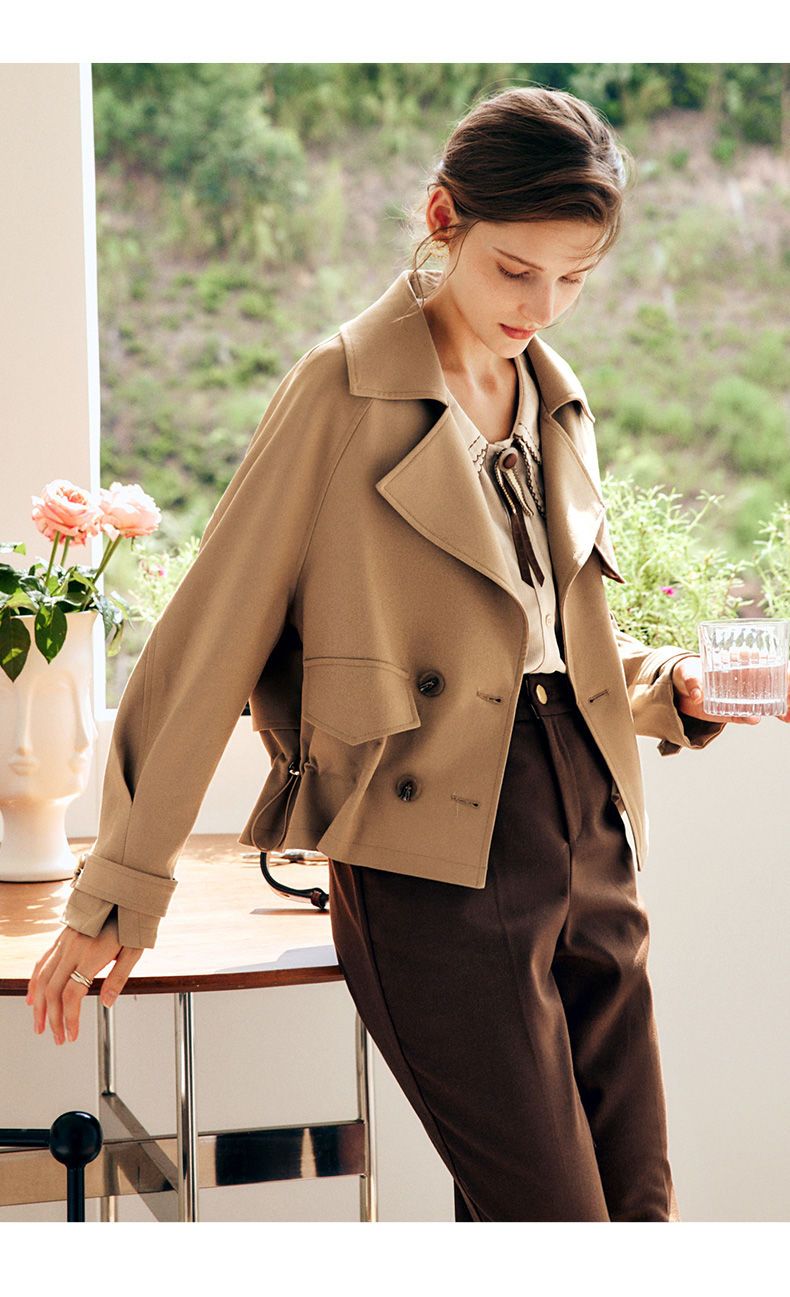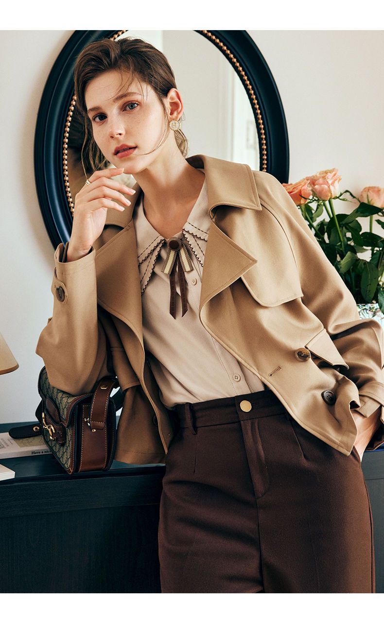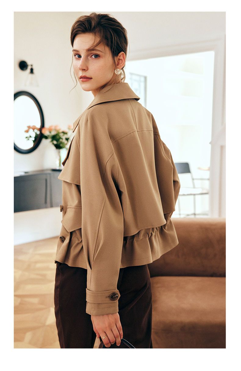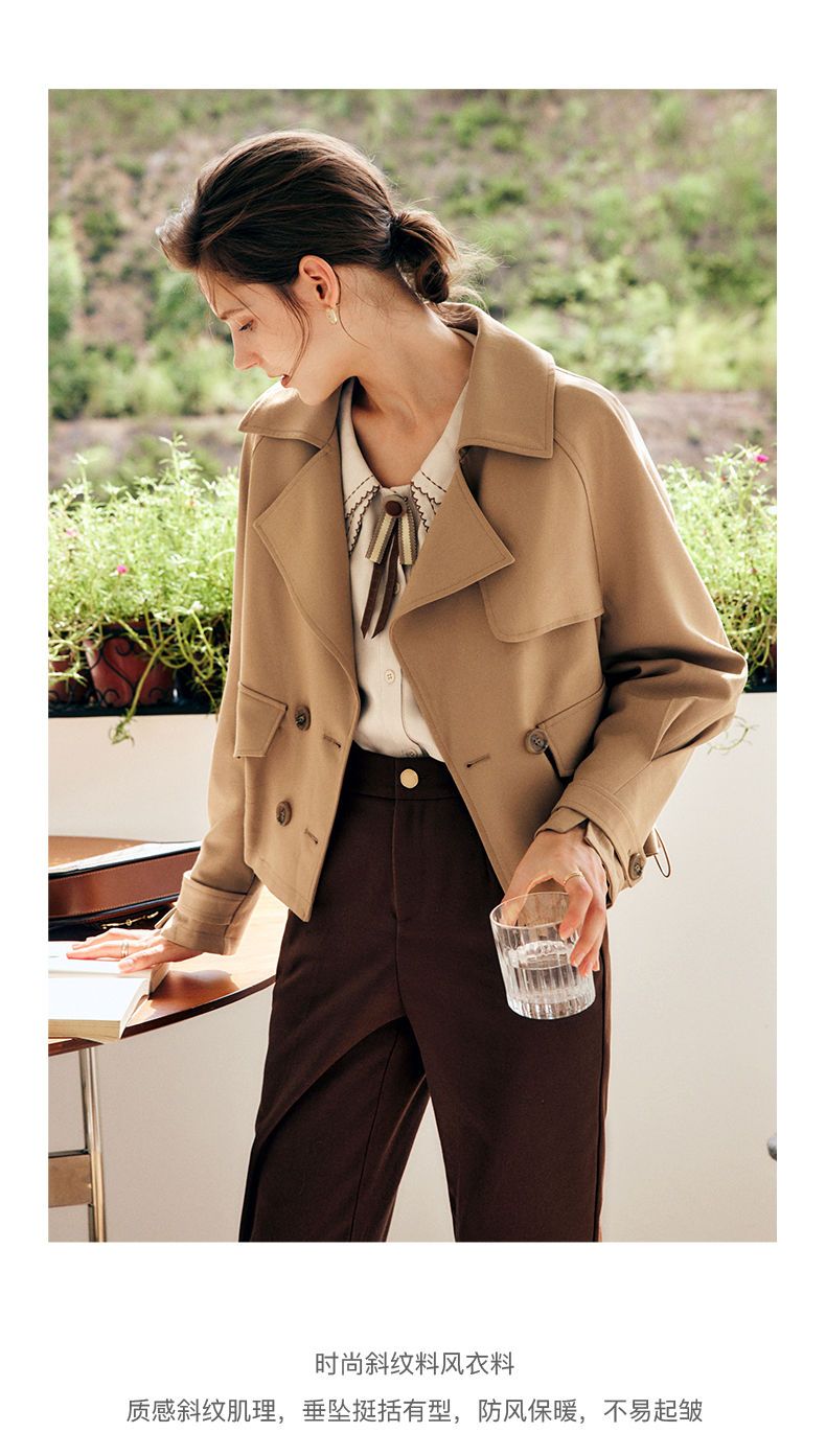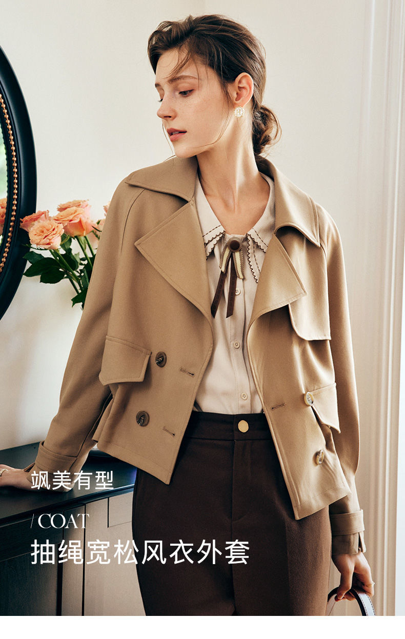 欧芮儿法式卡其色风衣外套女春秋2022年新款小个子翻领外套