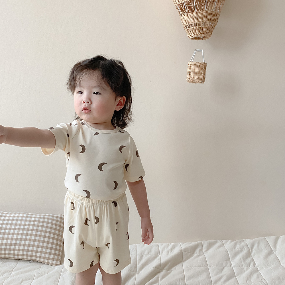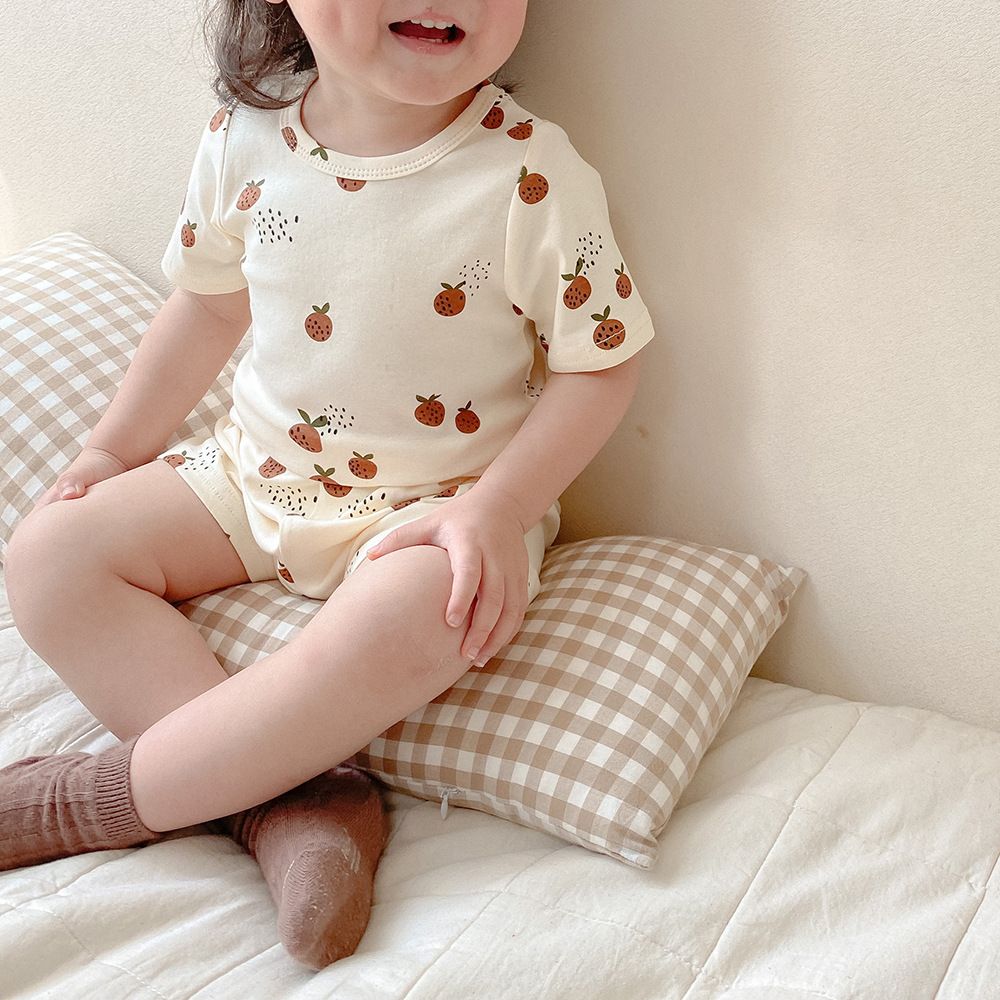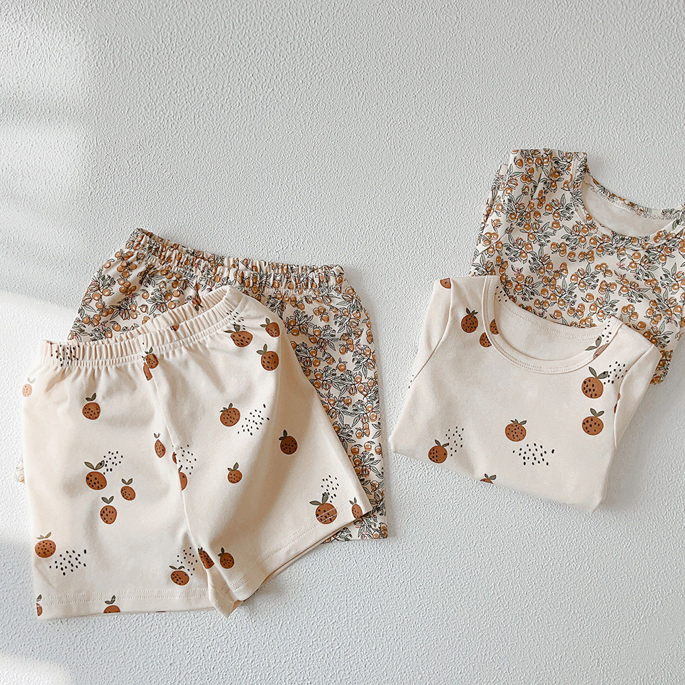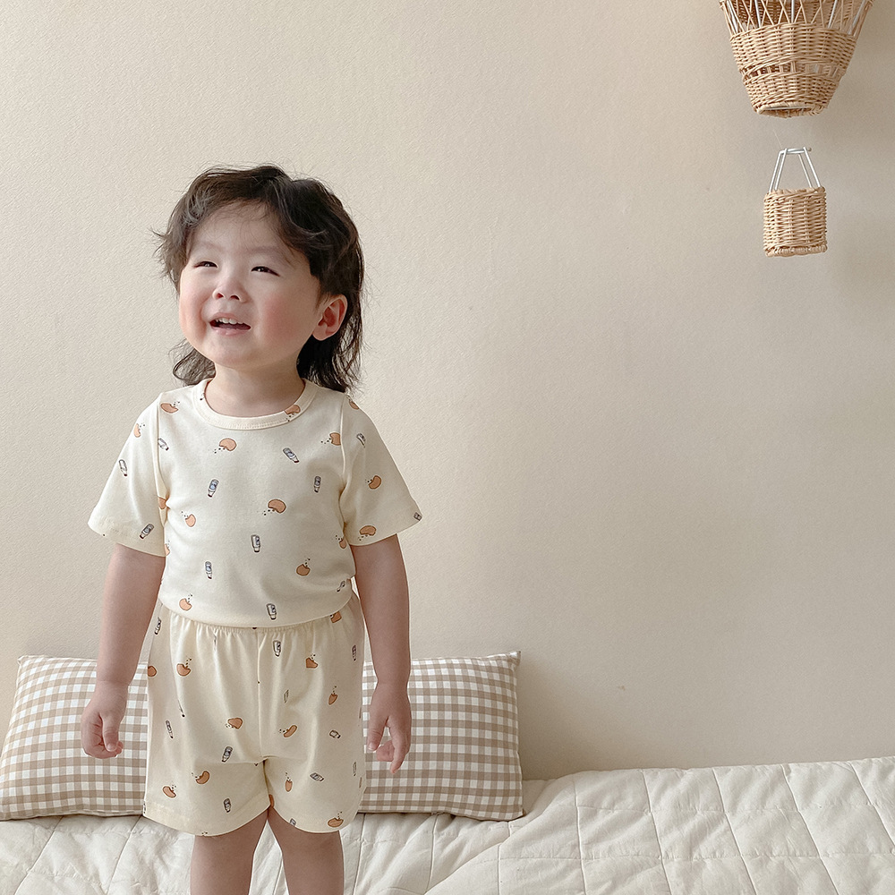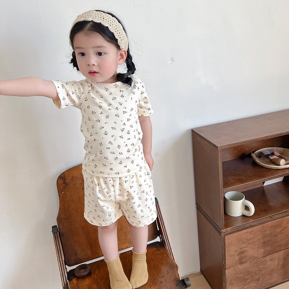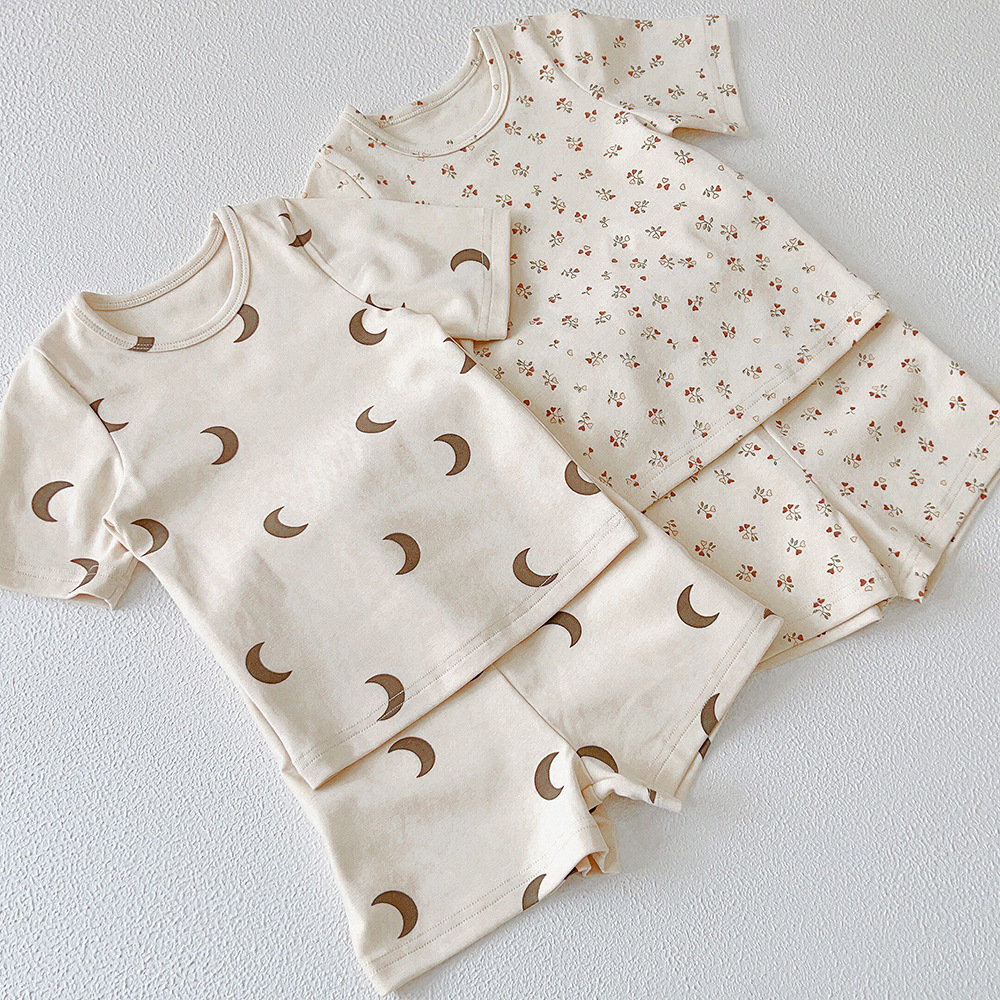 【儿童短袖套装】a类丹麦风儿童家居服夏季儿童睡衣套装ins风女童家居服纯棉短袖套装