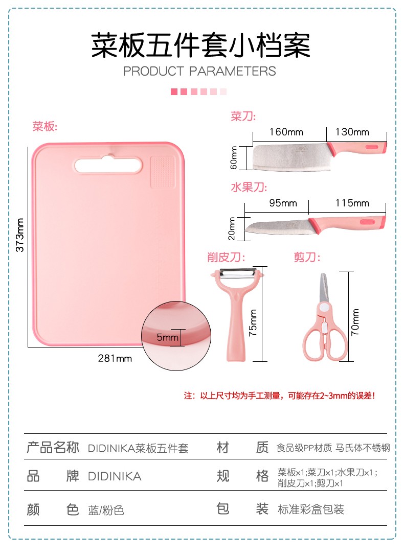 Didinika 砧板五件套菜板刀具套装 辅食菜板婴儿菜刀砧板套装家用多功能切菜