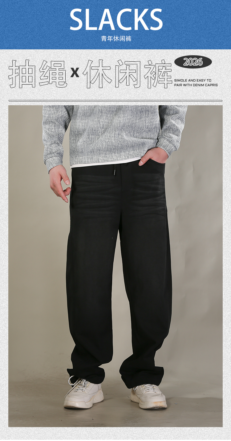 DRONKOO 2026 抽绳松紧腰前双破骨猫须喷色中厚卫裤长裤