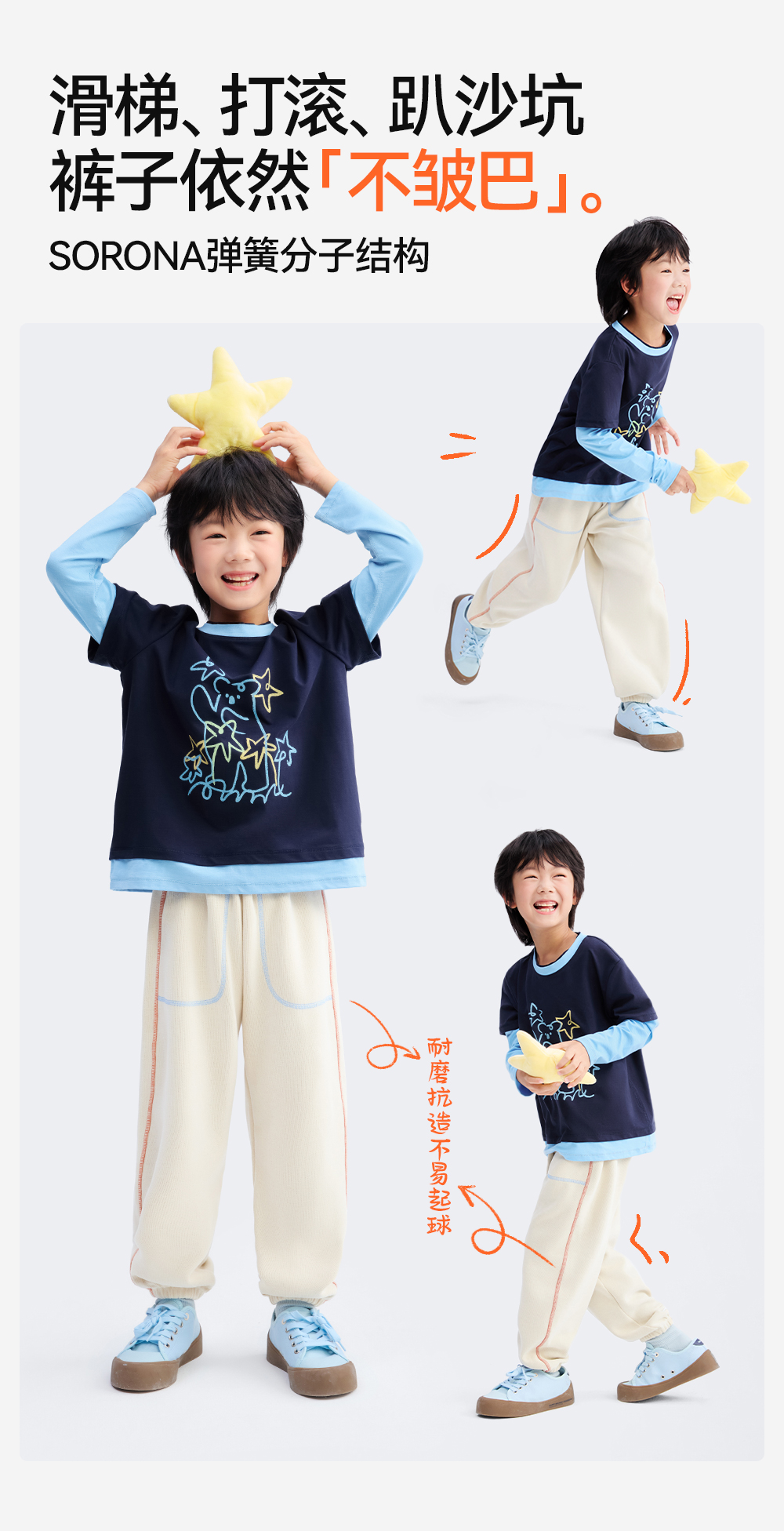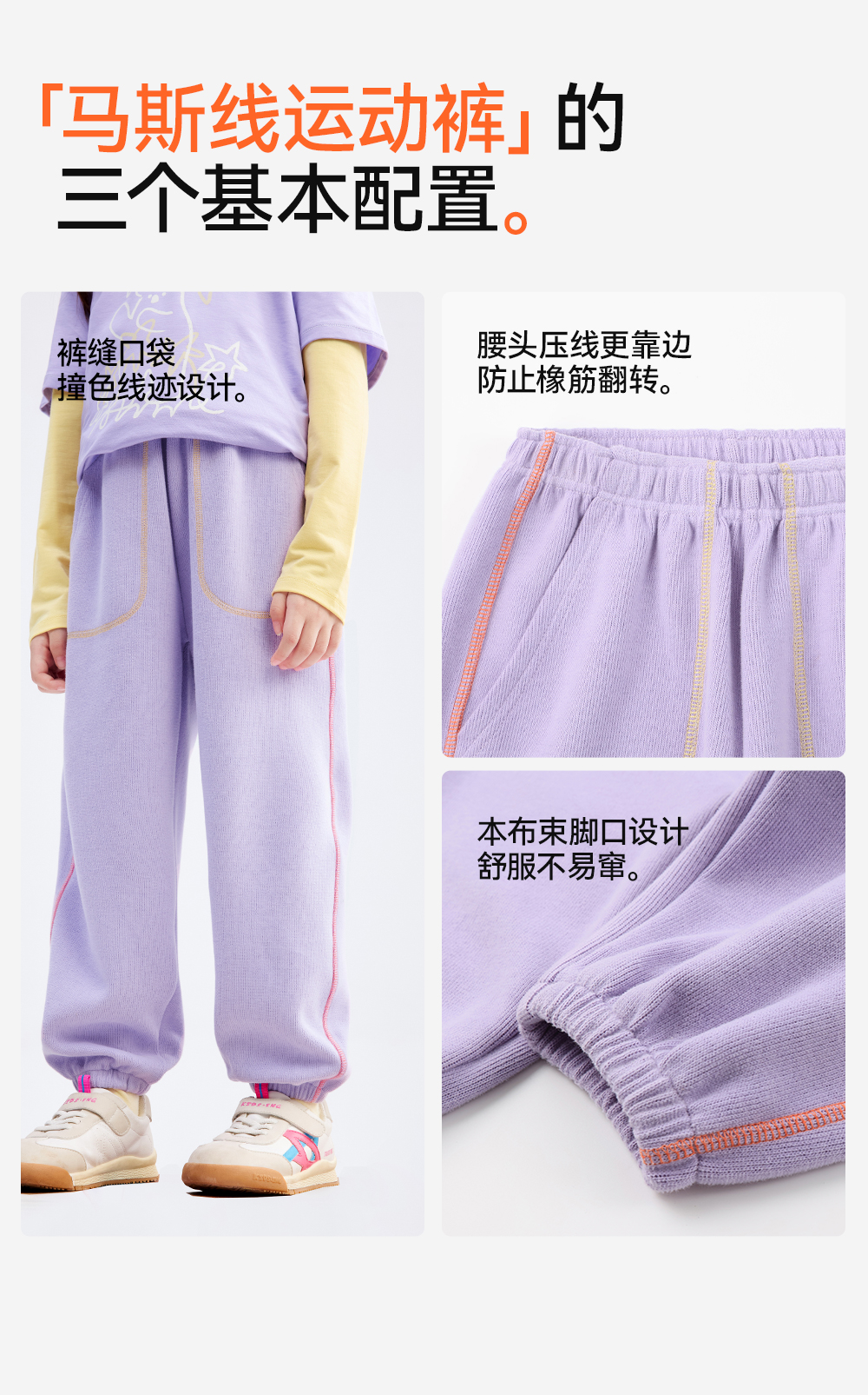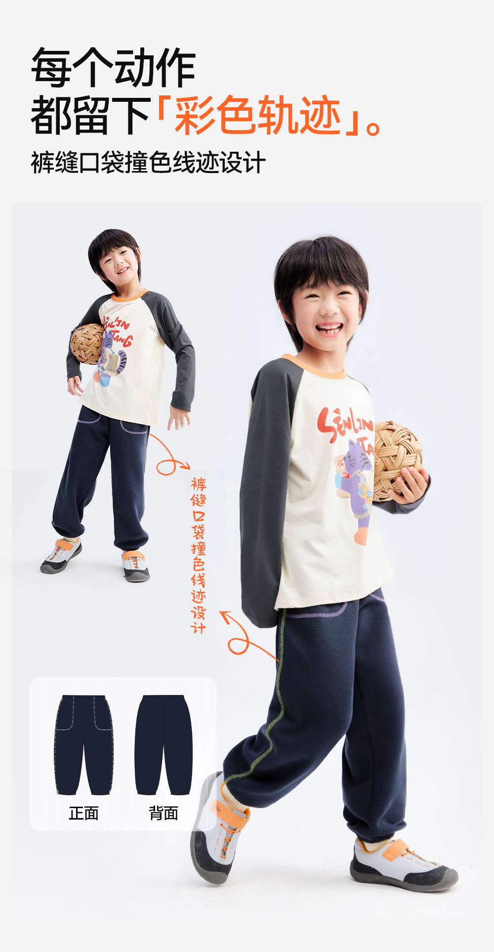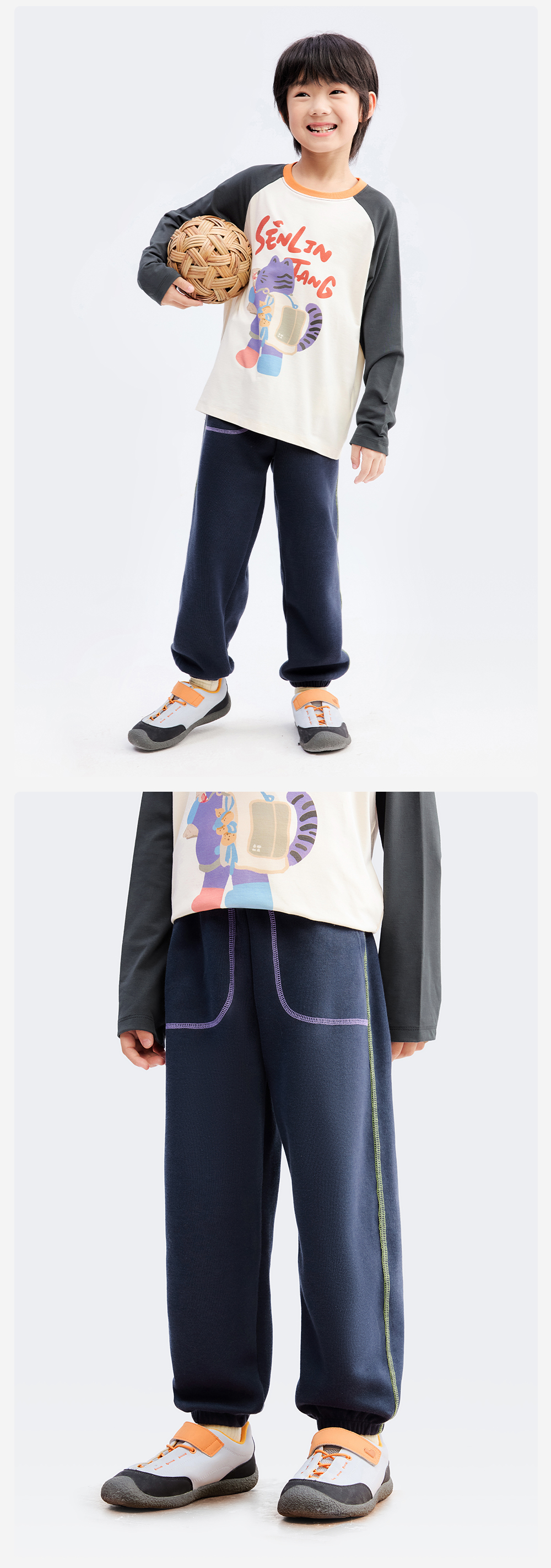 【小童新啵啵跳运动裤】森林棠25秋款 小童版休闲云感罗纹耐磨针织宽松运动长裤62053274