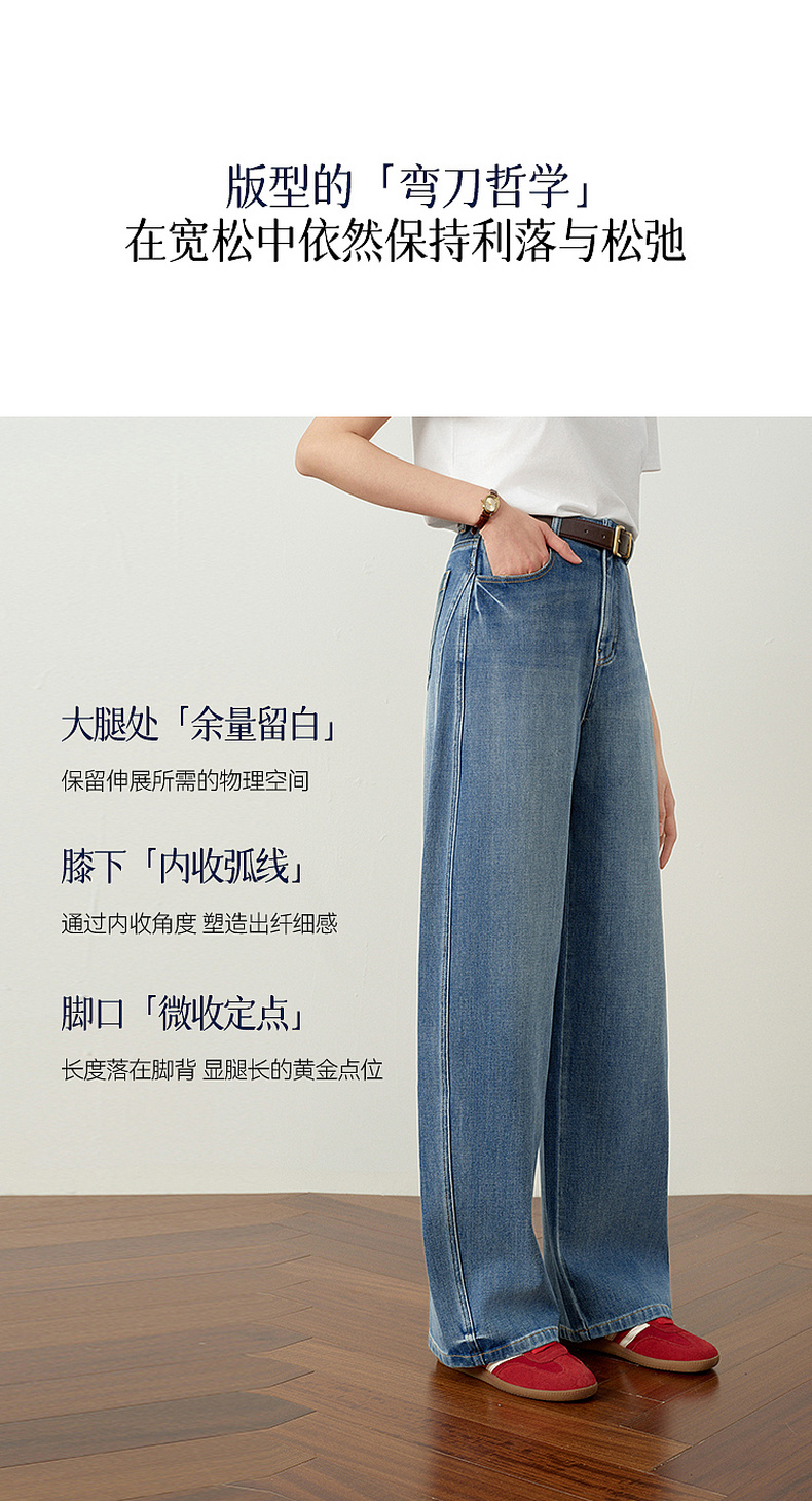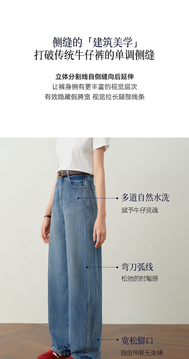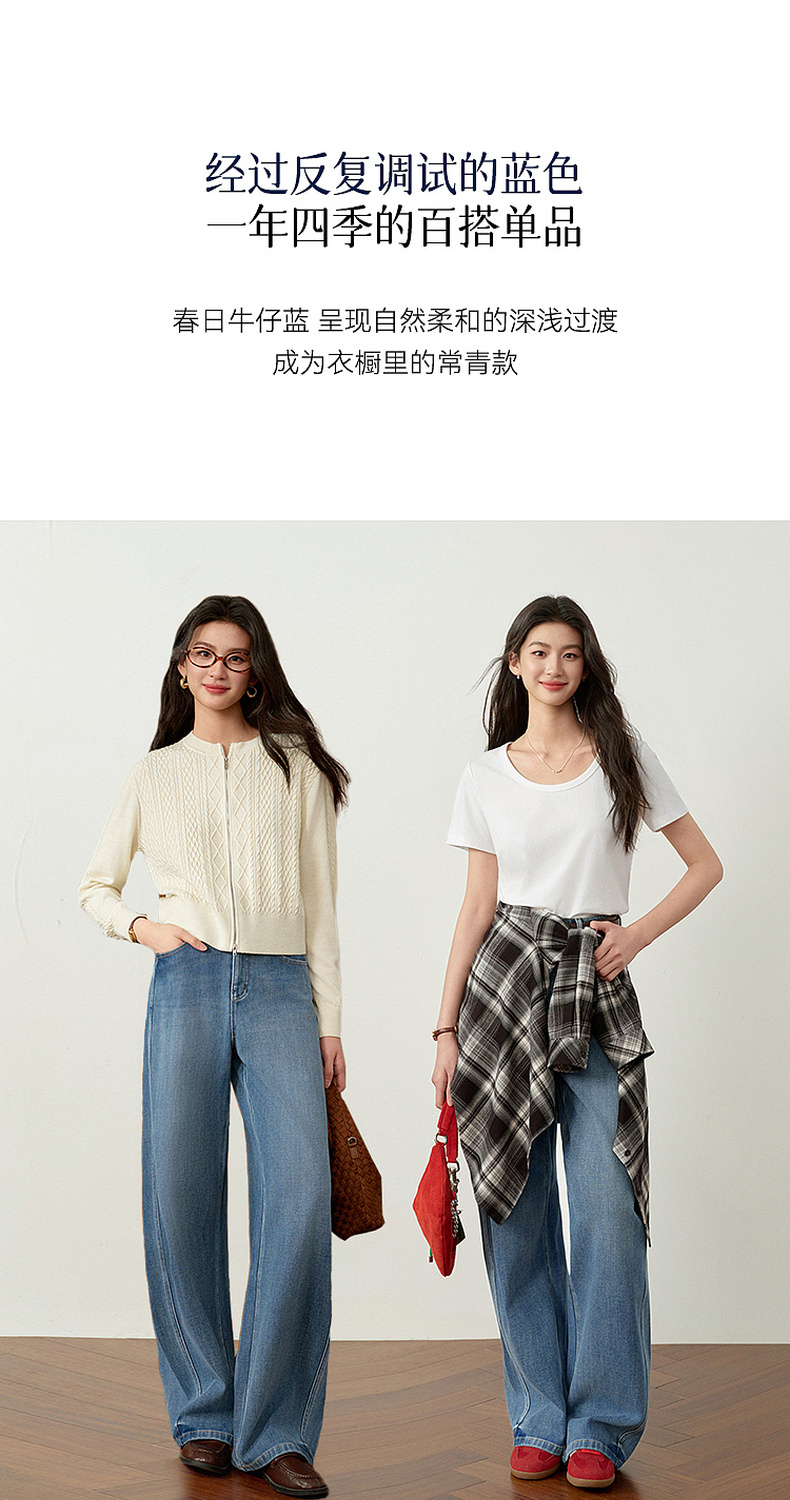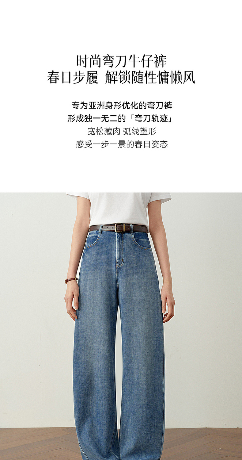 【严选】诗凡黎百搭高街小弯刀牛仔裤2026春新款高腰显瘦休闲弹力阔腿长裤7H1250651