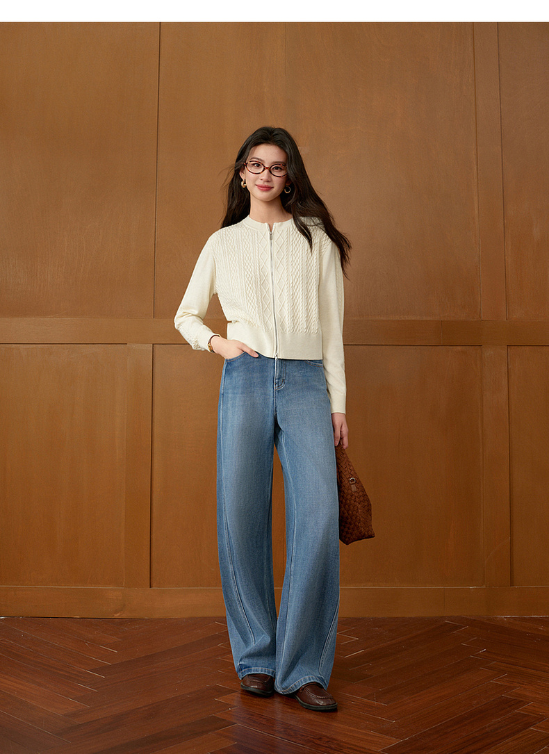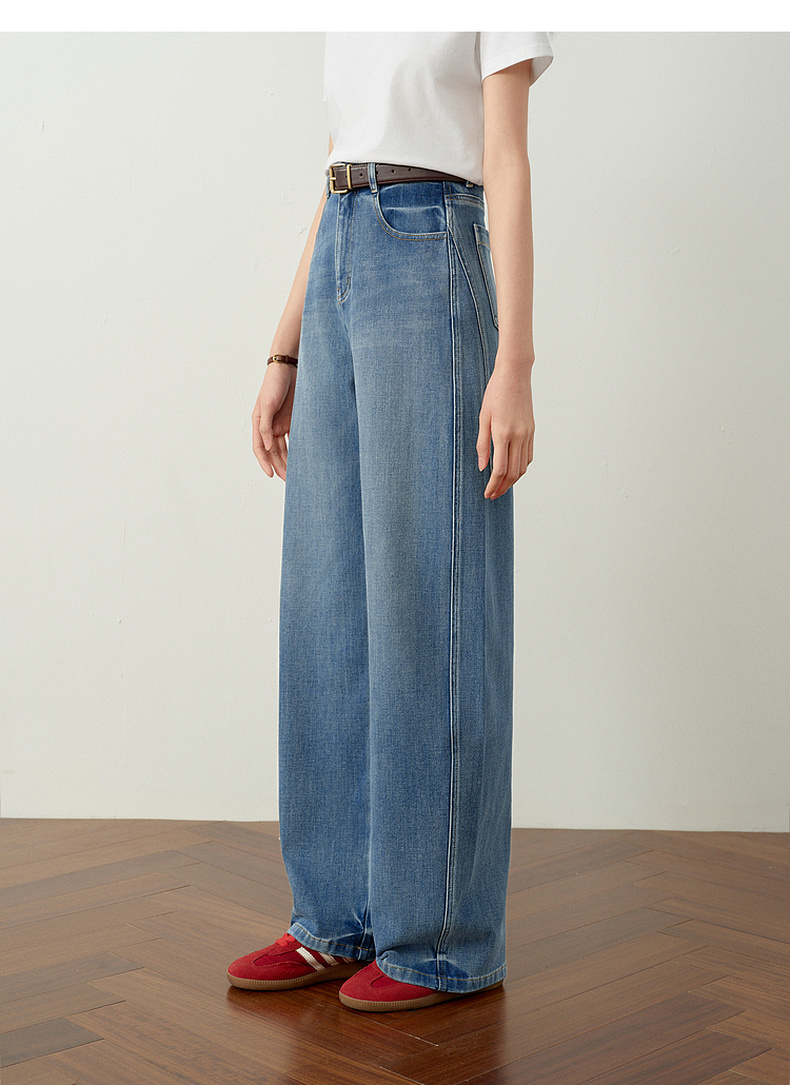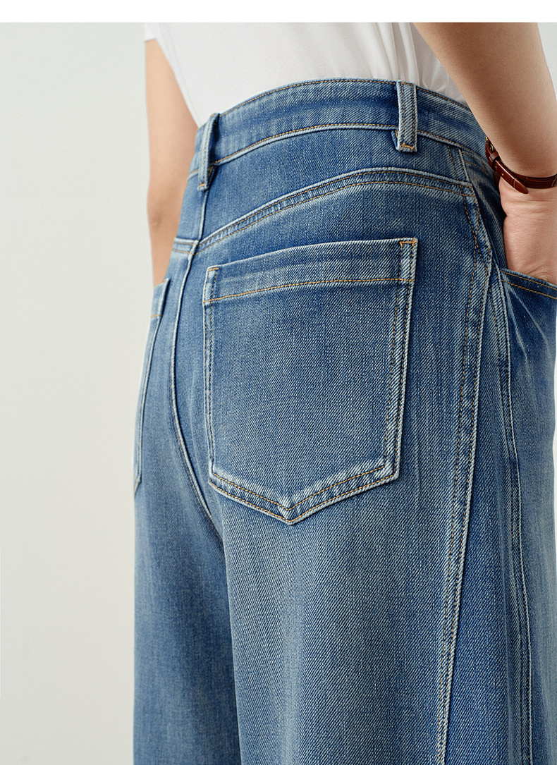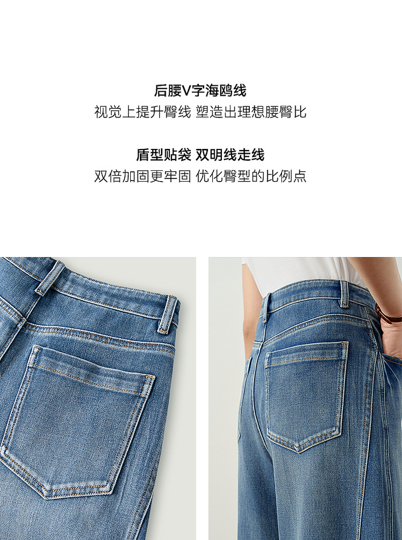 【严选】诗凡黎百搭高街小弯刀牛仔裤2026春新款高腰显瘦休闲弹力阔腿长裤7H1250651