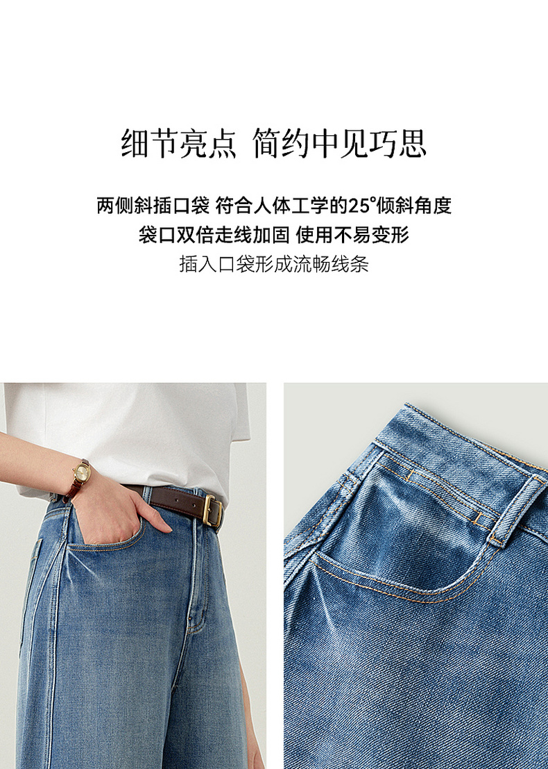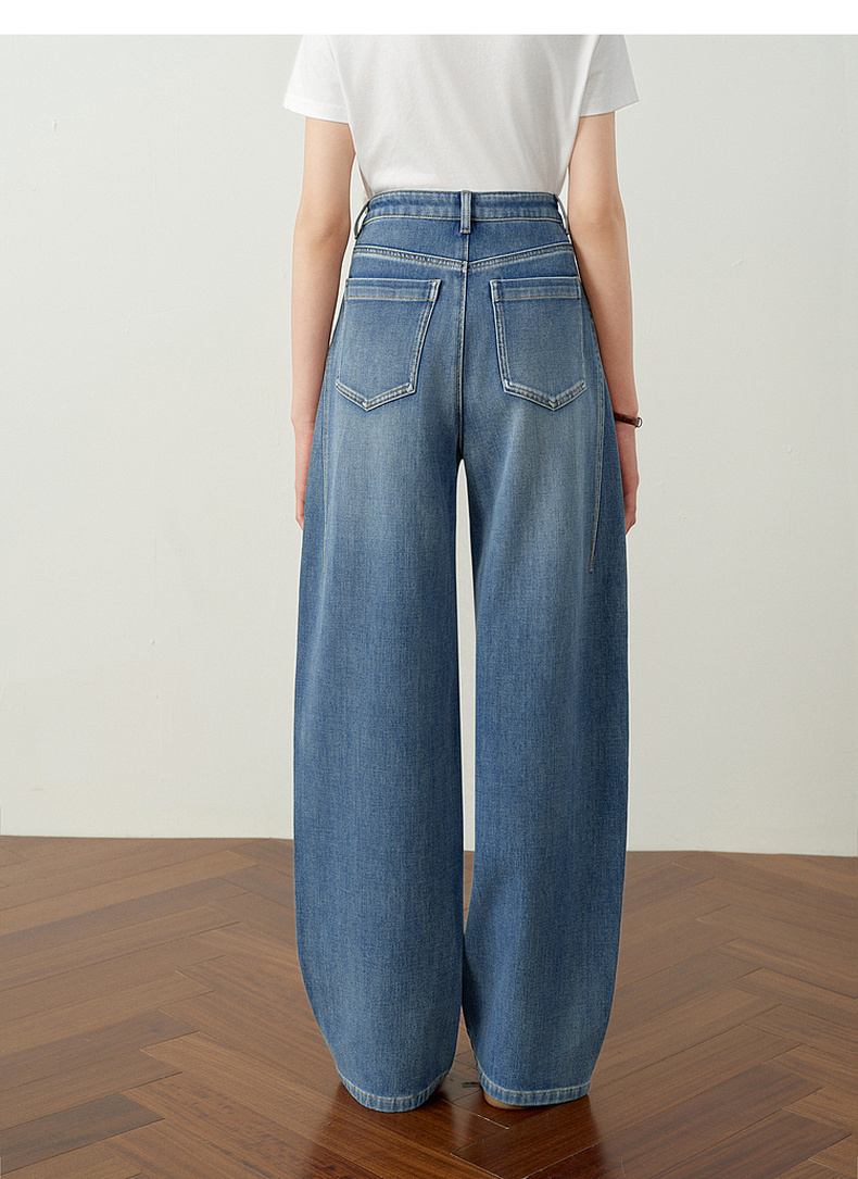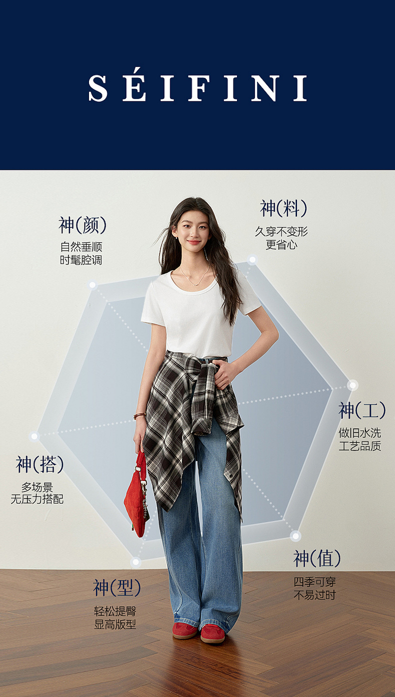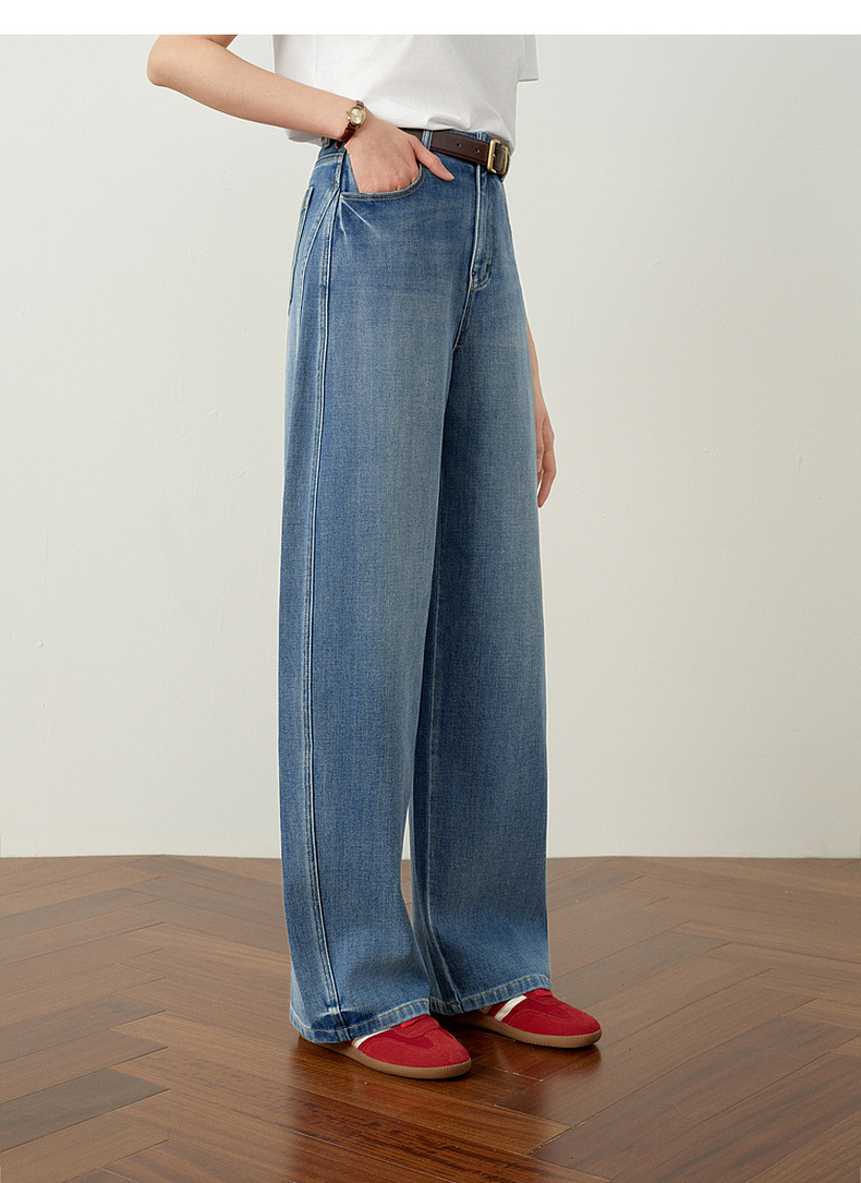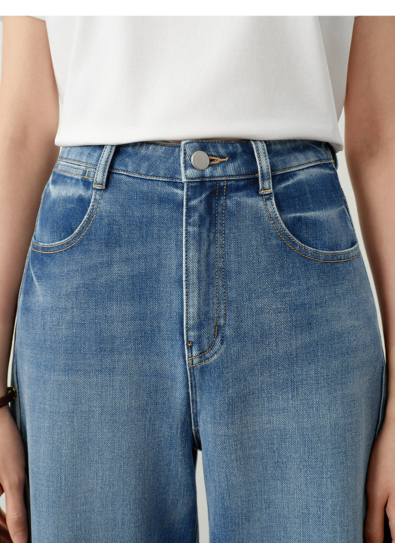 【严选】诗凡黎百搭高街小弯刀牛仔裤2026春新款高腰显瘦休闲弹力阔腿长裤7H1250651