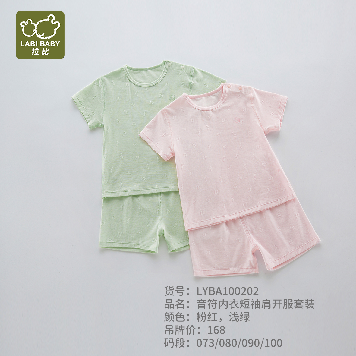 拉比-内衣类(夏)短袖肩开服套装浅绿/粉红
