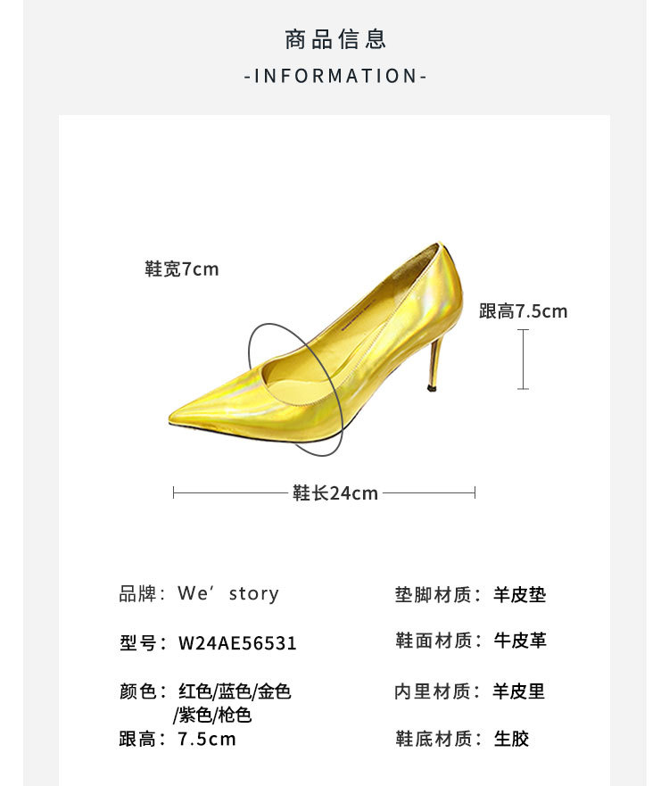 westory2024年春季新款炫彩细高跟尖头时尚单鞋W24AE56531