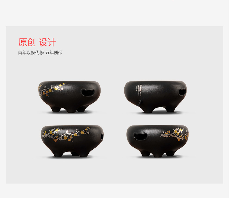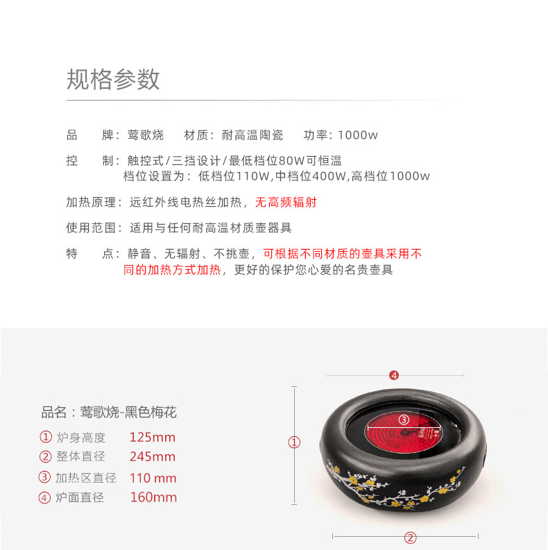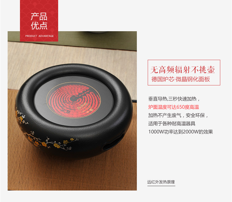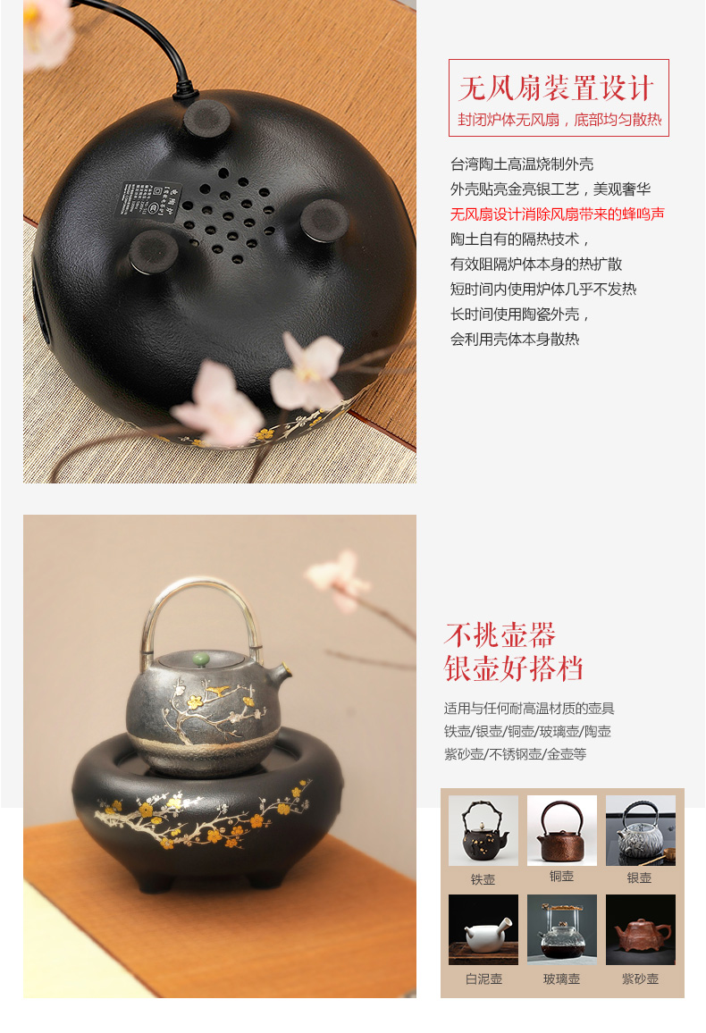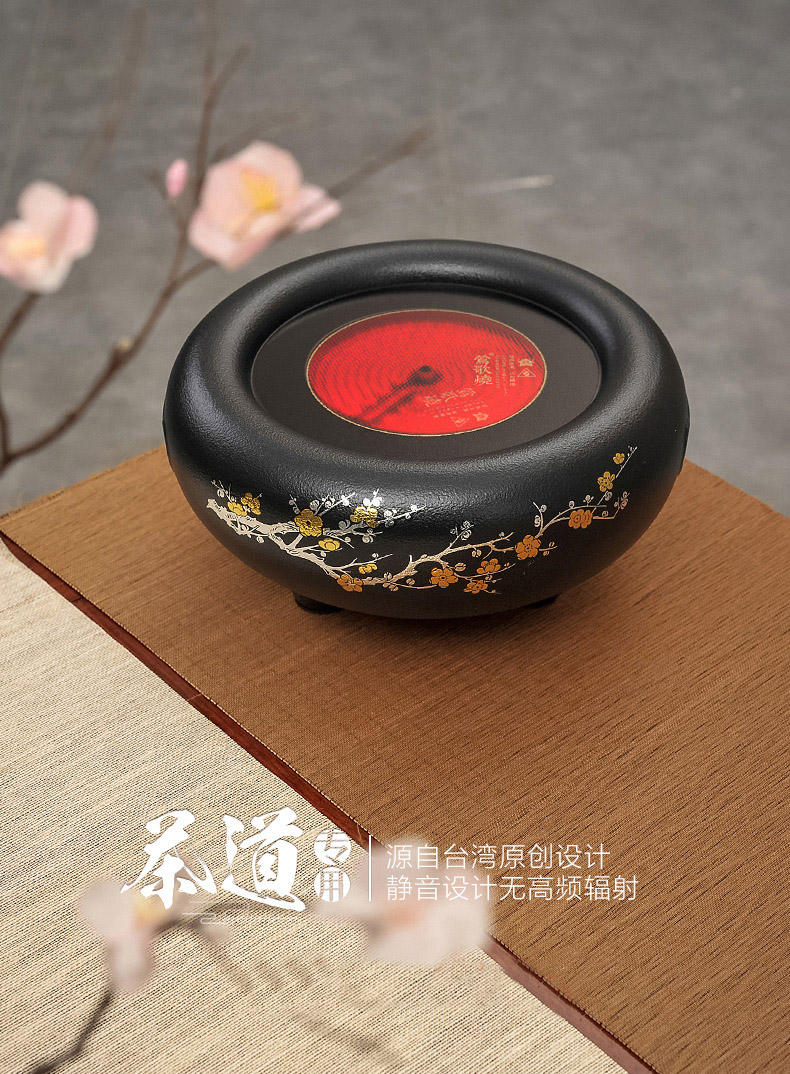 莺歌烧黑底梅花大金大银松电陶炉 煮茶家用茶炉 铁壶银壶煮茶器泡茶电炉静音台式