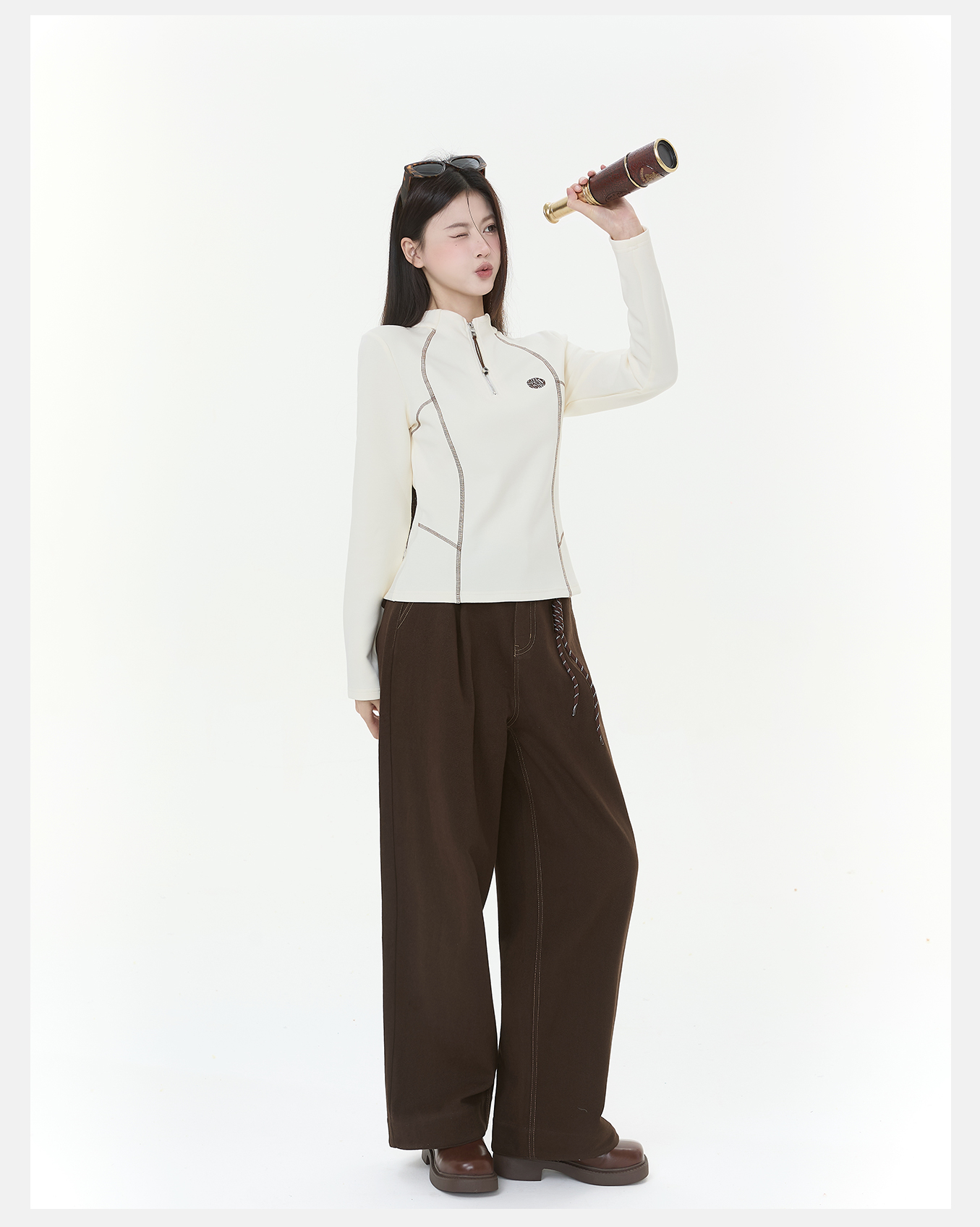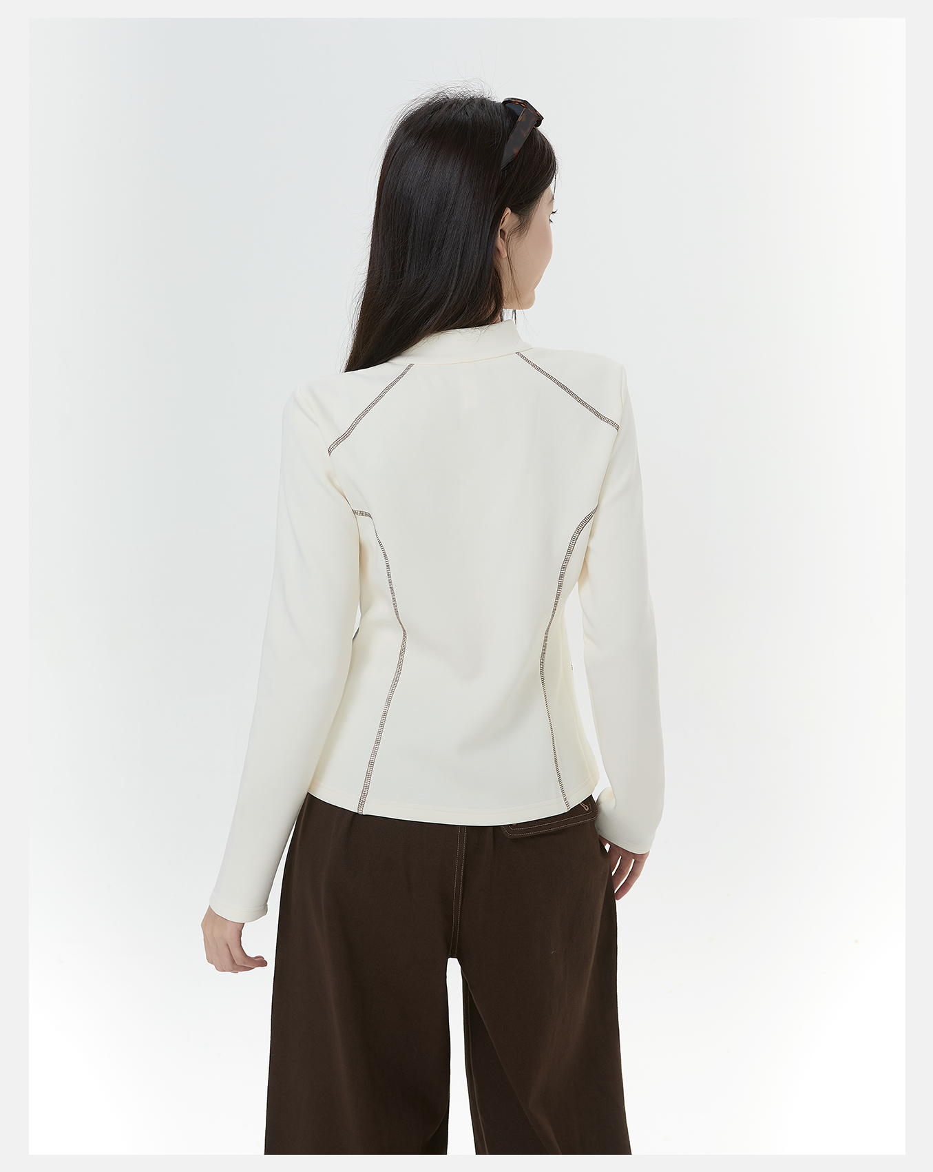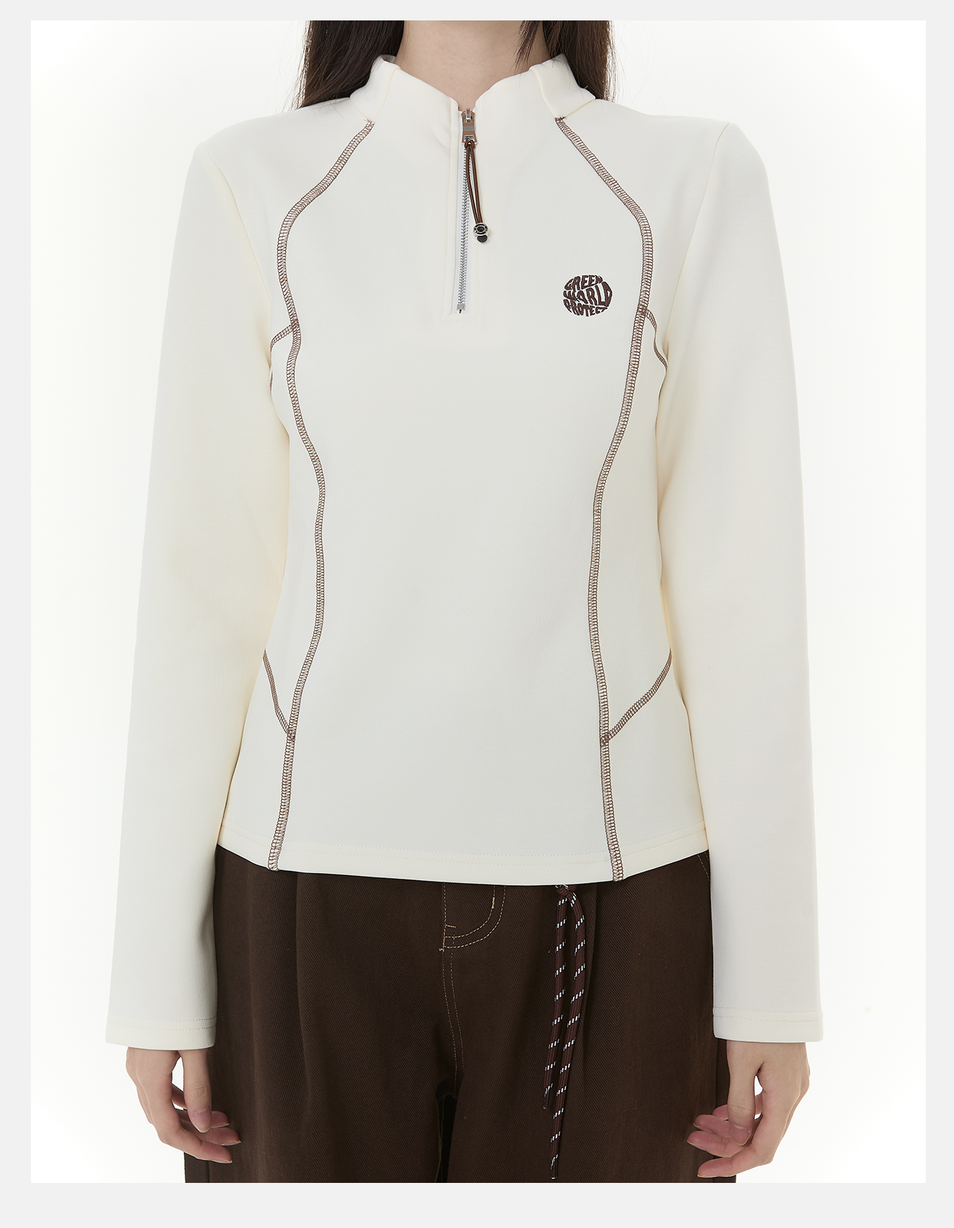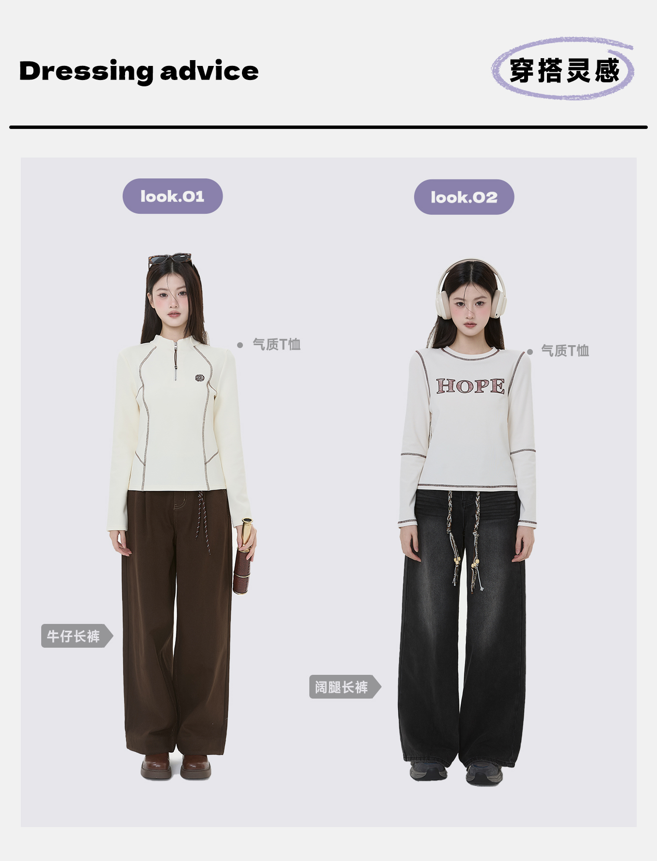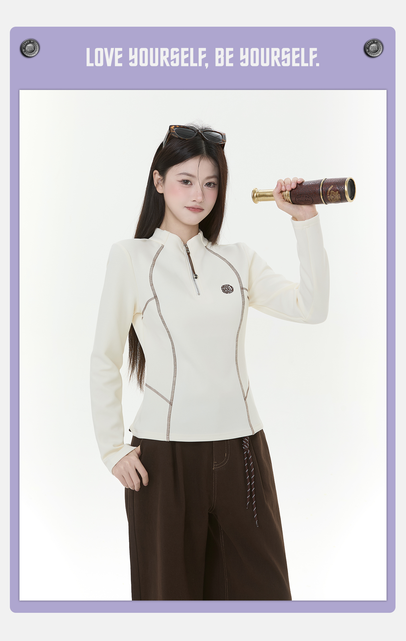 P&X设计师女装2025冬季立领学院风纯色健身短款T恤825402099 杏色