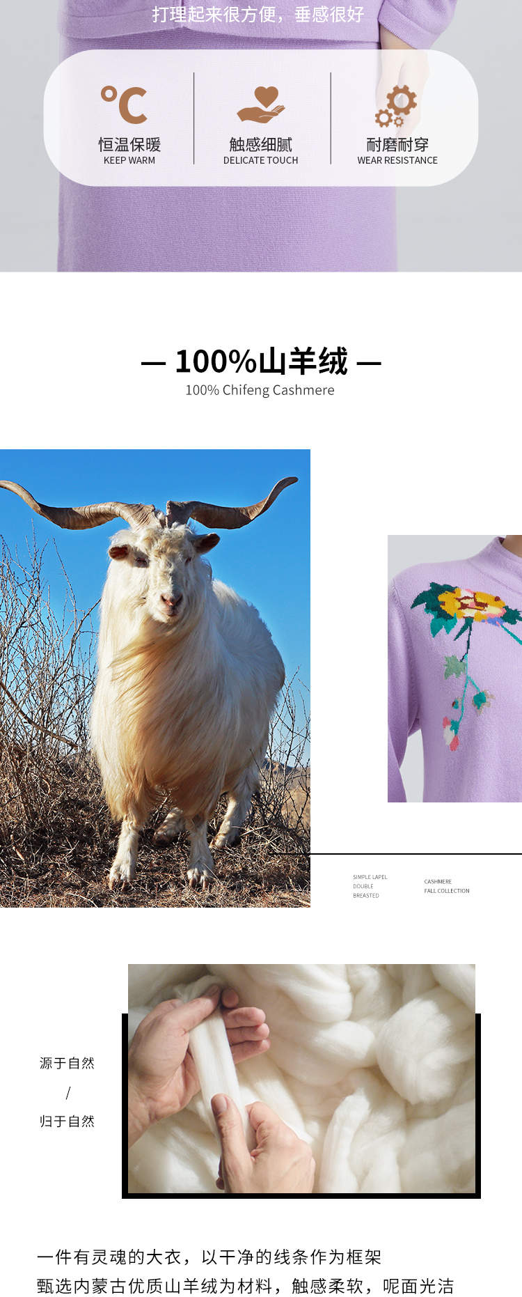 东黎羊绒是赤峰东荣集团自主品牌,自有牧场/羊绒制品全产业链优势,实现了羊绒从“牧场”到“商场”的华丽转变。