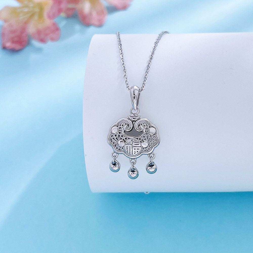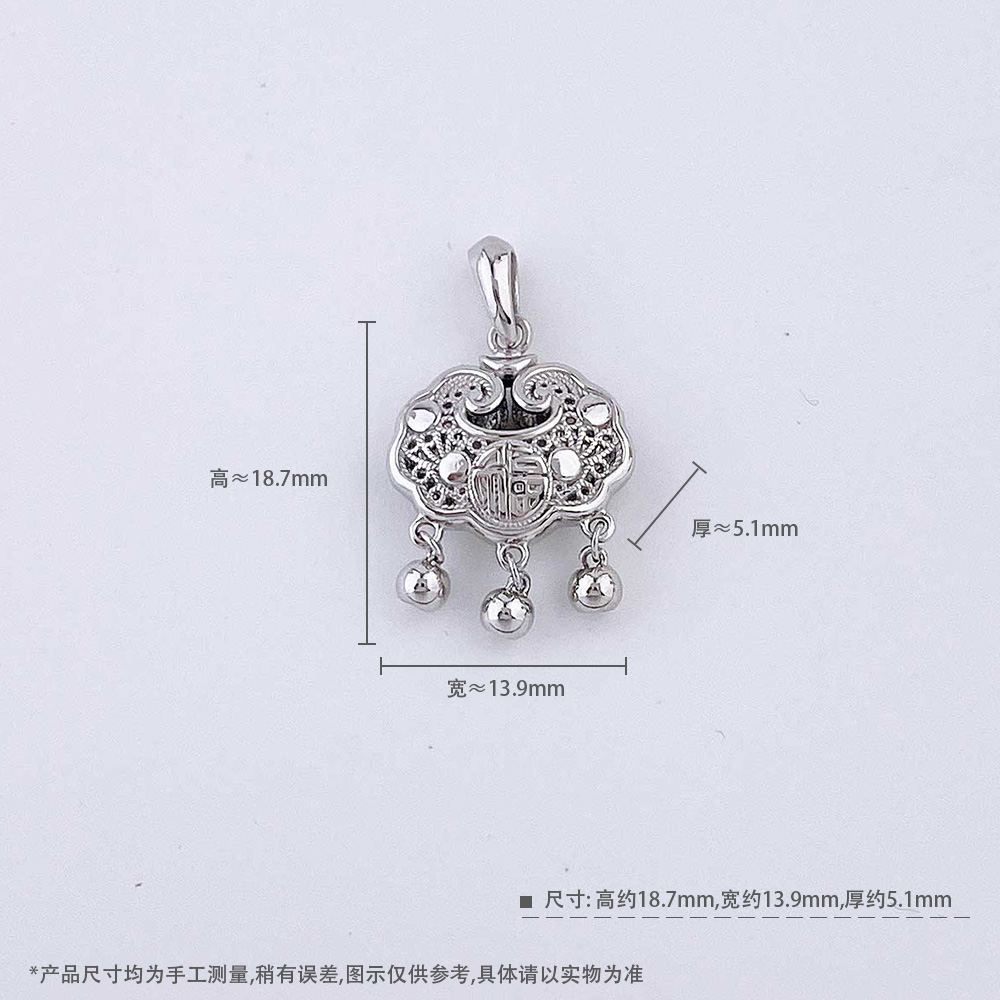 【限时8.8折】【线上铂金馆】PT950 #祈福 #小红书 【精品】铂金镂空花丝福字铃铛如意锁包吊坠(不含链)(BFPTDZ00025-2)(预售4-7天发货,一经下单不支持退款)