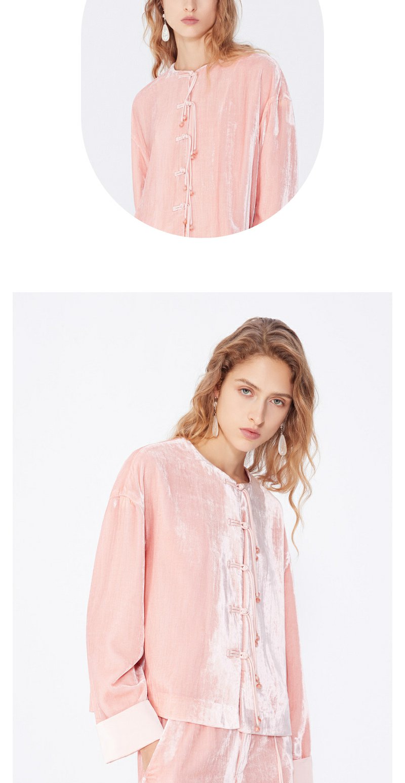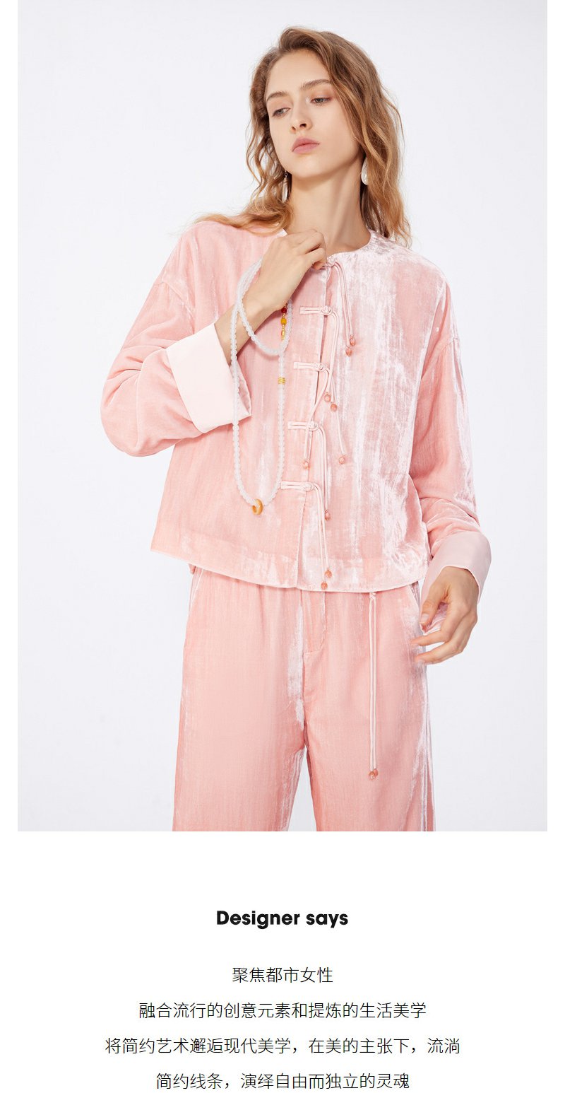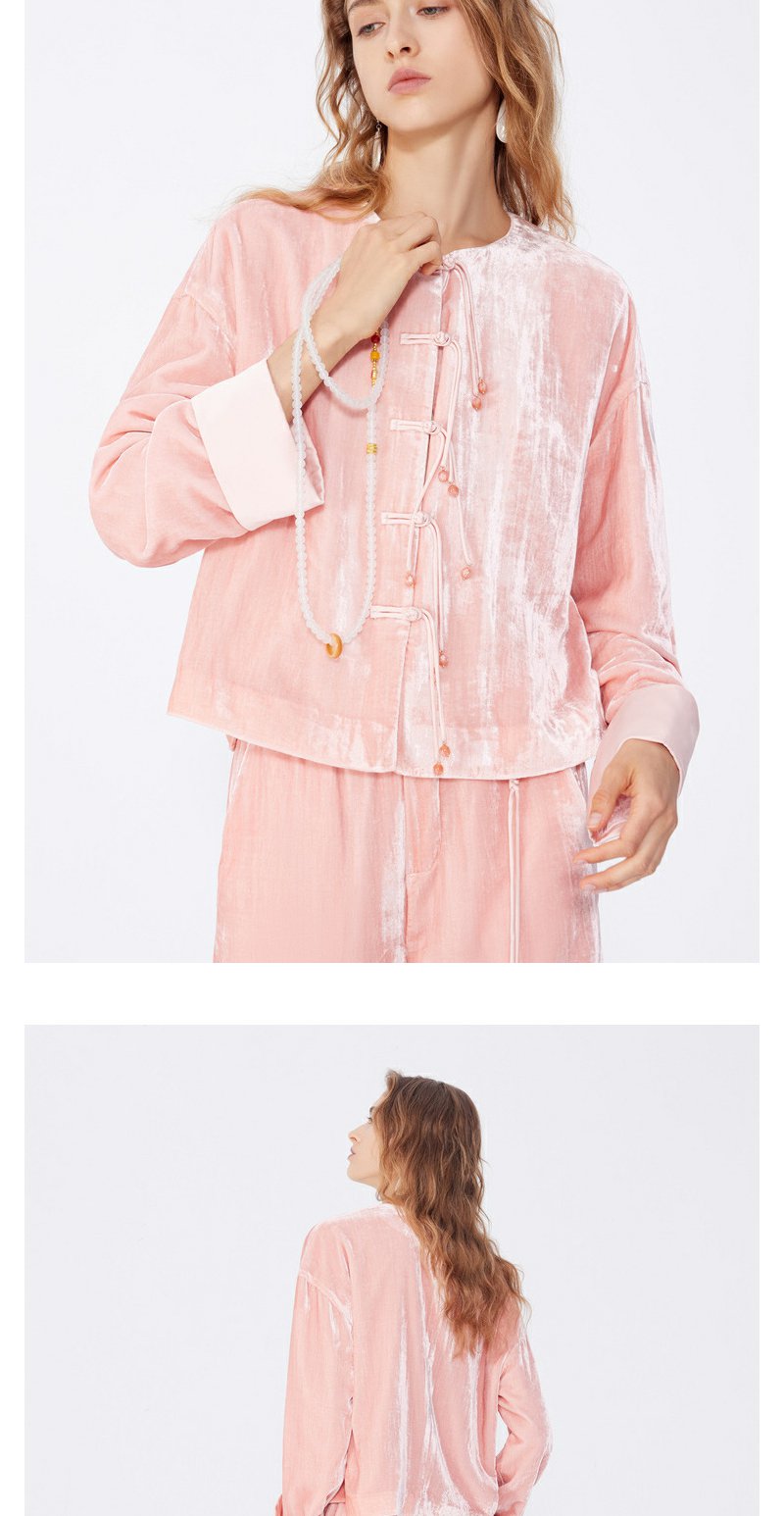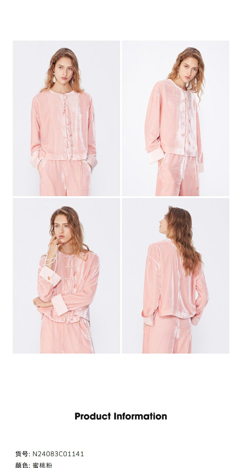 NEELLY纳俪2024秋商场同款新中式粉色上衣女新款盘扣休闲短外套N24083C01141