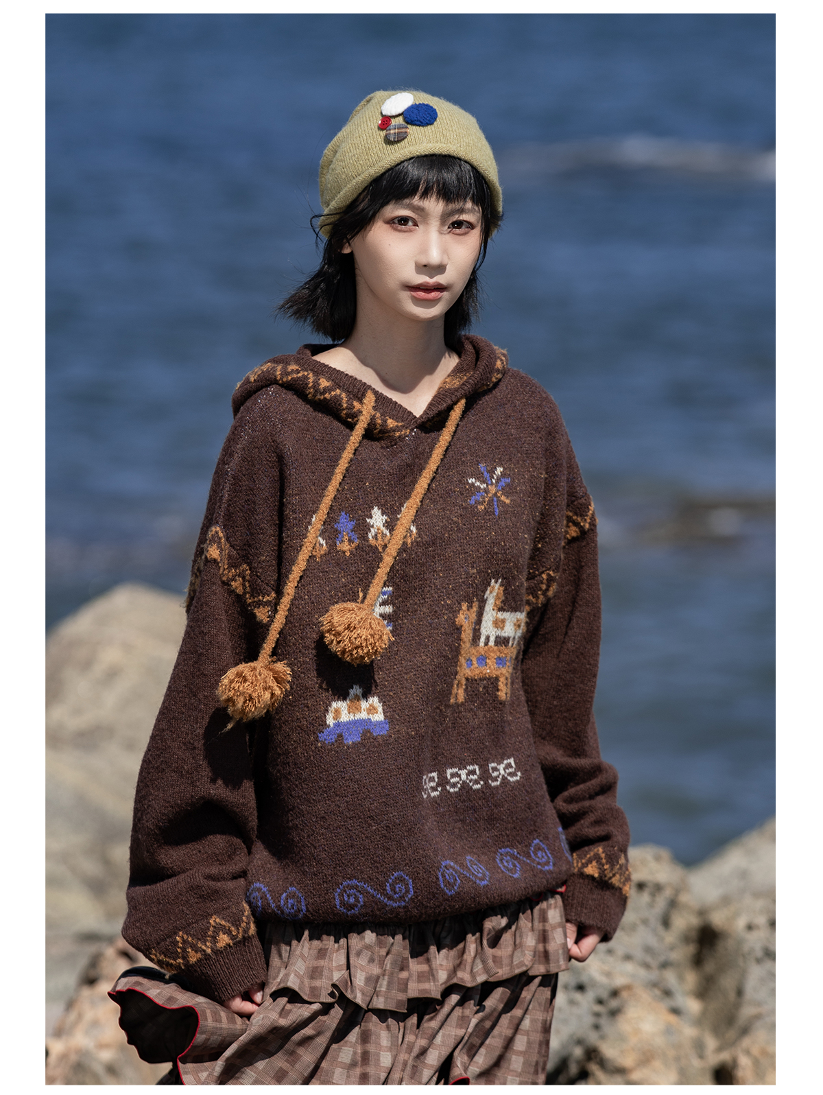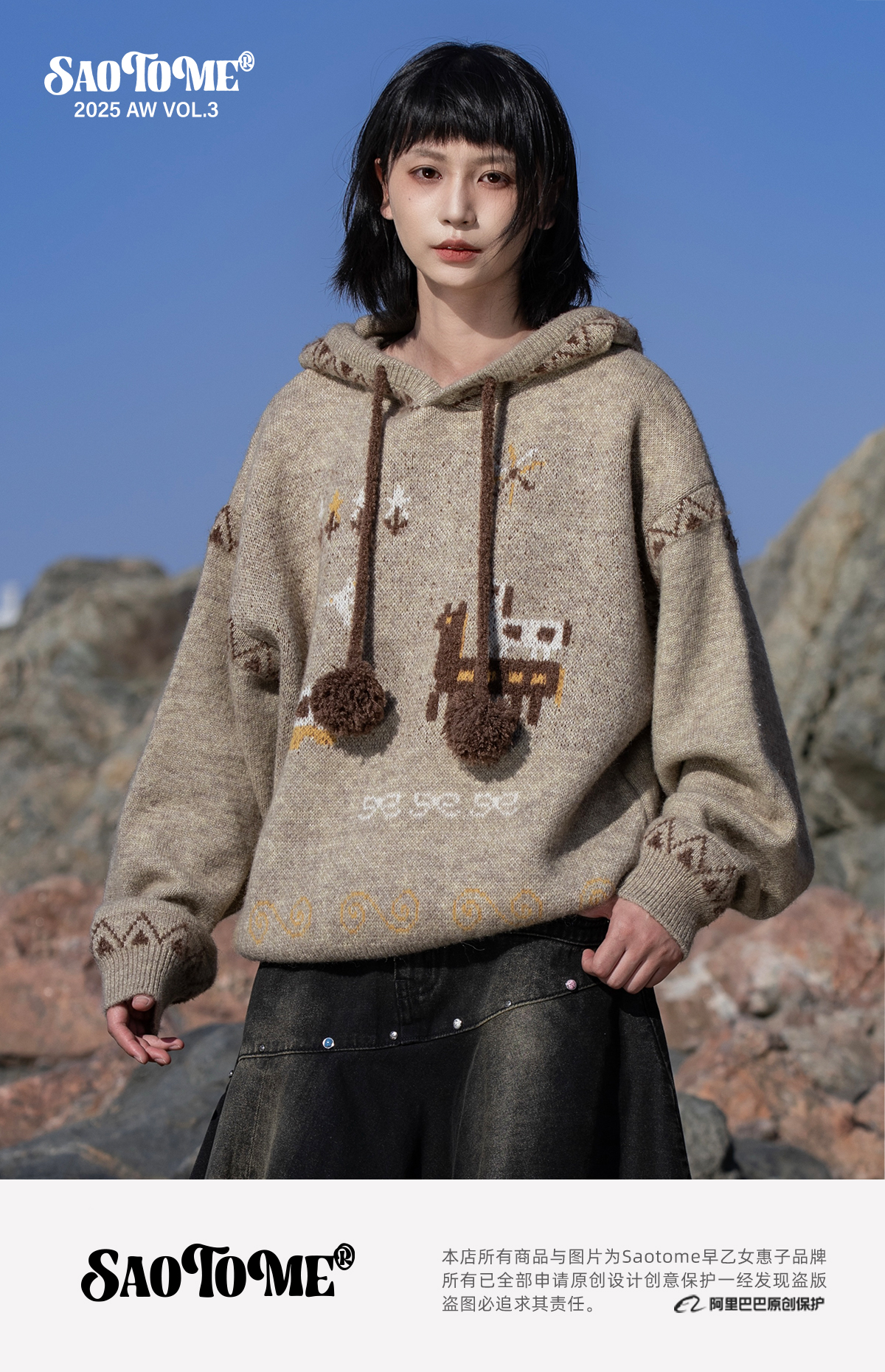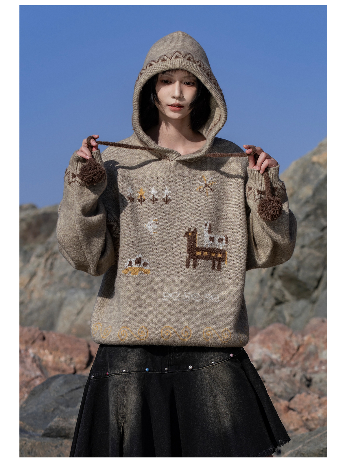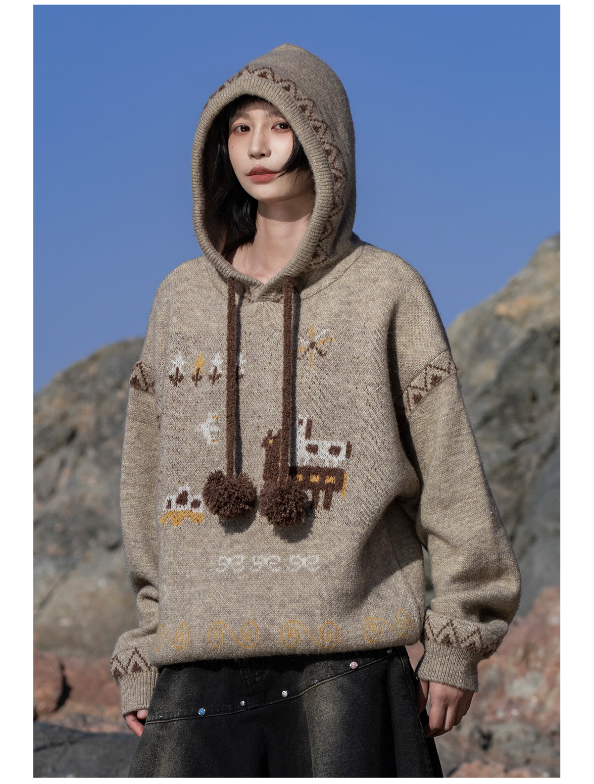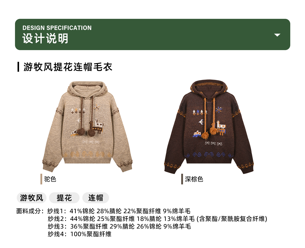 早乙女惠子saotome/STMMY13246/游牧风提花连帽毛衣