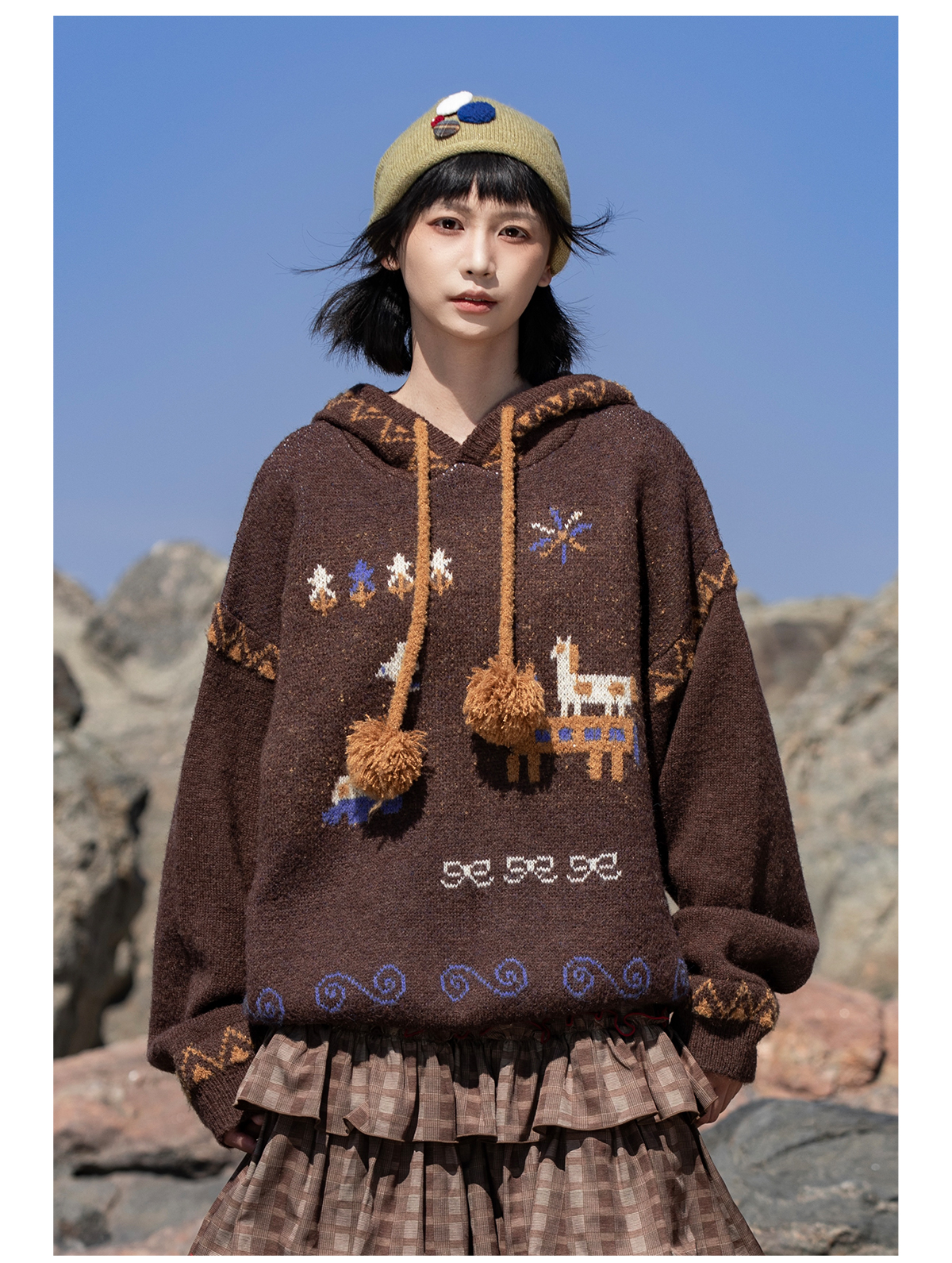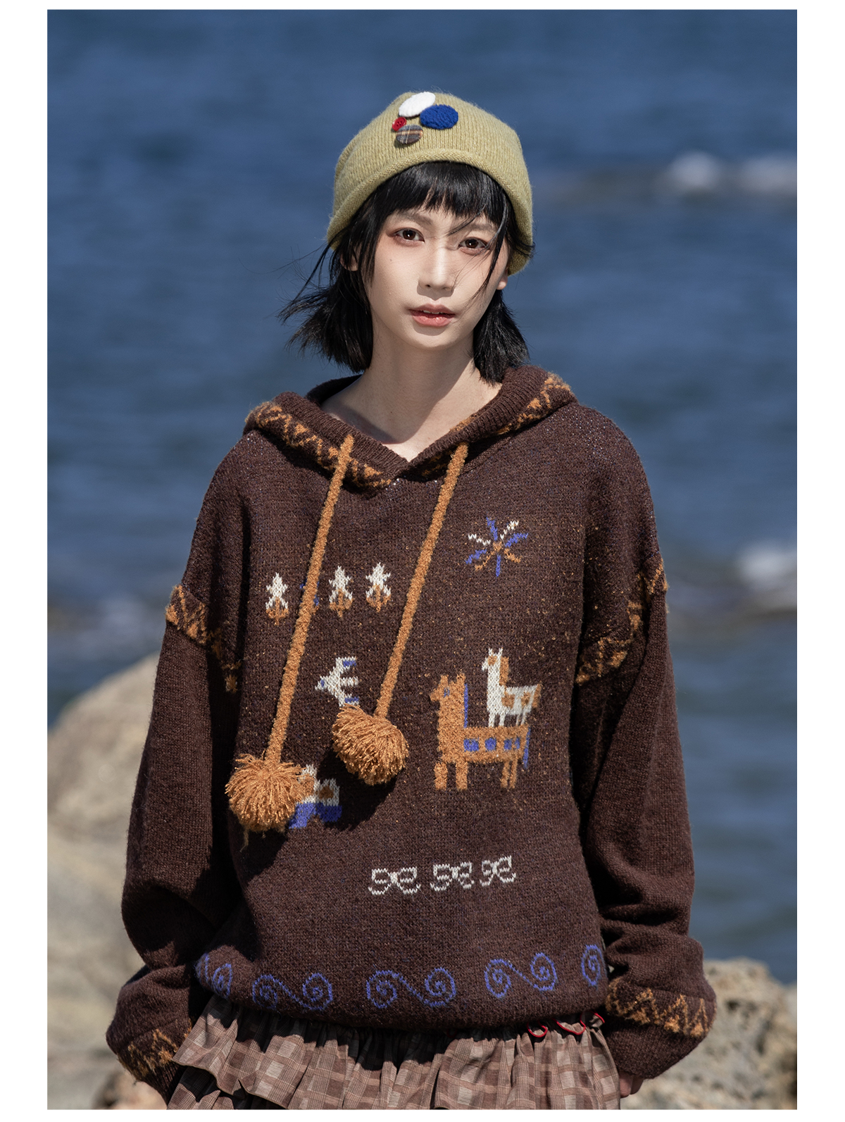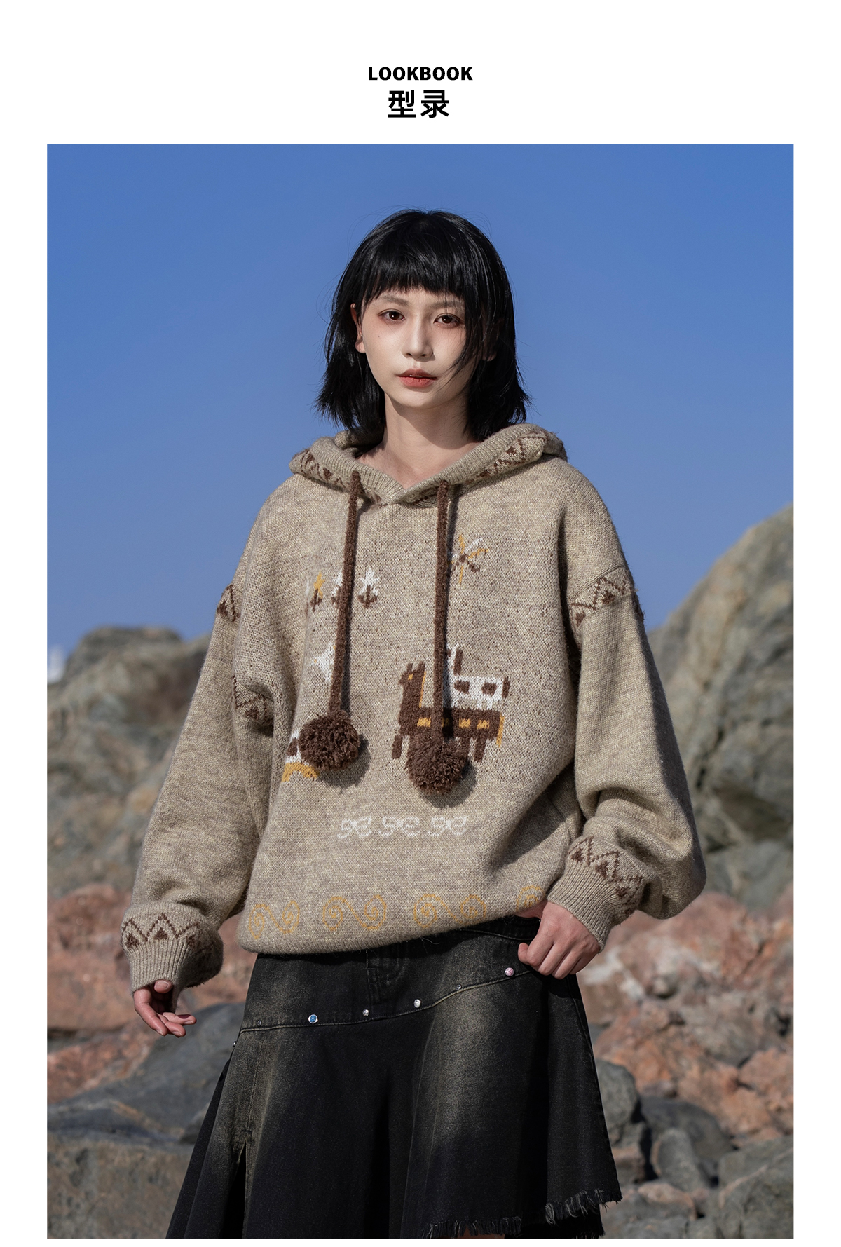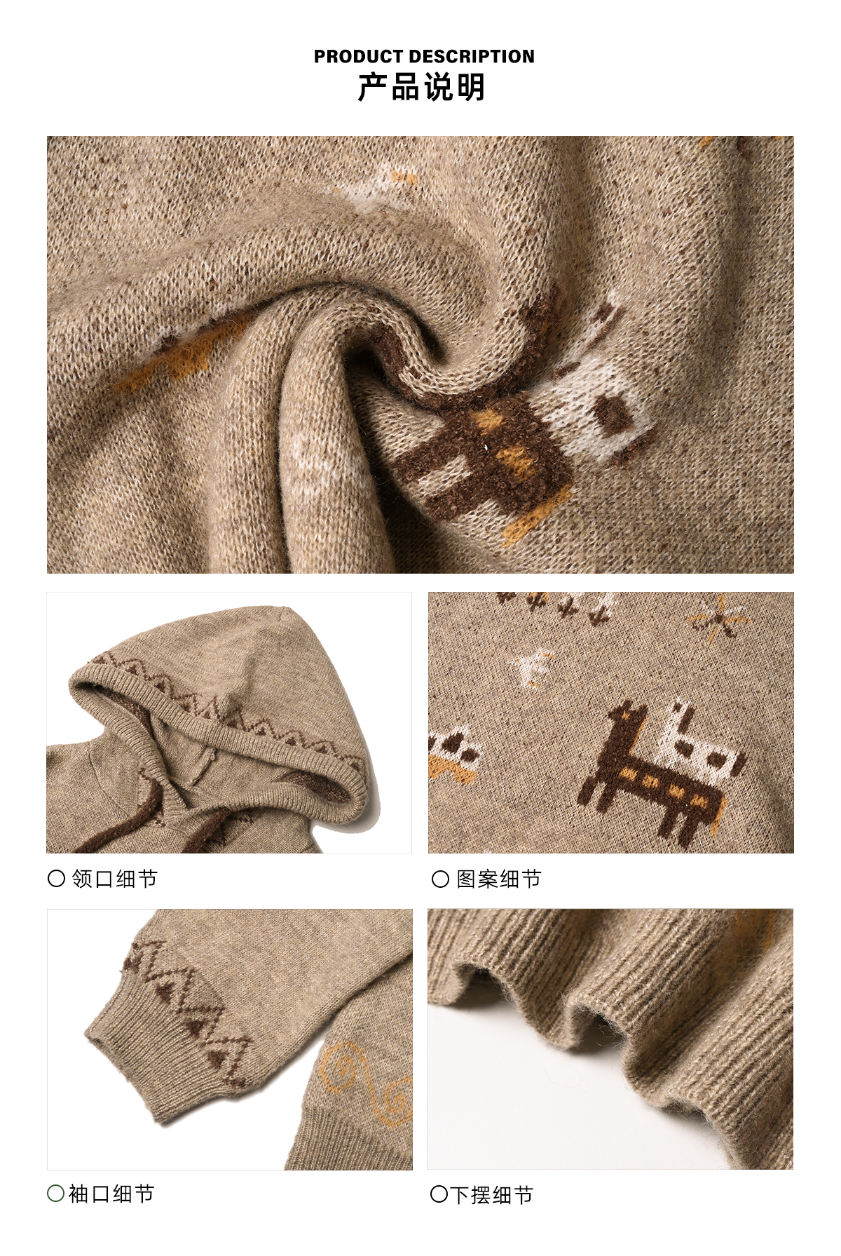 早乙女惠子saotome/STMMY13246/游牧风提花连帽毛衣