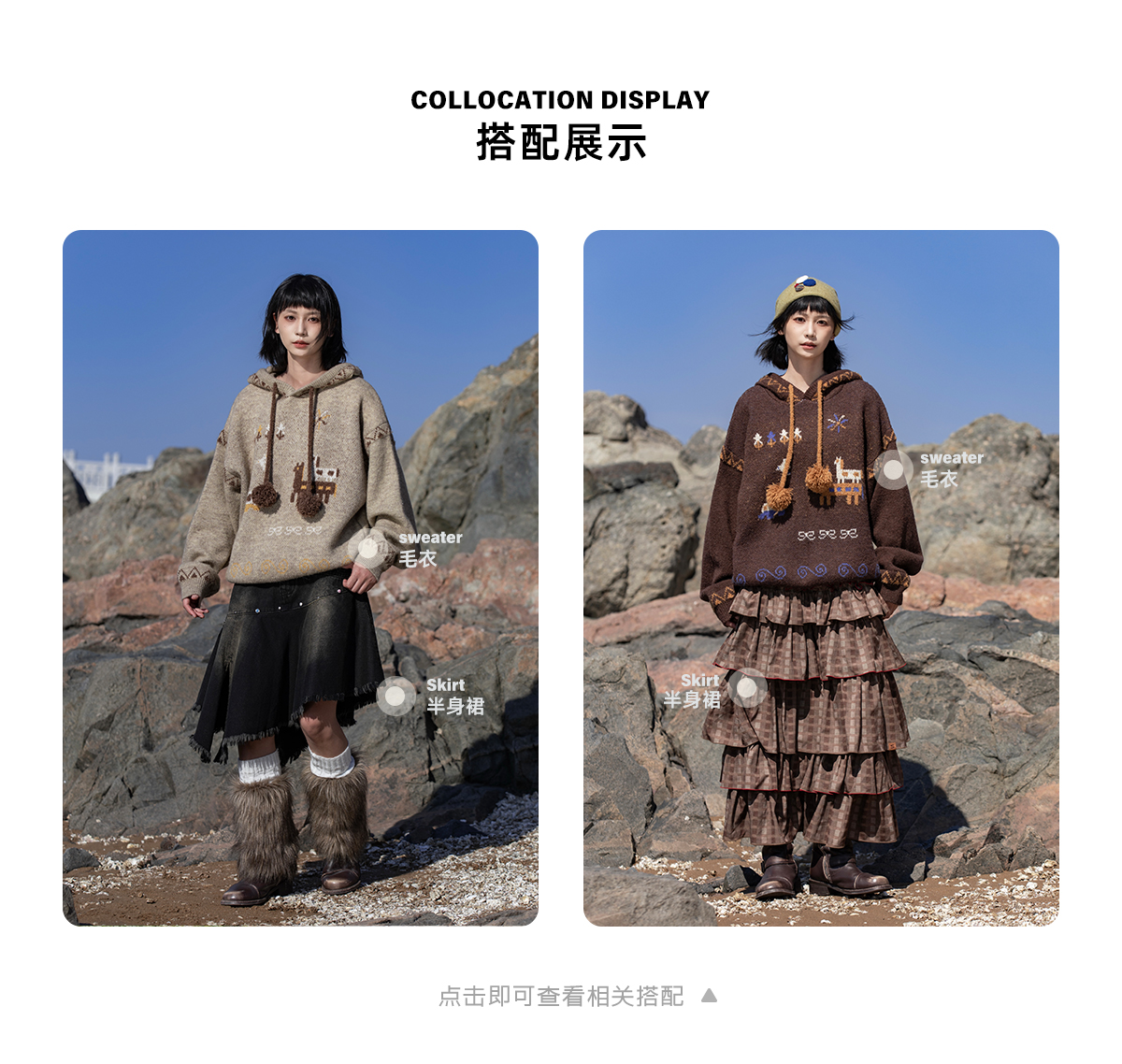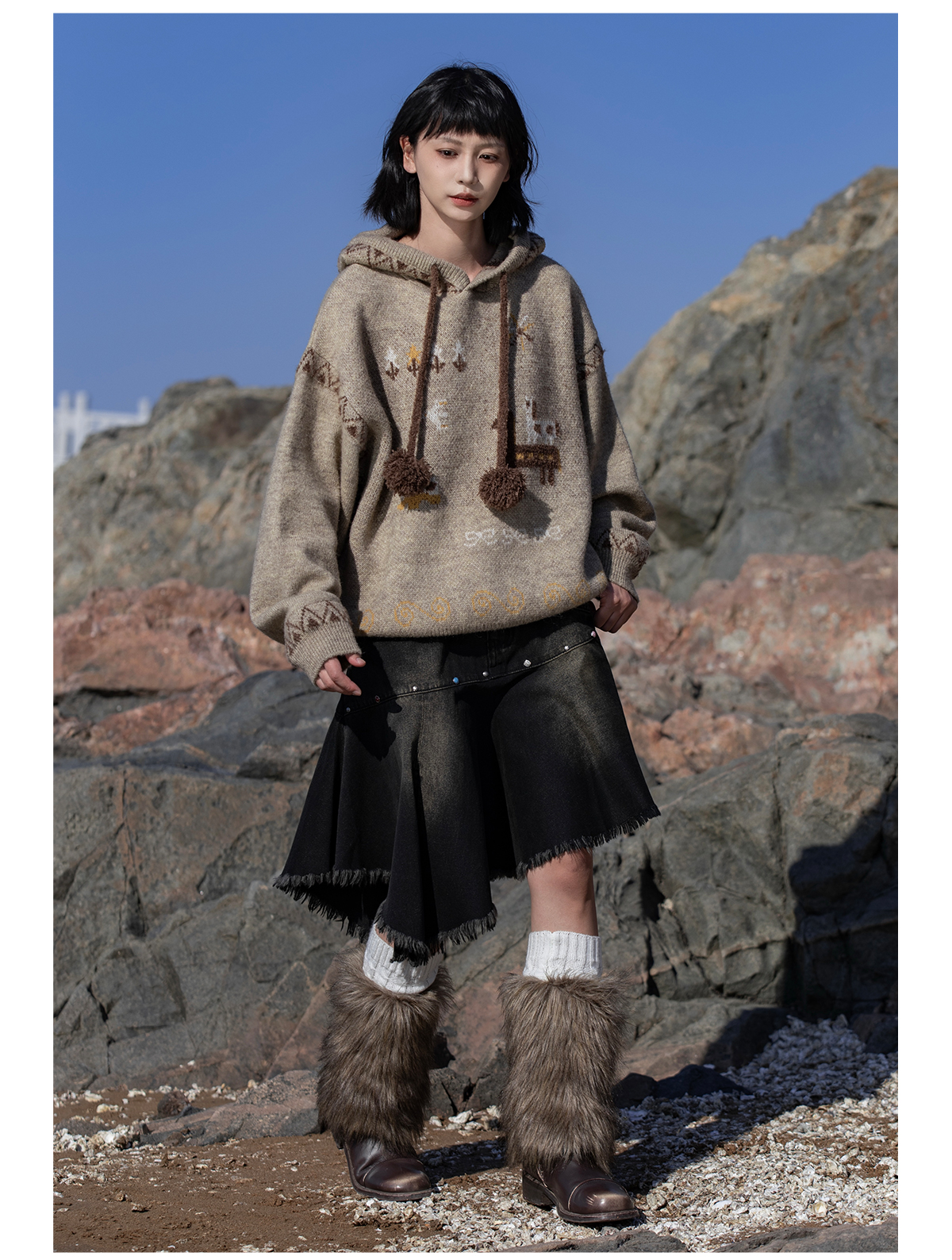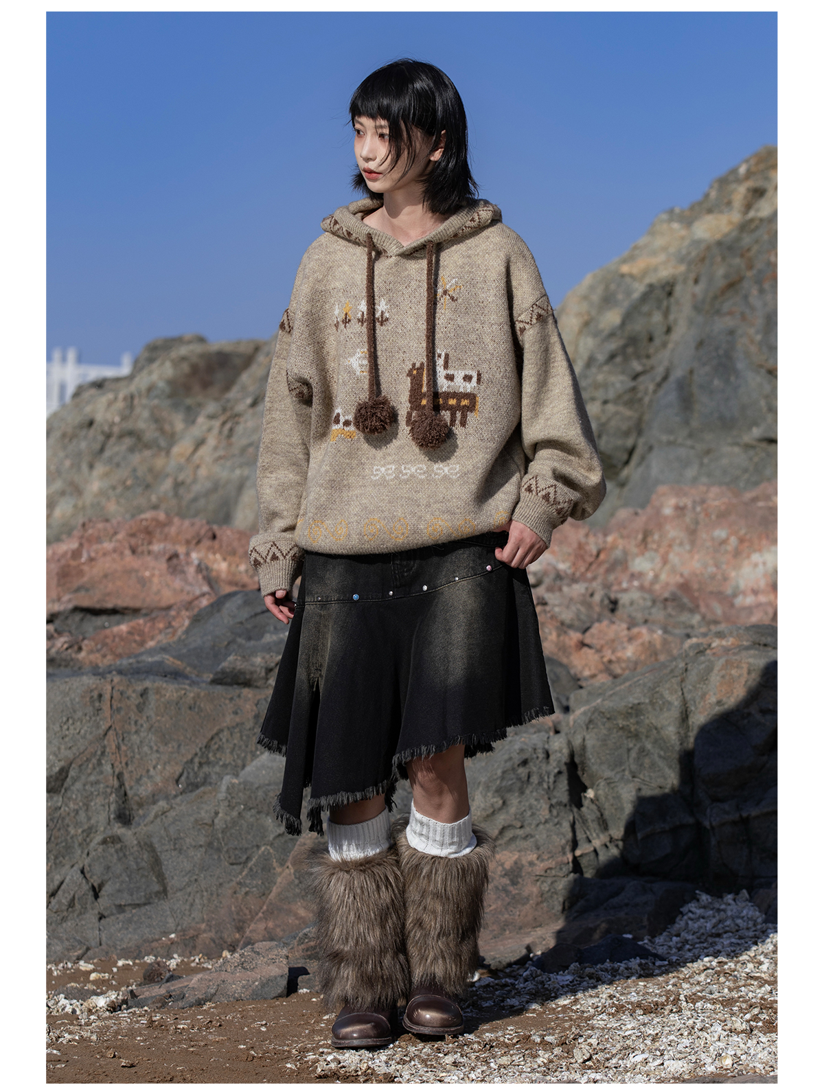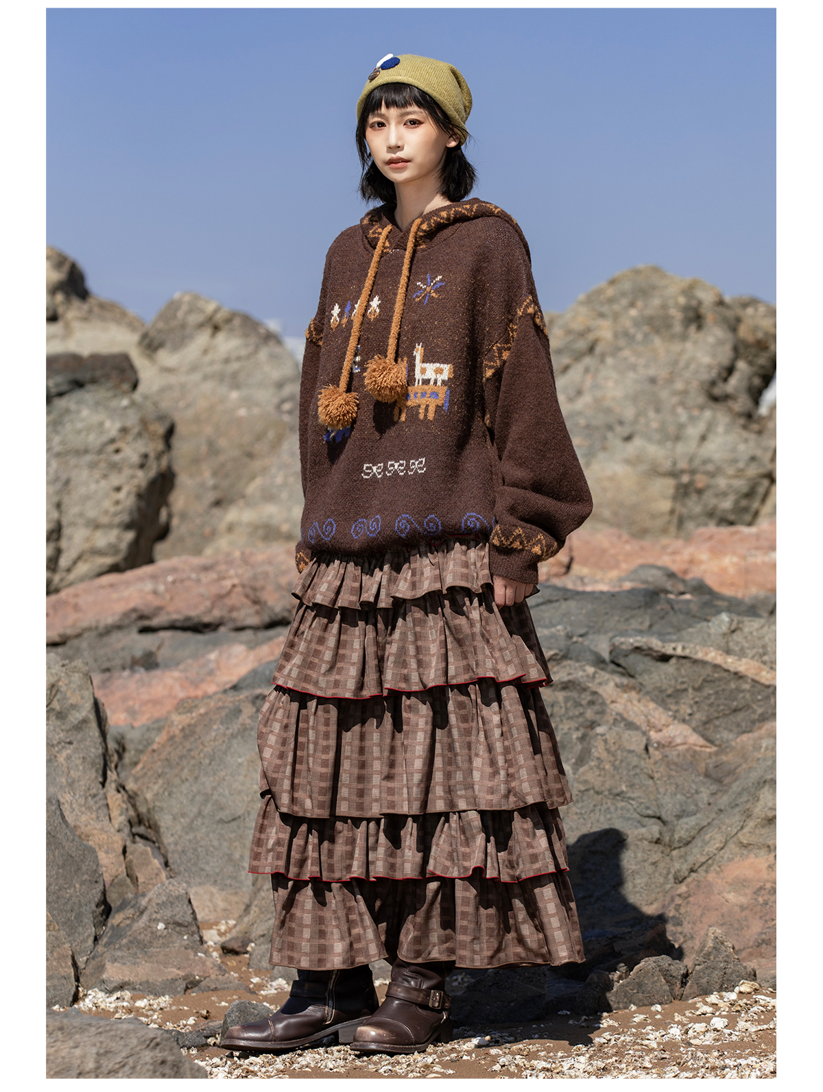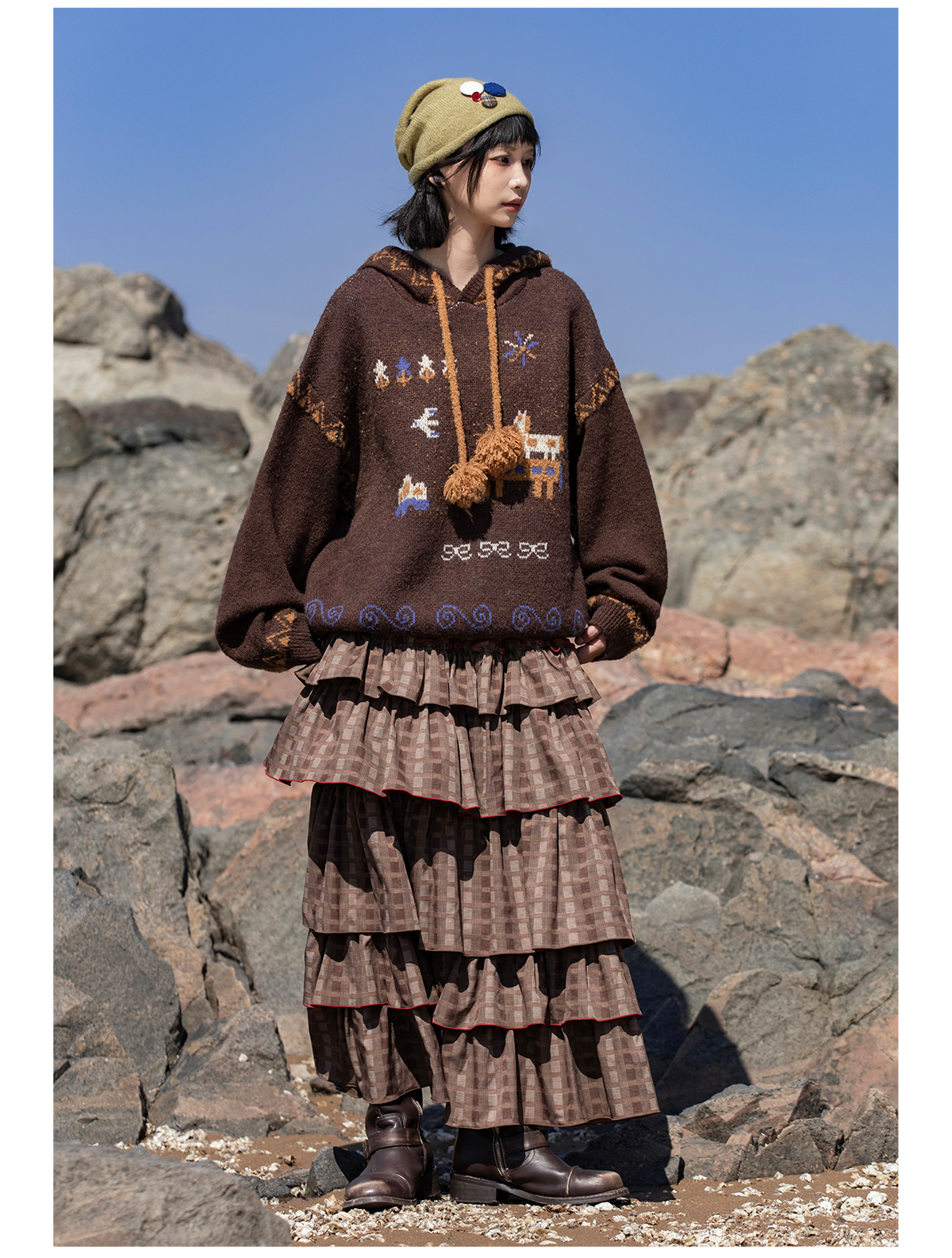 早乙女惠子saotome/STMMY13246/游牧风提花连帽毛衣