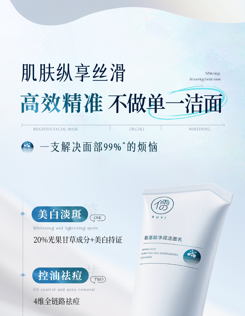 【⚡抢!第2件0元,需拍2件】儒意氨基酸净润洁面乳120g 氨基酸美白洗面奶控油深层清洁收缩毛孔洁面乳女士|儒意官方旗舰店