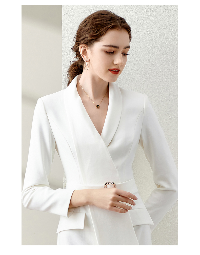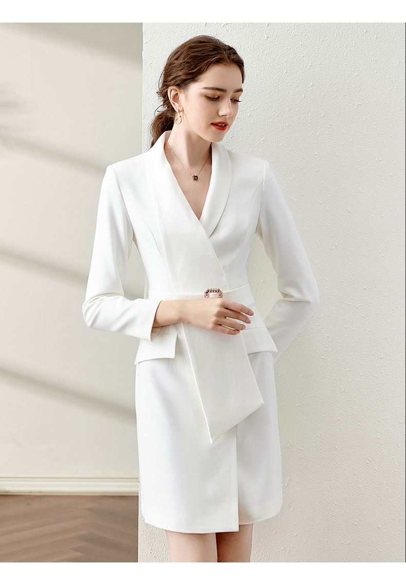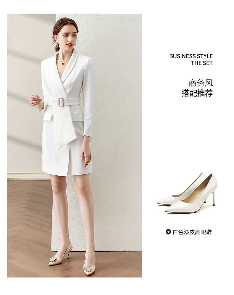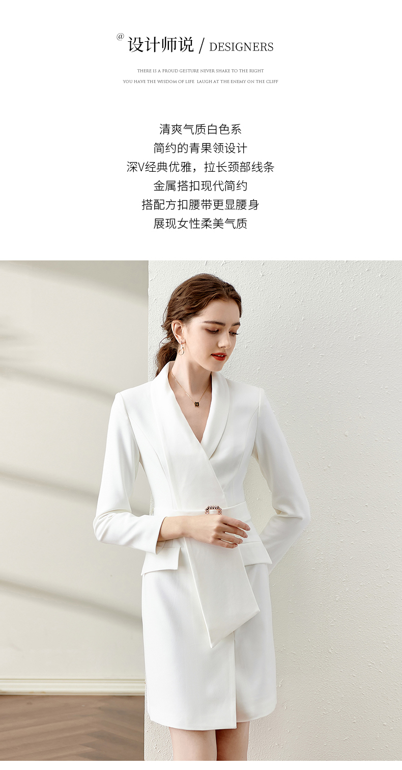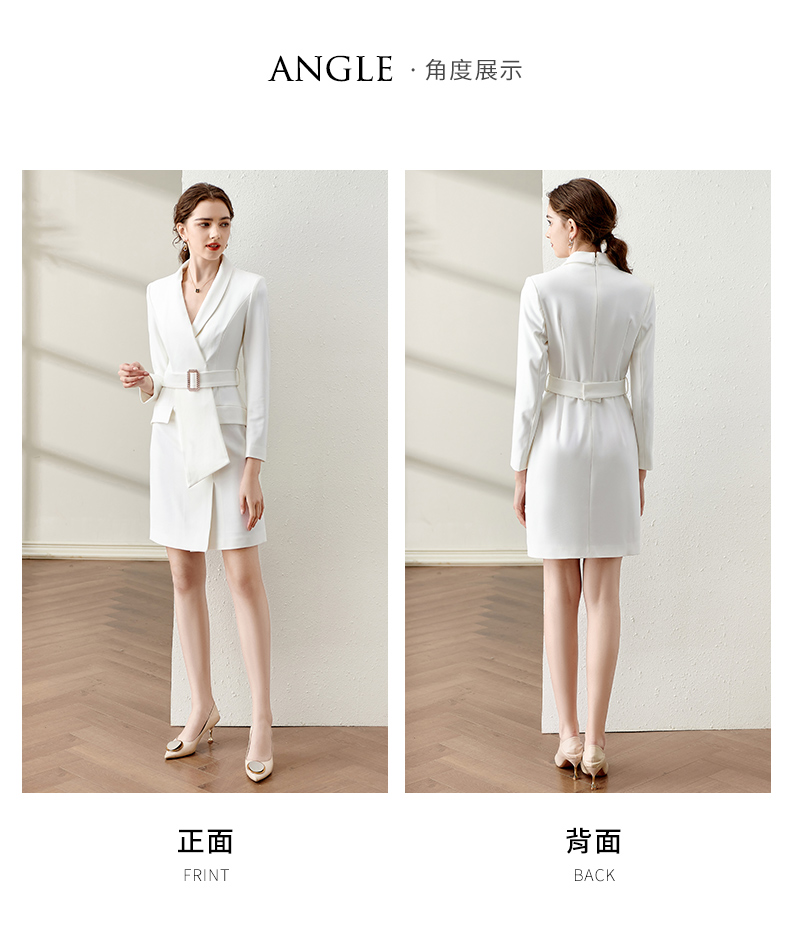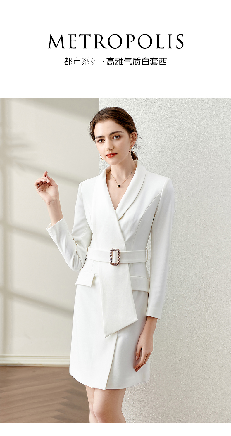 IWY/春季白色连衣裙2022新款洋气时尚设计西装裙腰带修身职业装工作服 Q11112