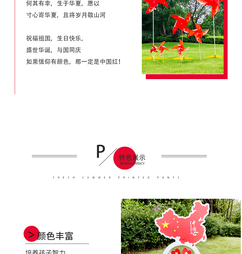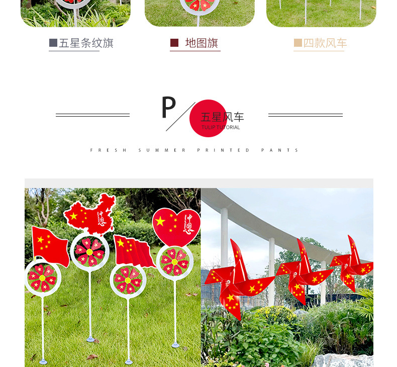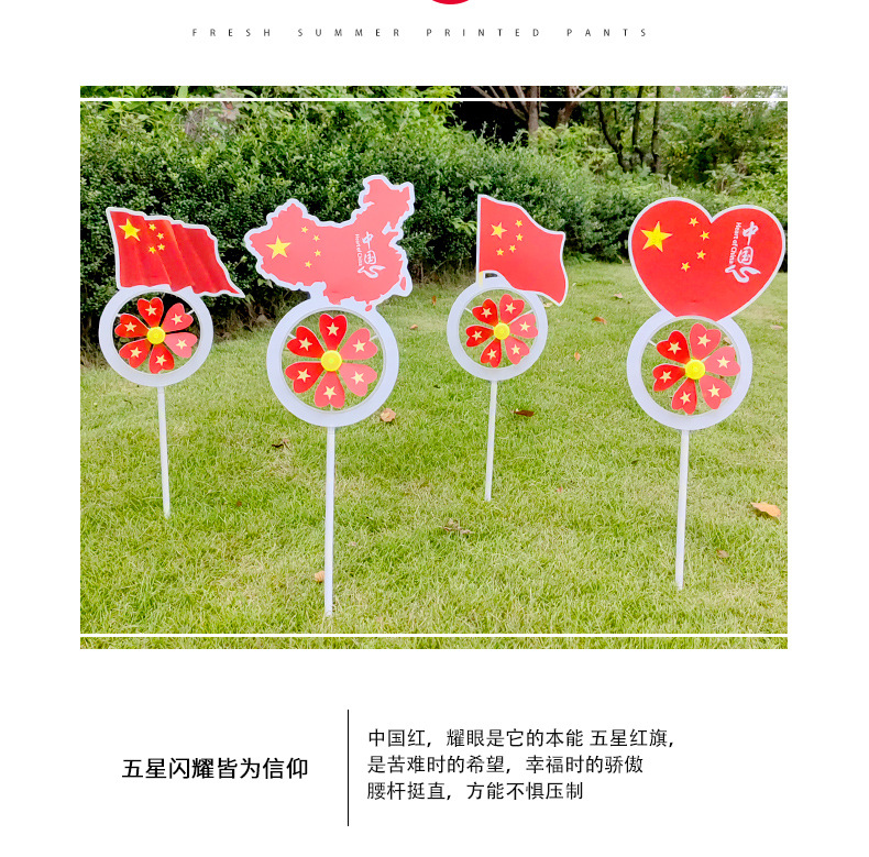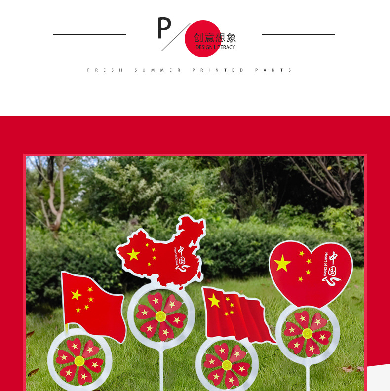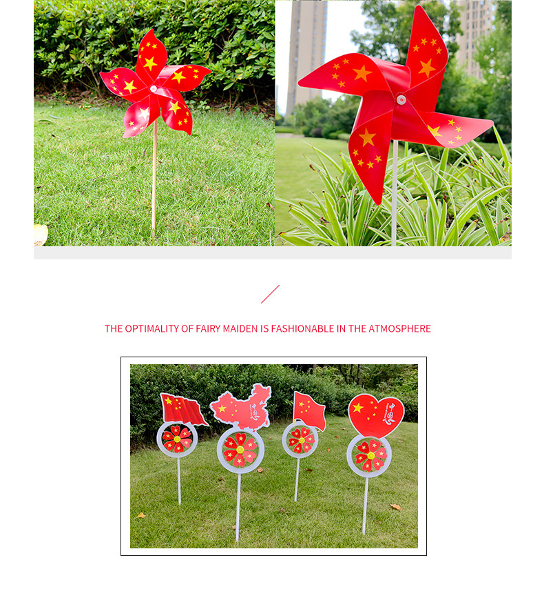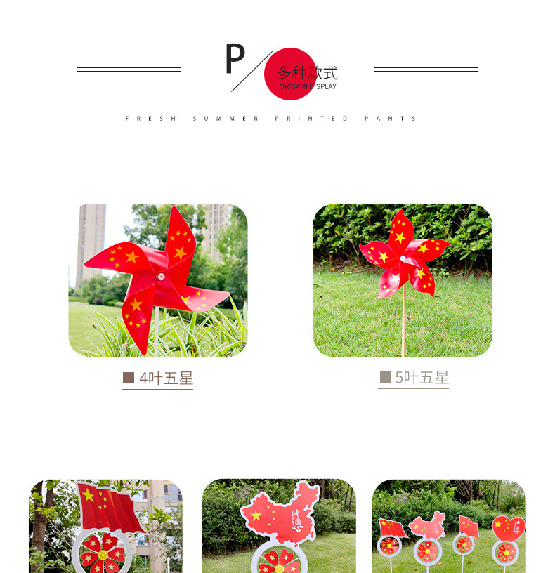 【红色五角星国旗风车】儿童手工 户外幼儿园景区国庆装饰 景区悬挂摆件