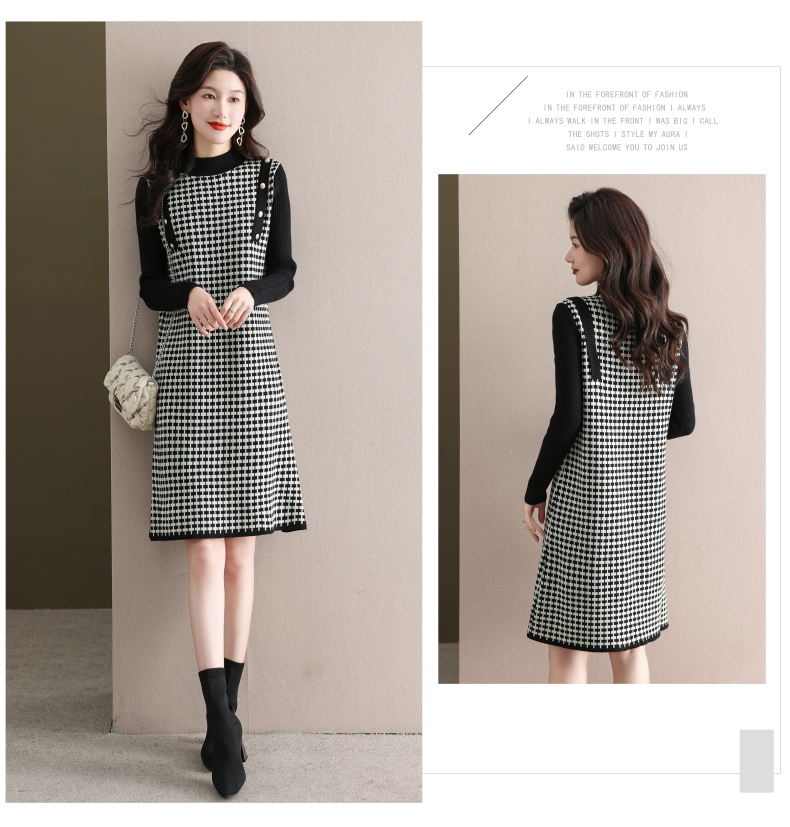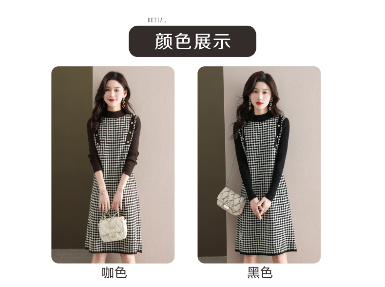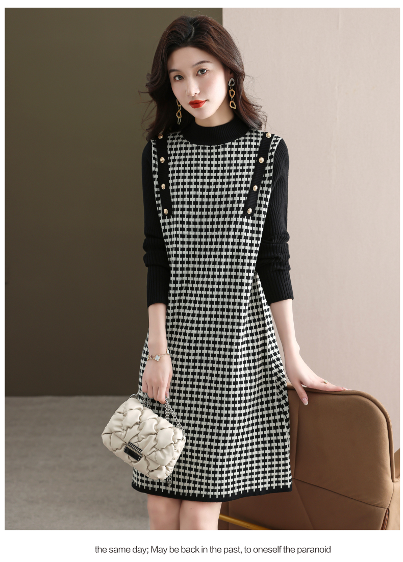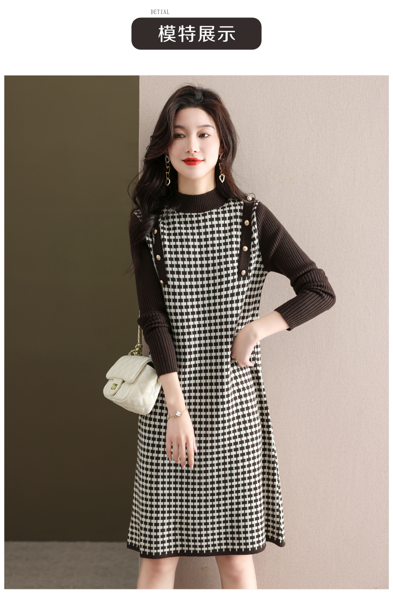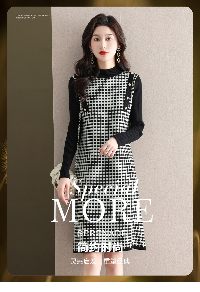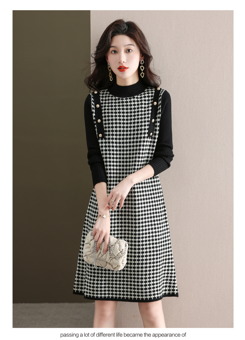 千鸟格针织连衣裙,秋冬配大衣打底毛衣裙CC-28-6121