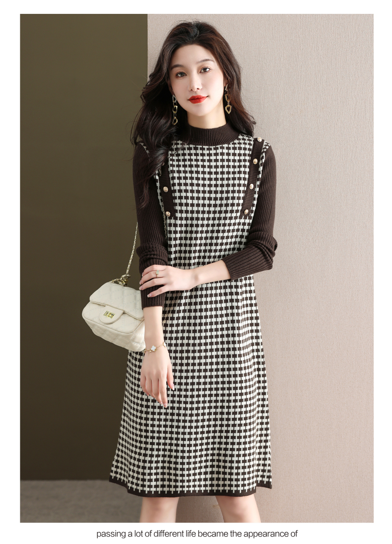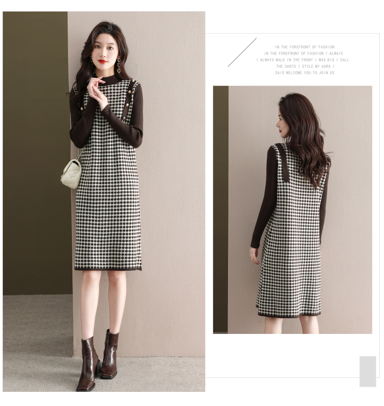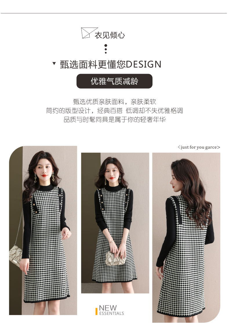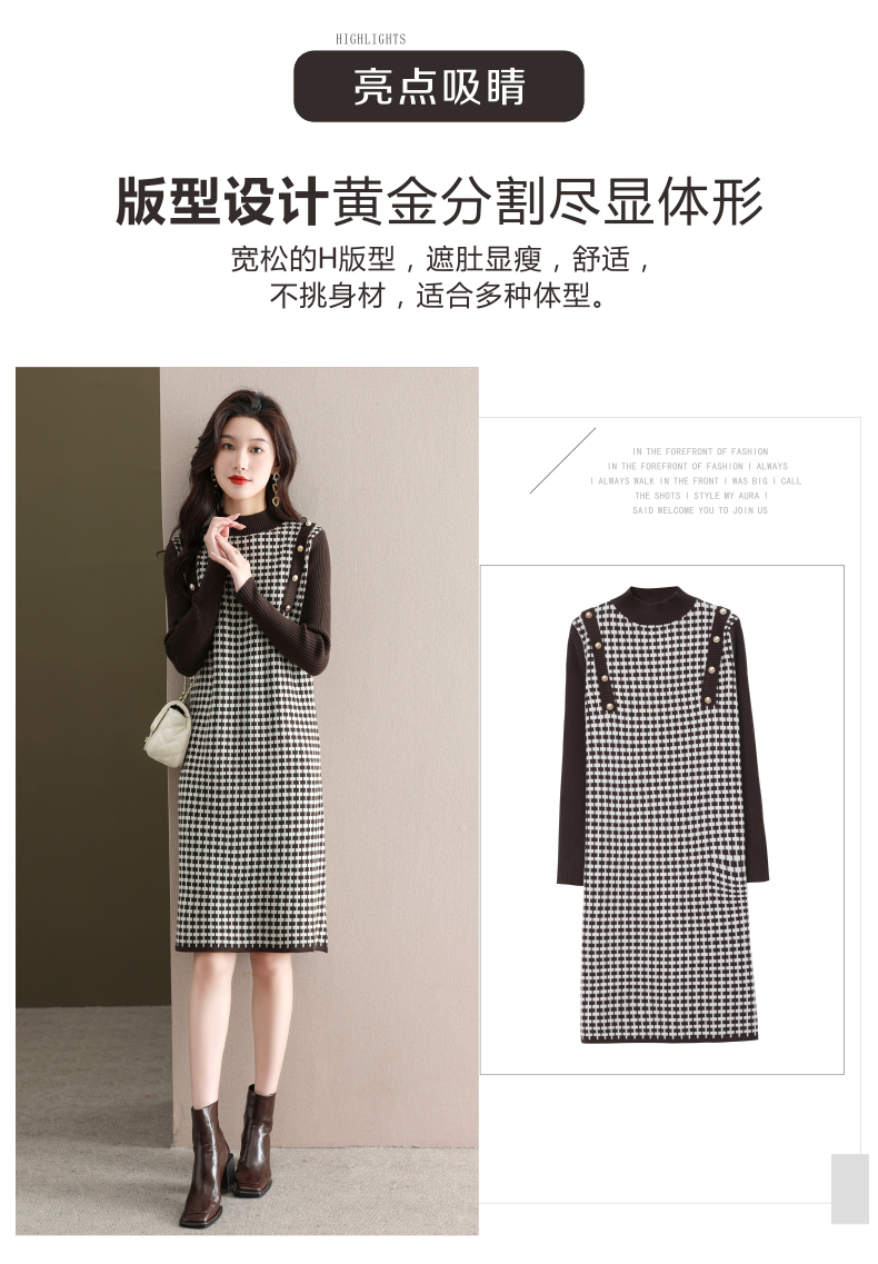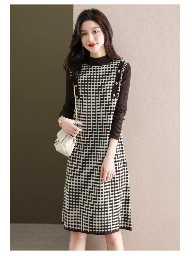 千鸟格针织连衣裙,秋冬配大衣打底毛衣裙CC-28-6121