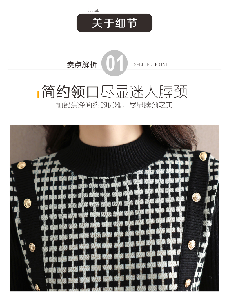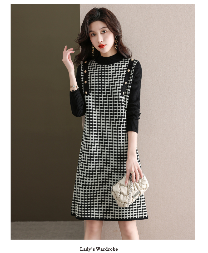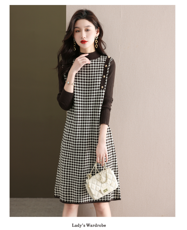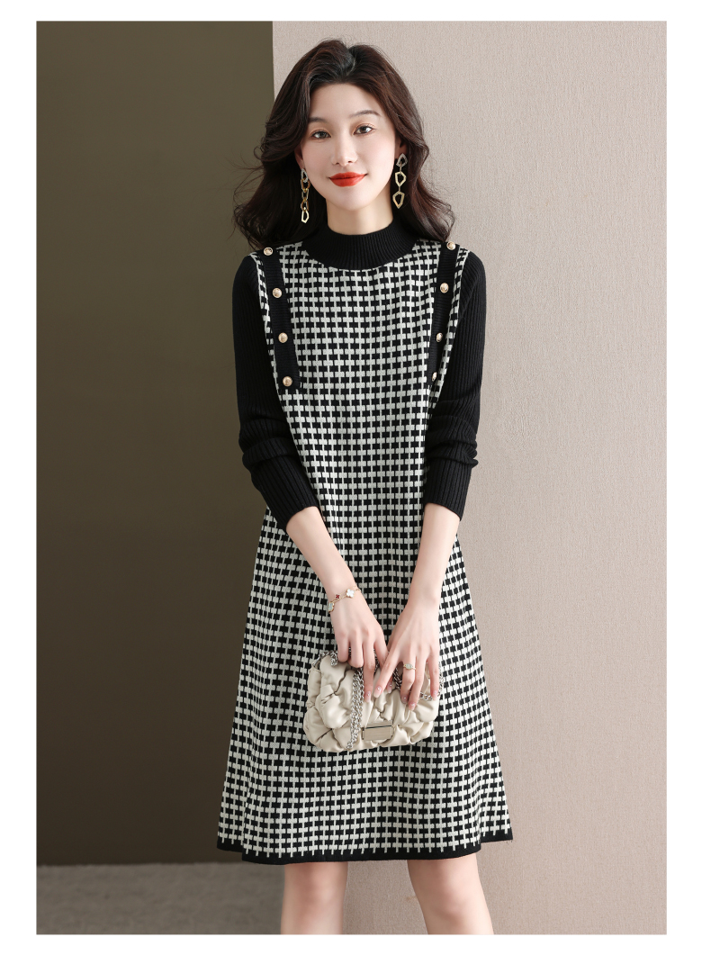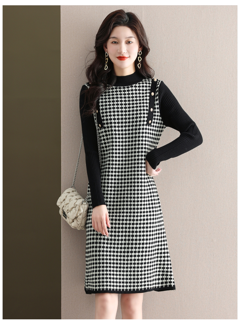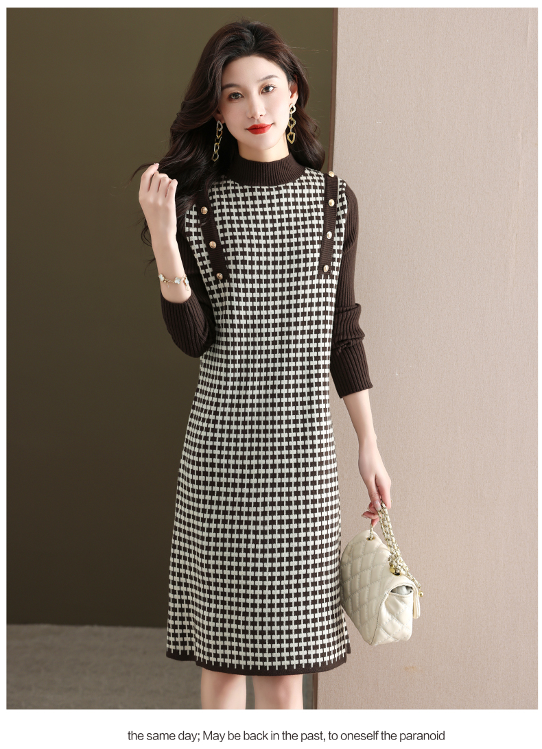 千鸟格针织连衣裙,秋冬配大衣打底毛衣裙CC-28-6121