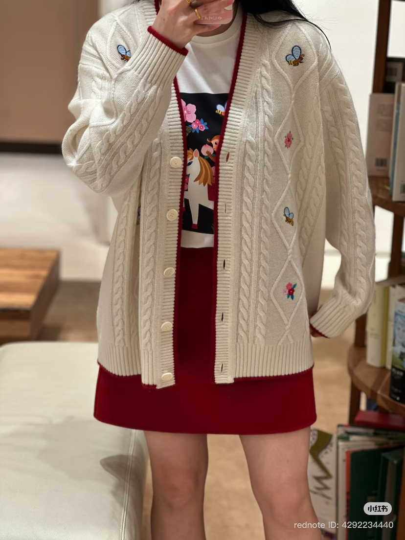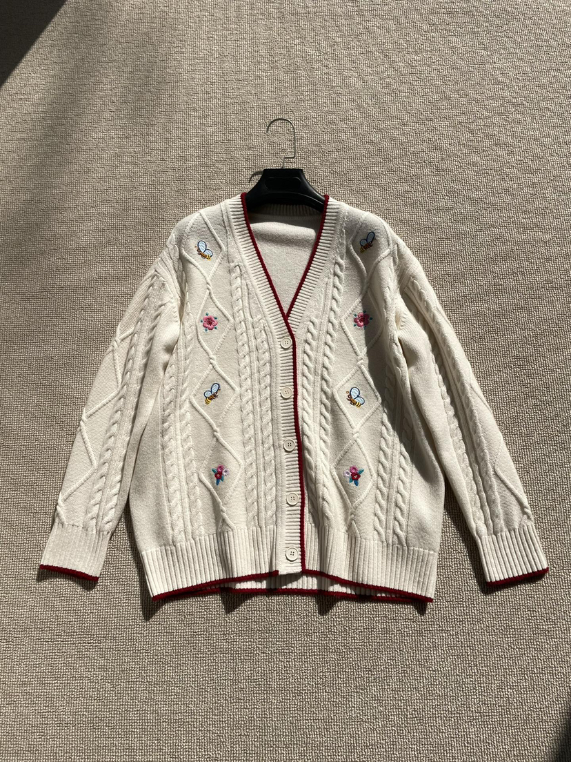 1226-8 独家圆正 小禾 新春胶囊系列 趣味刺绣 羊毛羊绒 廓形开衫 外套