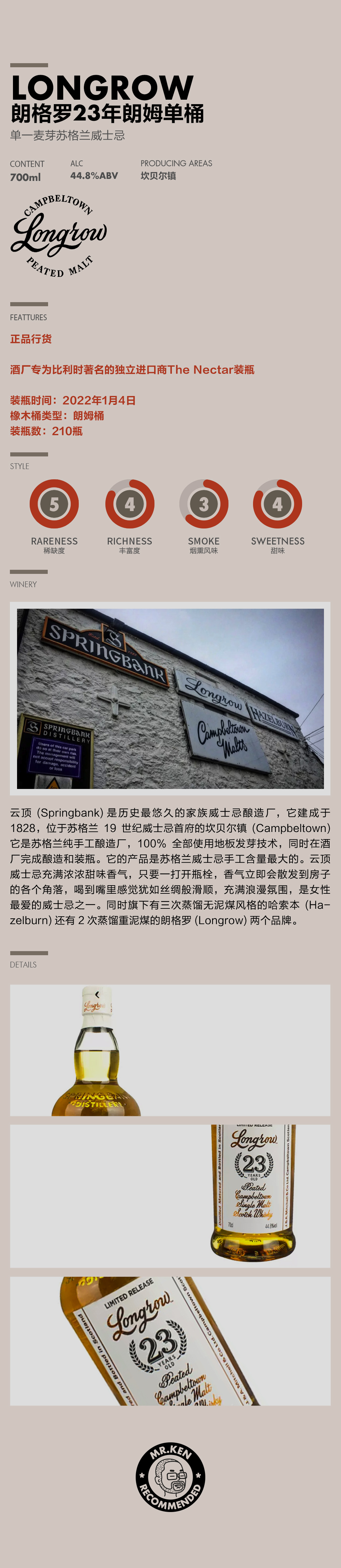 郎格罗(Longrow) 23年朗姆单桶单一麦芽苏格兰威士忌
