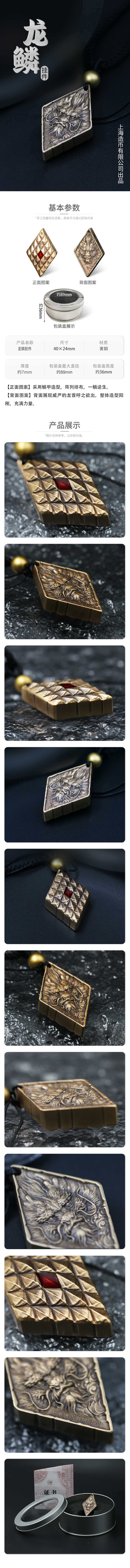 【上海造币】逆鳞·异形龙鳞高浮雕黄铜挂饰(配项链+礼盒)