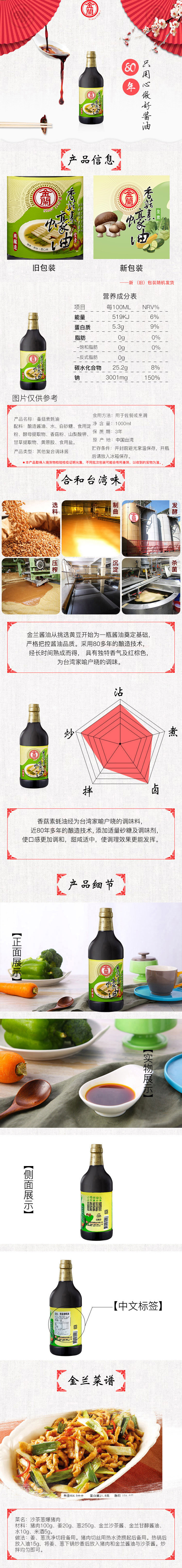 中国台湾金兰香菇素蚝油1000ml/033644 荤素皆可食用鲜香入味多种用途