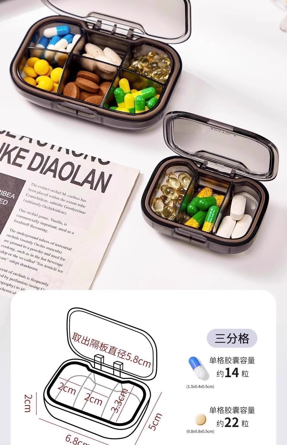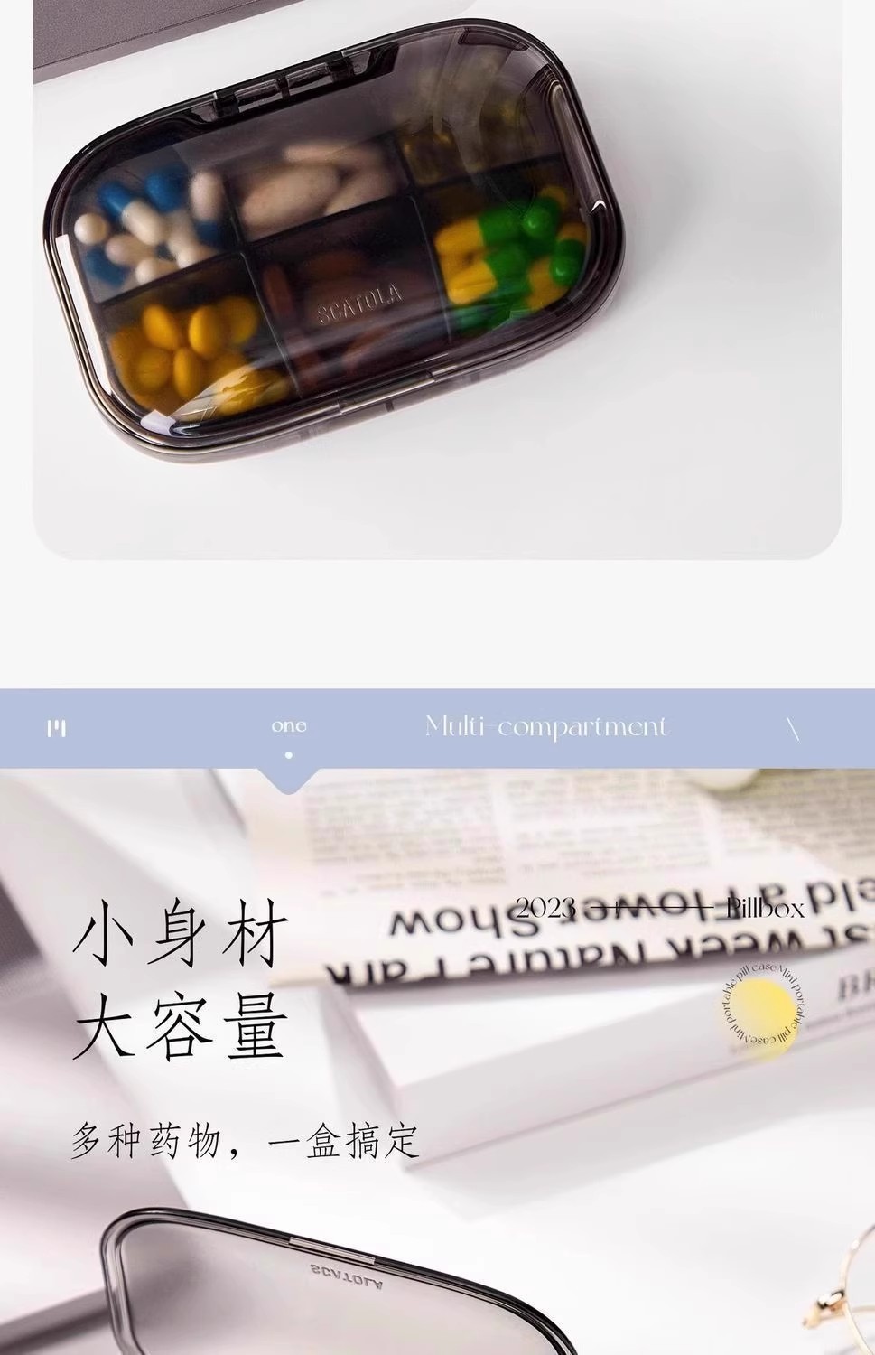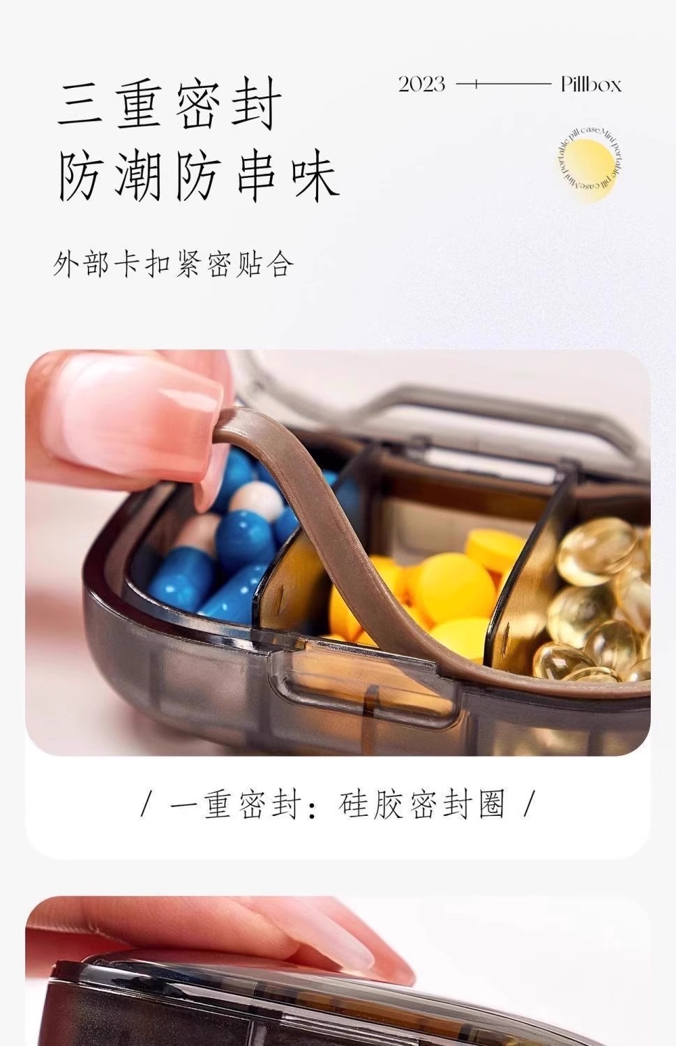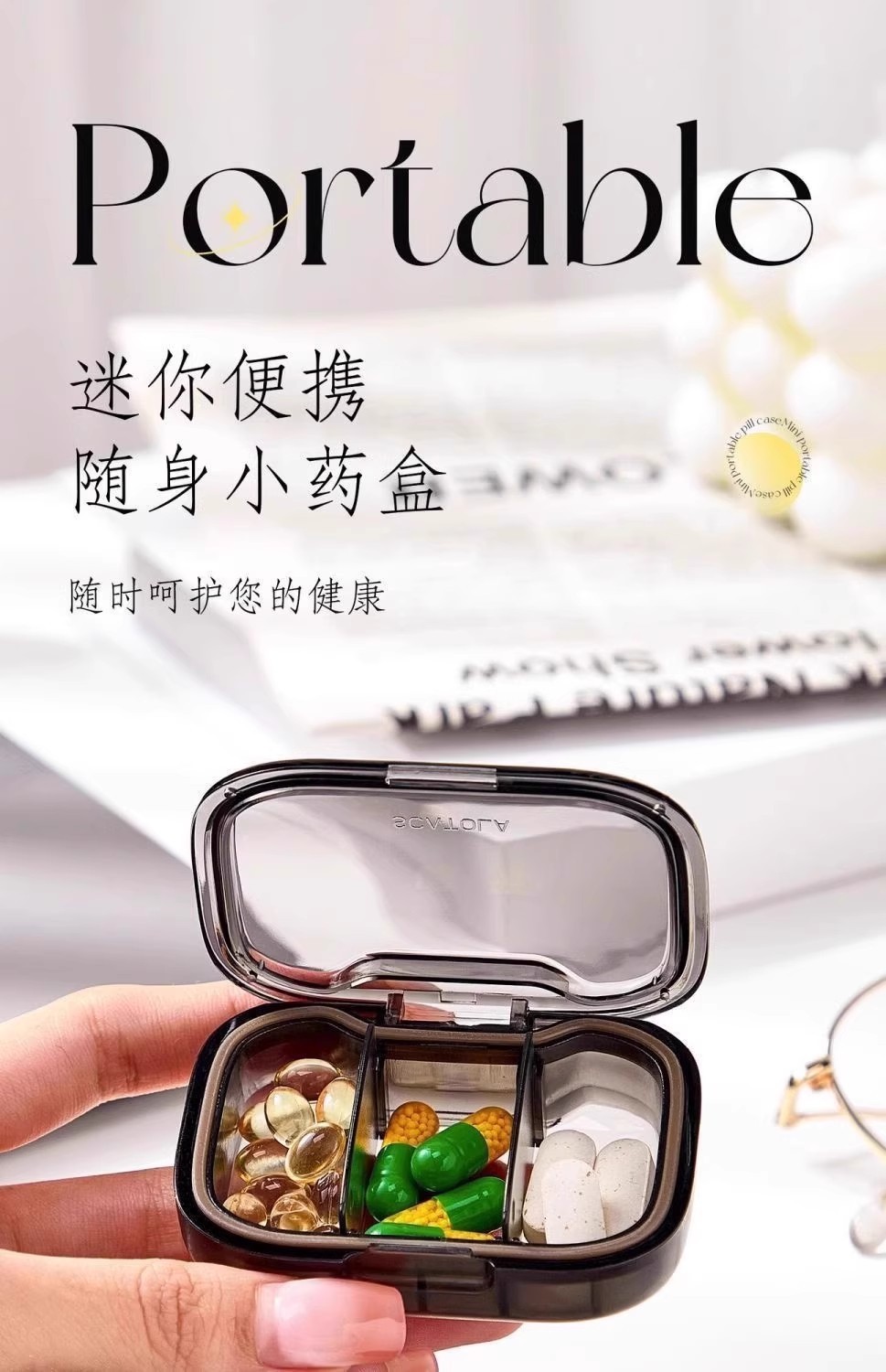 【掌心大小便携❗️可拆隔板灵活分装🔥】轻奢高颜值,迷你便携式随身小药盒,防尘防潮防串味,密封硅胶收纳药品分装盒.TA