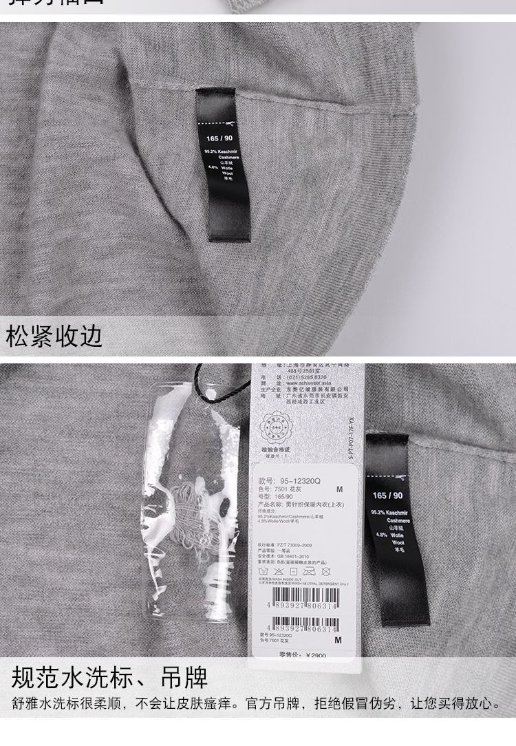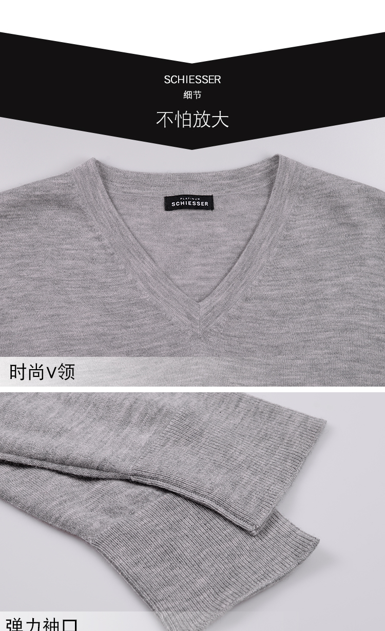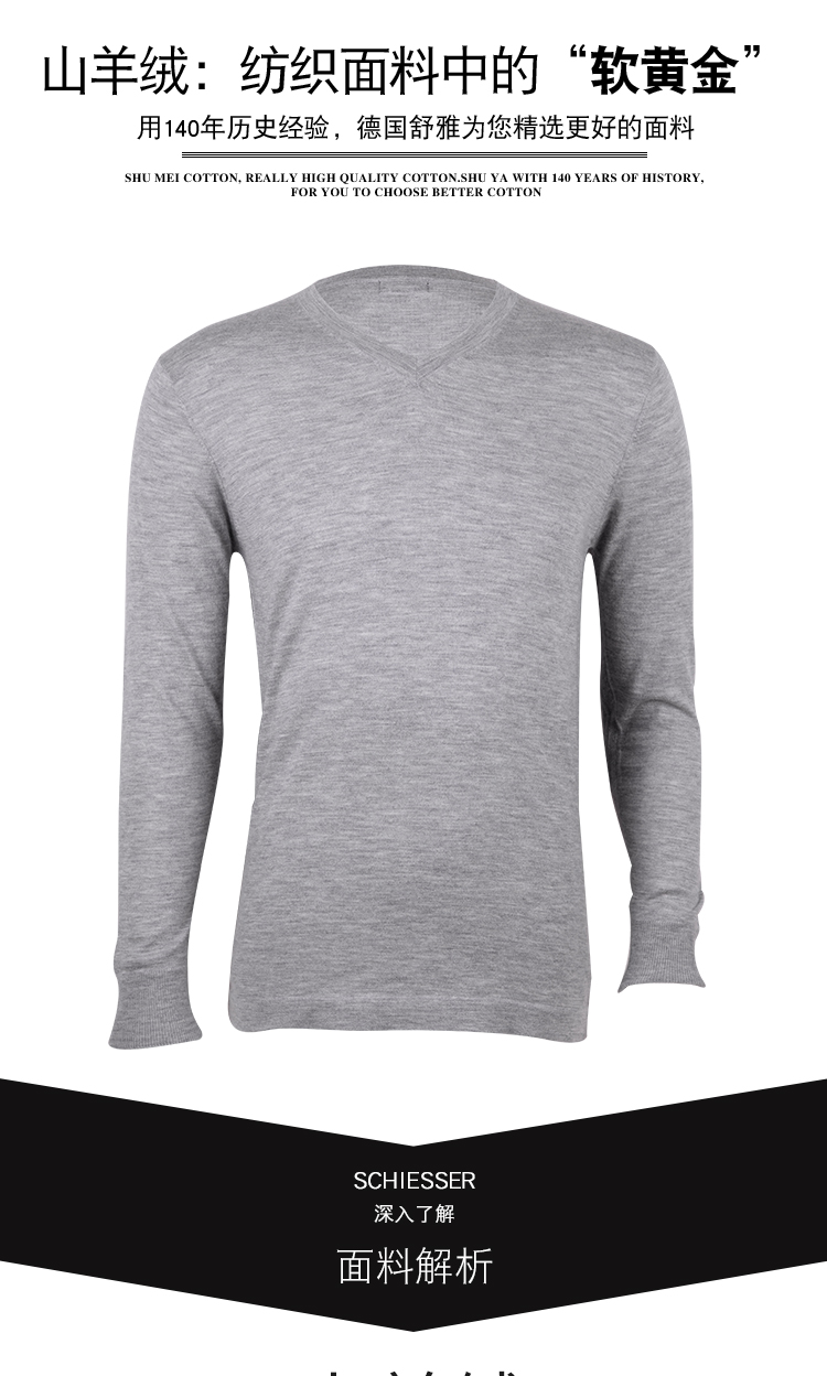 【95%山羊绒+5%羊毛】SCHIESSER 德国舒雅男士 铂雅山羊绒V领保暖单上衣 95/12320Q 批次不同成分颜色略有差异 可点击详情页最下方链接选择配套裤子