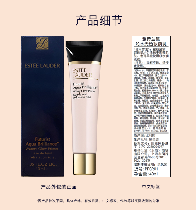 雅诗兰黛沁水光透妆前乳隔离霜40ml妆前打底持久保湿控油隐形毛孔自然服帖水润 妆前乳