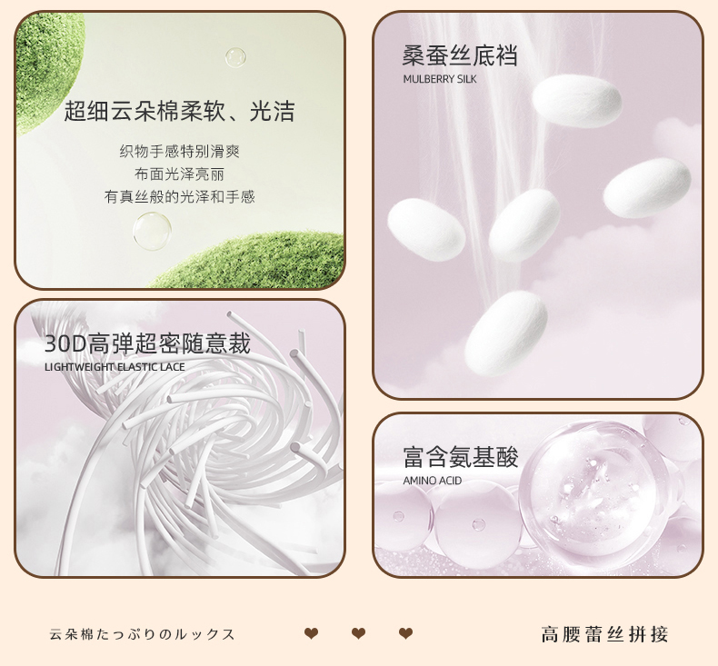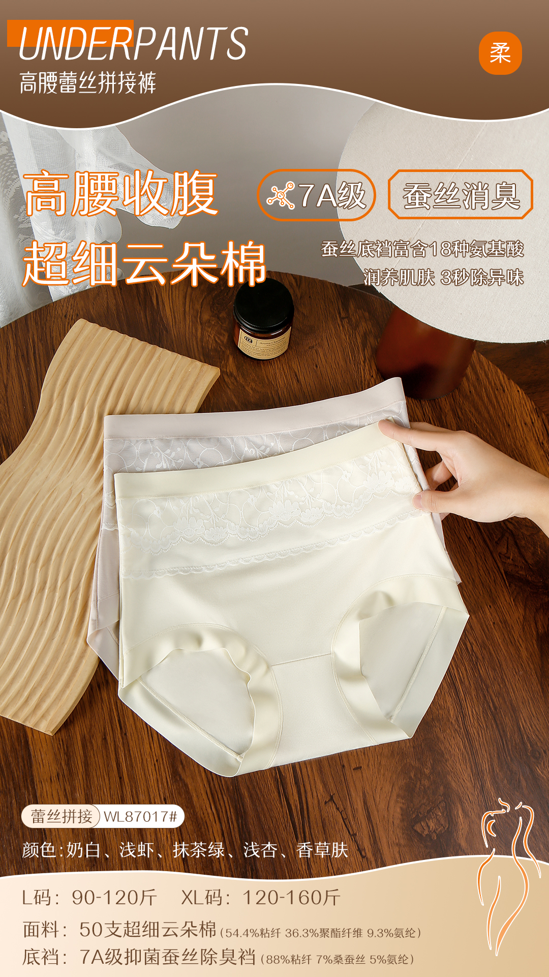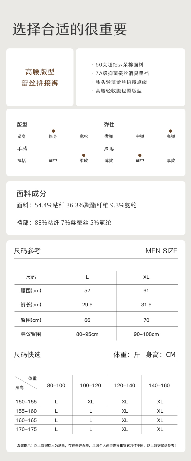 【底裆成分】桑蚕丝除臭纤维(88%粘纤 7%桑蚕丝 5%氨纶)