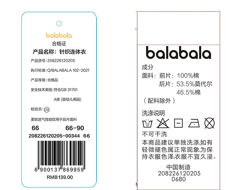 【balaOne】巴拉巴拉宝宝连体衣婴儿哈衣2026新款可爱时髦洋气萌