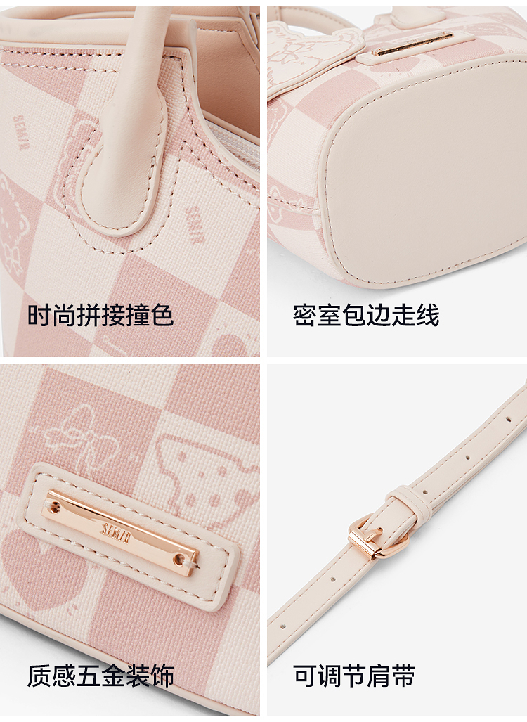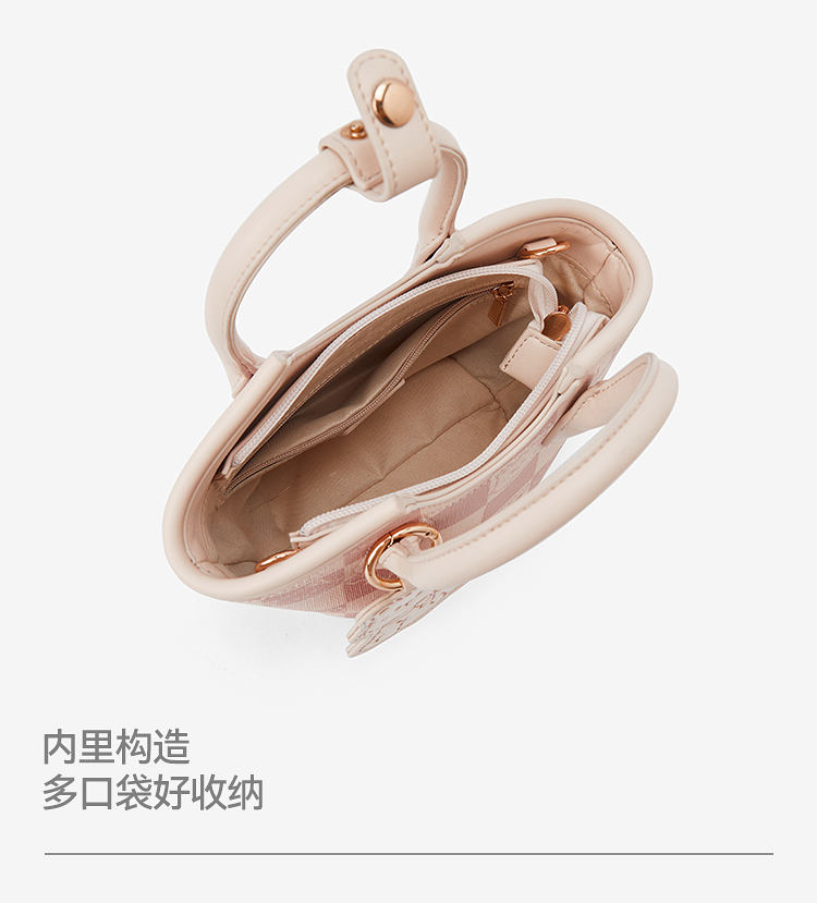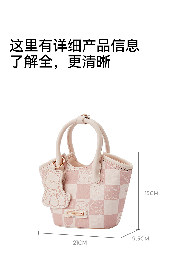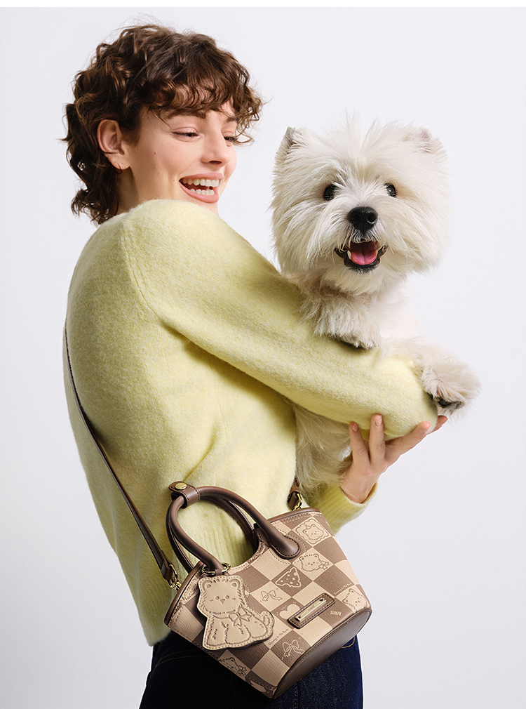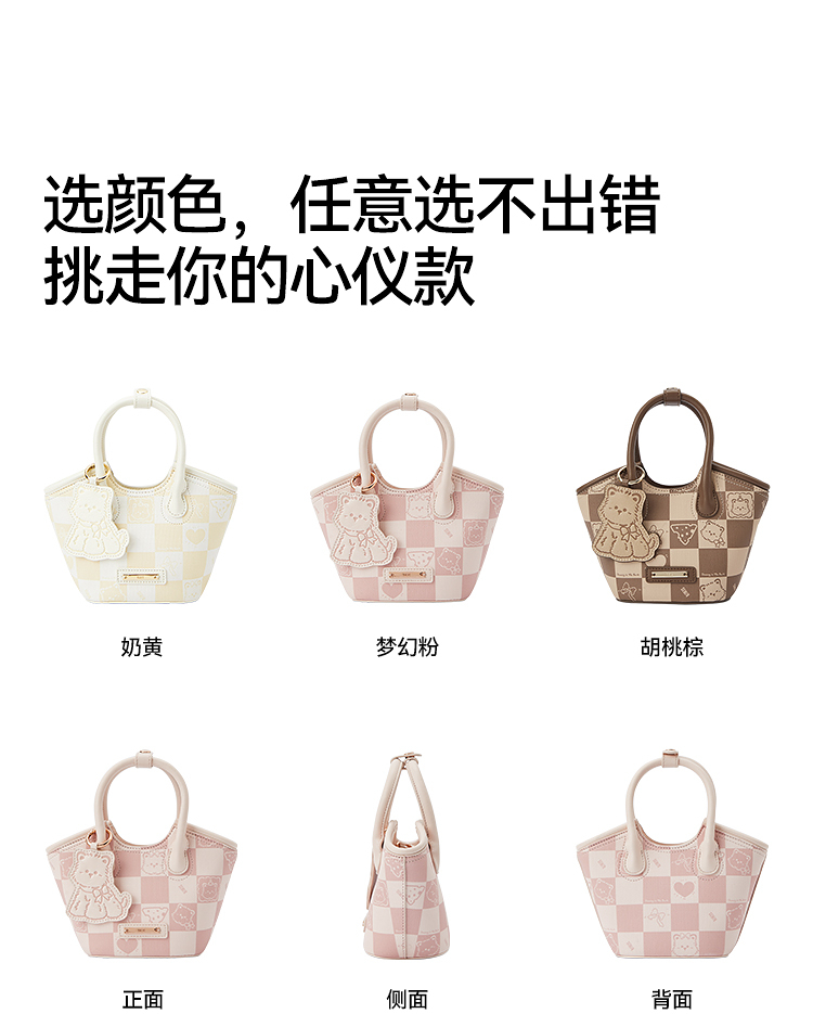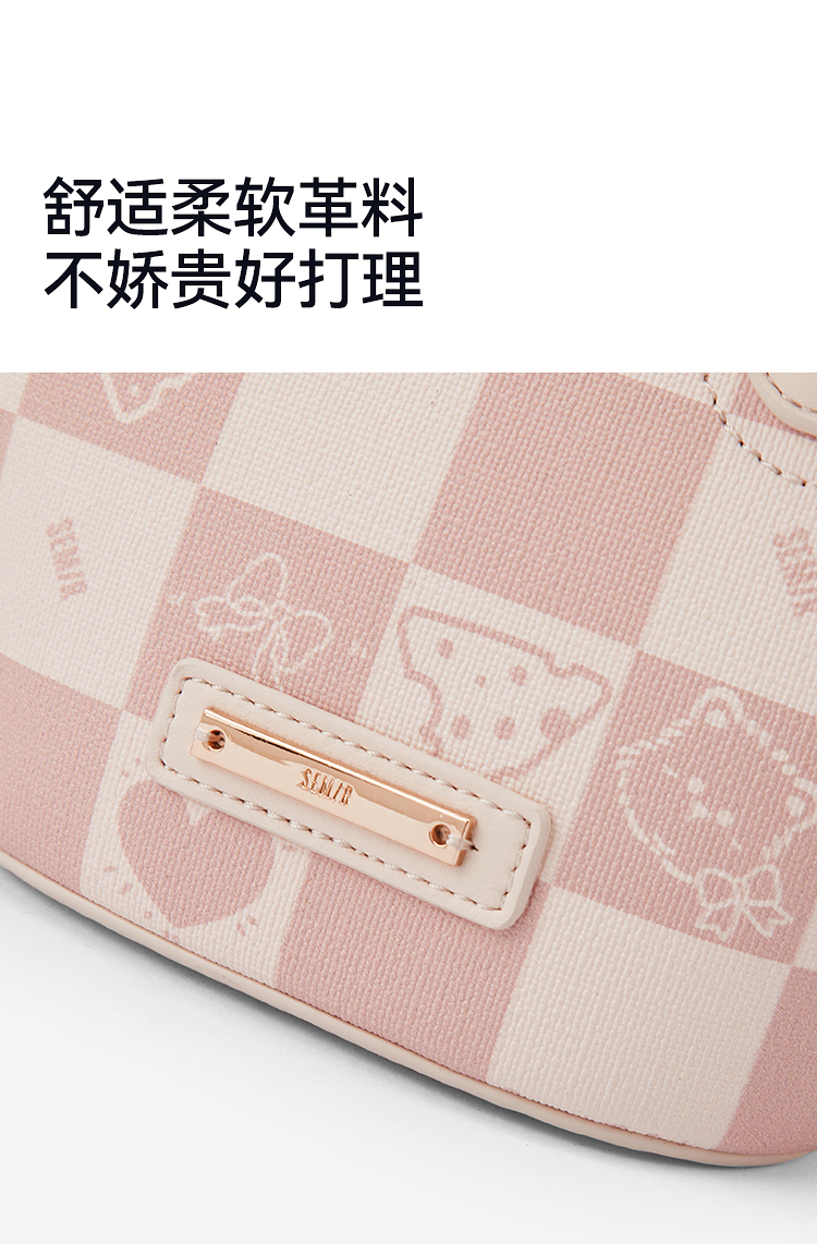 森马斜挎包女棋盘格印花可爱小狗手提包2025新款单肩包时髦菜篮子