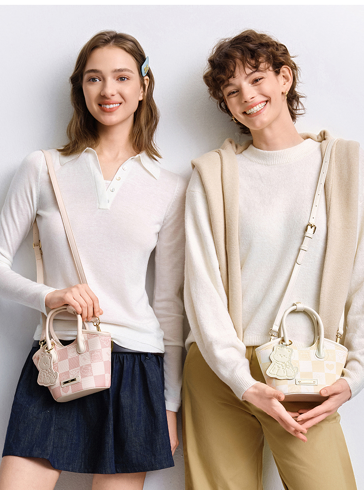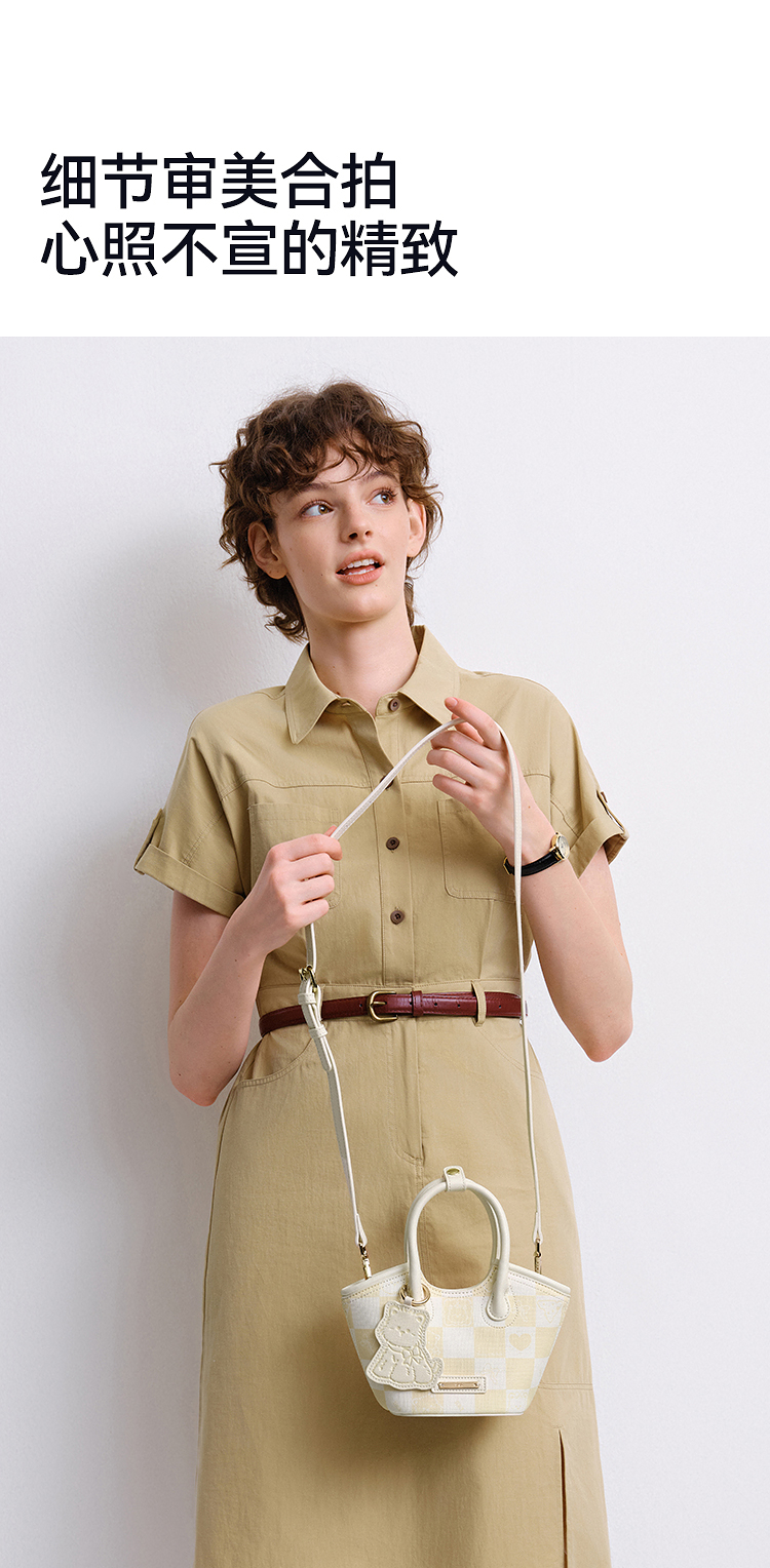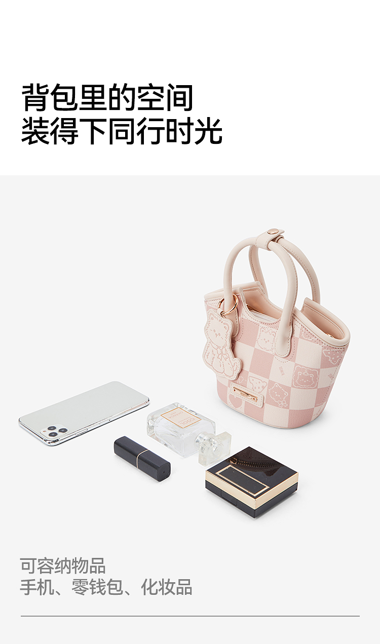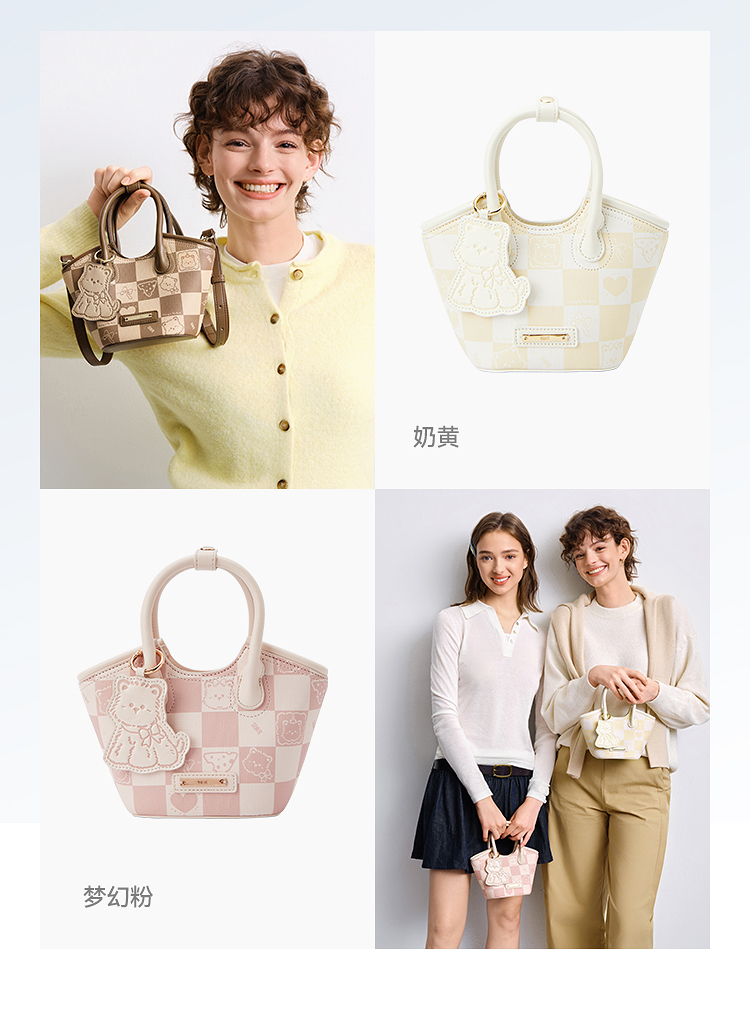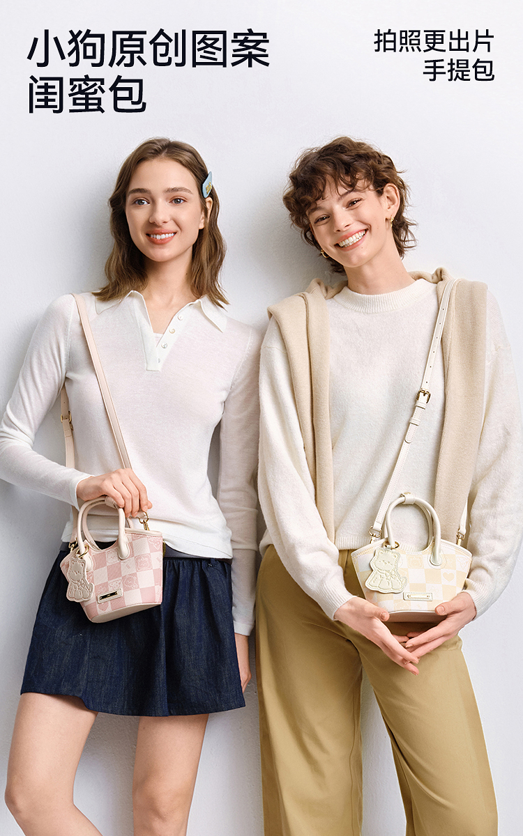 森马斜挎包女棋盘格印花可爱小狗手提包2025新款单肩包时髦菜篮子