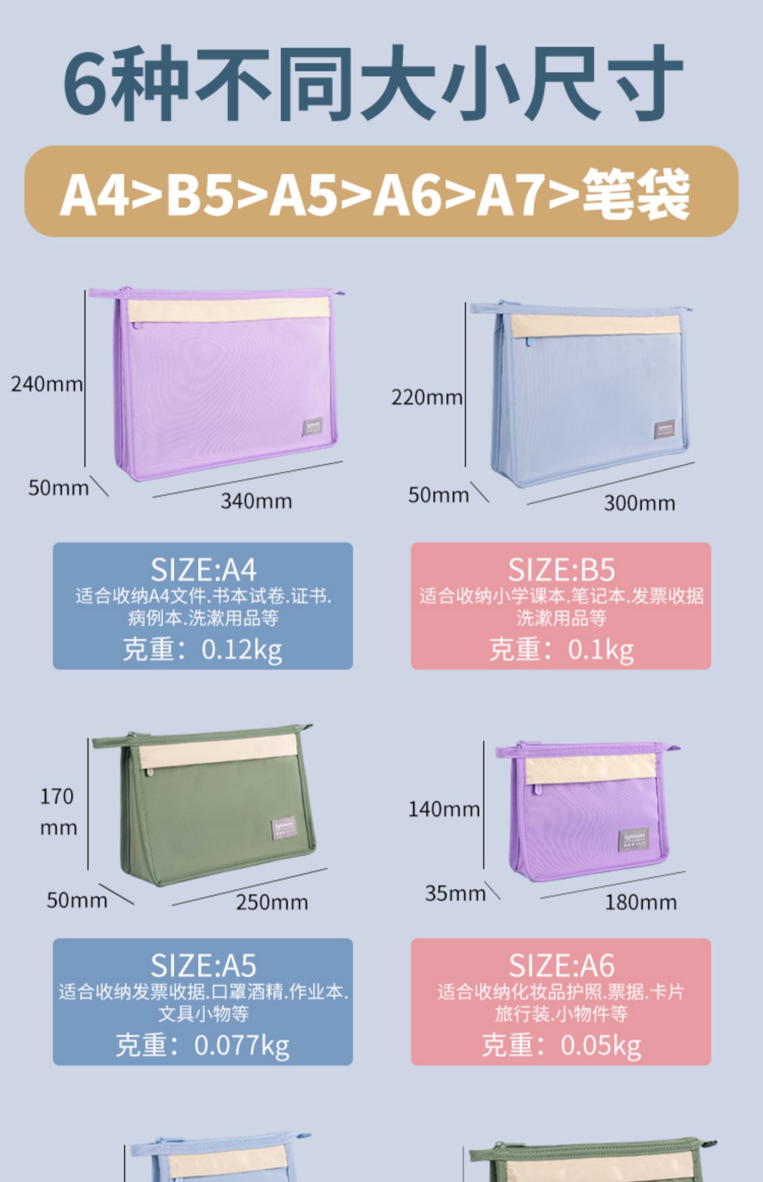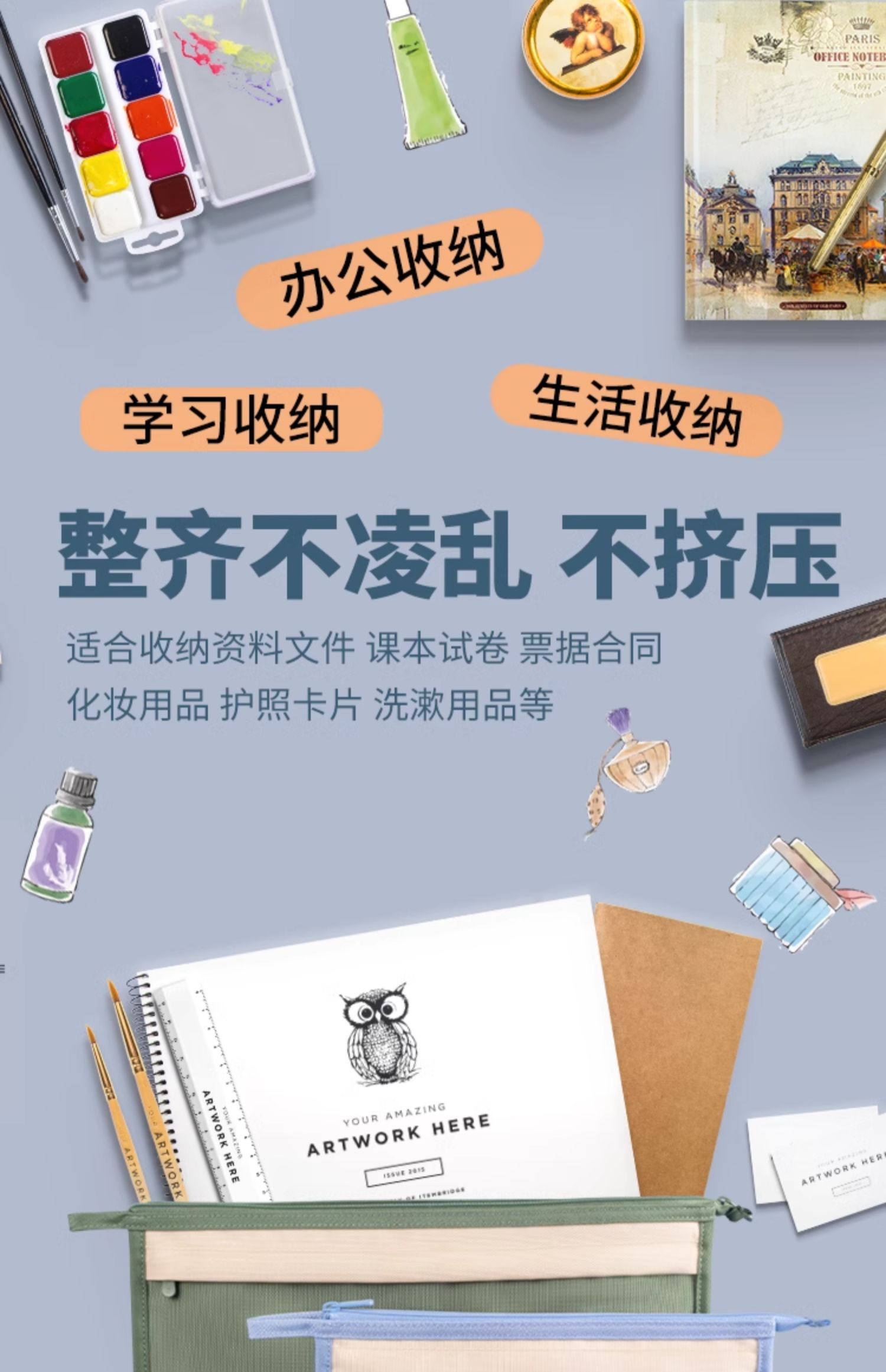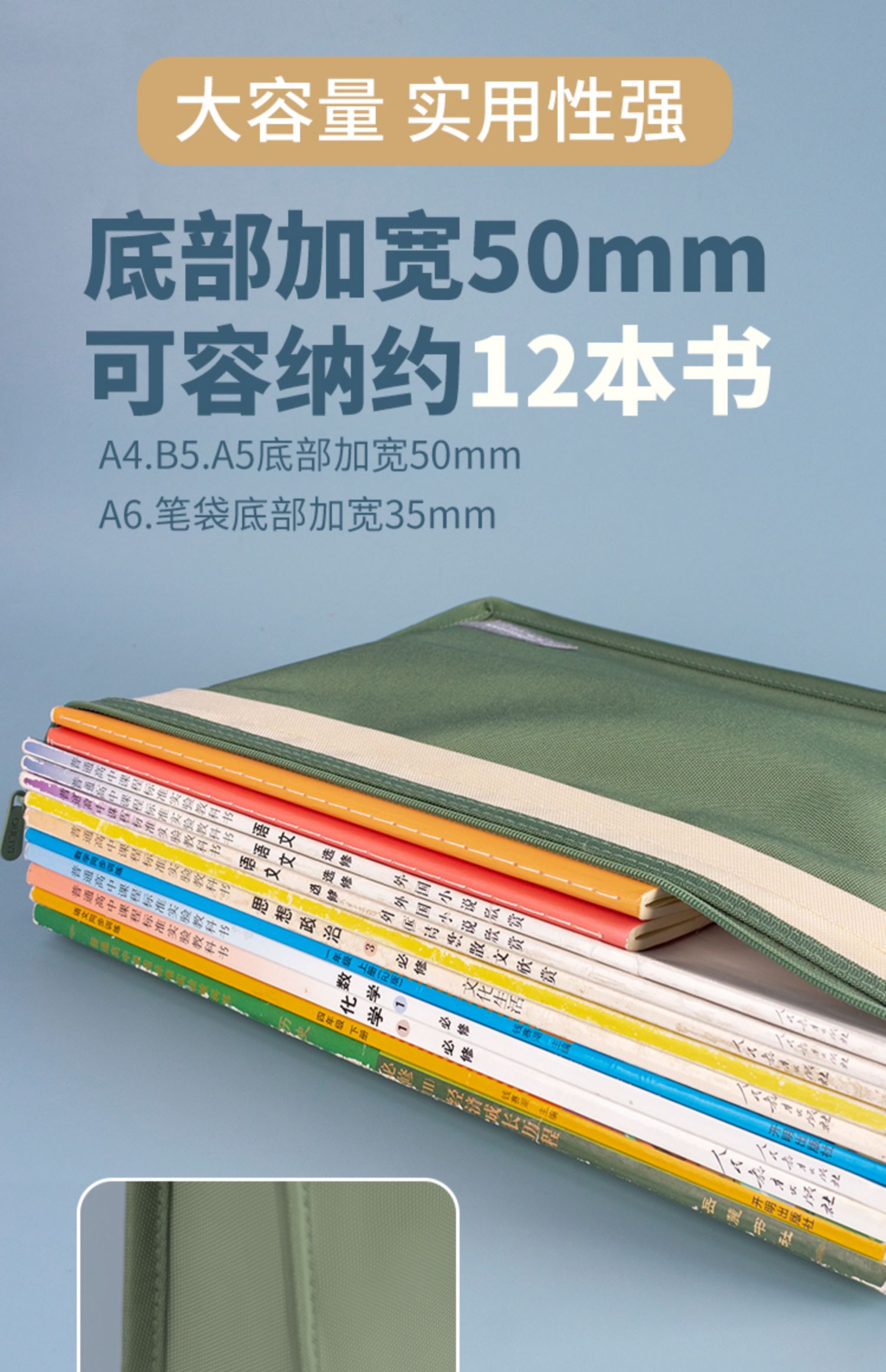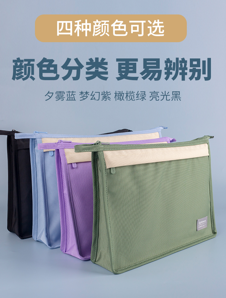 欧力益双层文件袋A4办公资料袋拉链式学生书本分类袋大容量证件孕检病历保险单据收纳袋A5轻便笔袋防水可定制