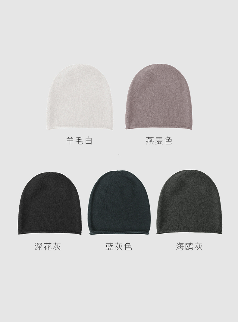 HIDEMI 美利奴羊毛套头针织帽 蓝灰色/深花灰/海鸥灰/燕麦色/羊毛白