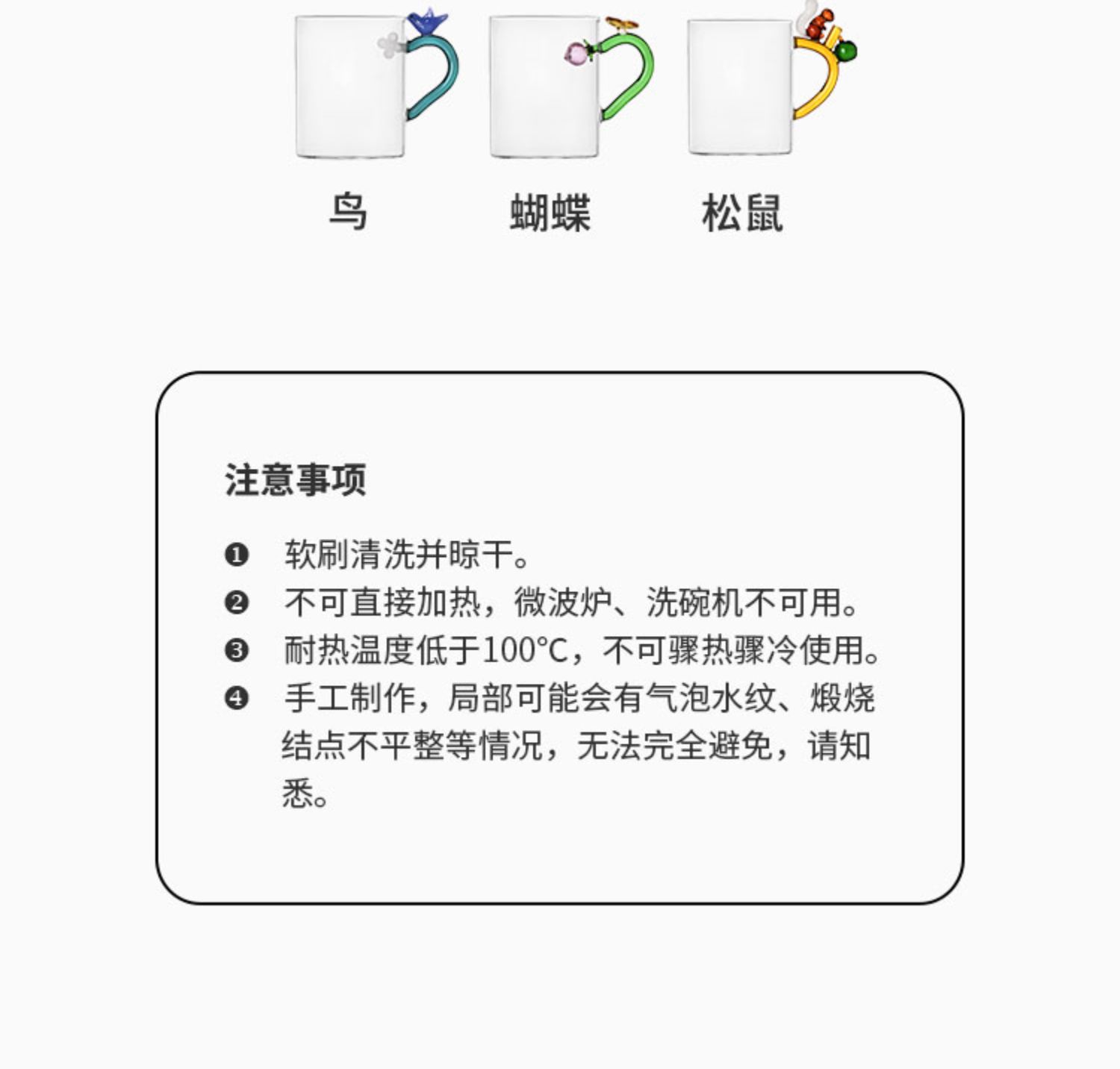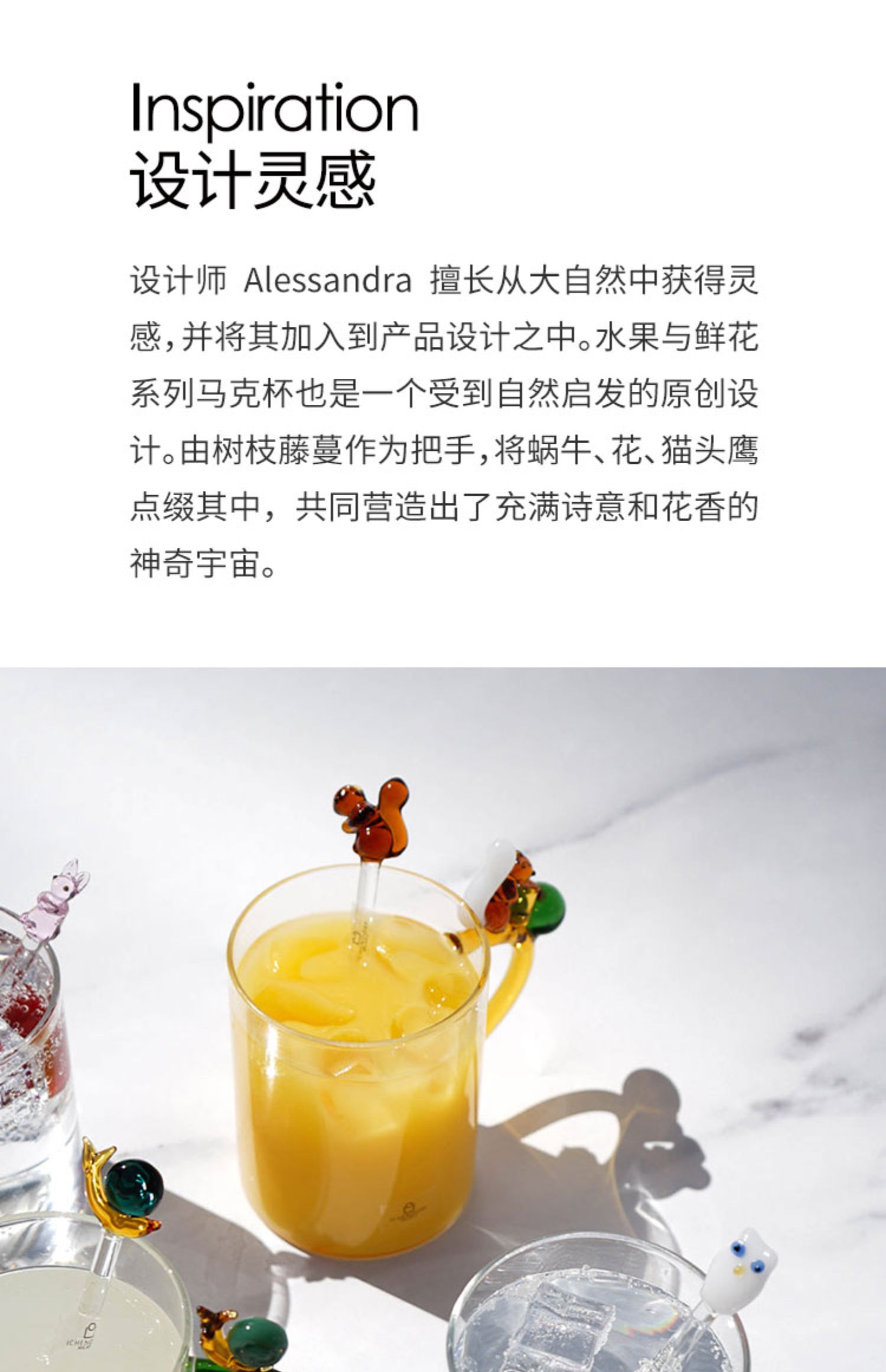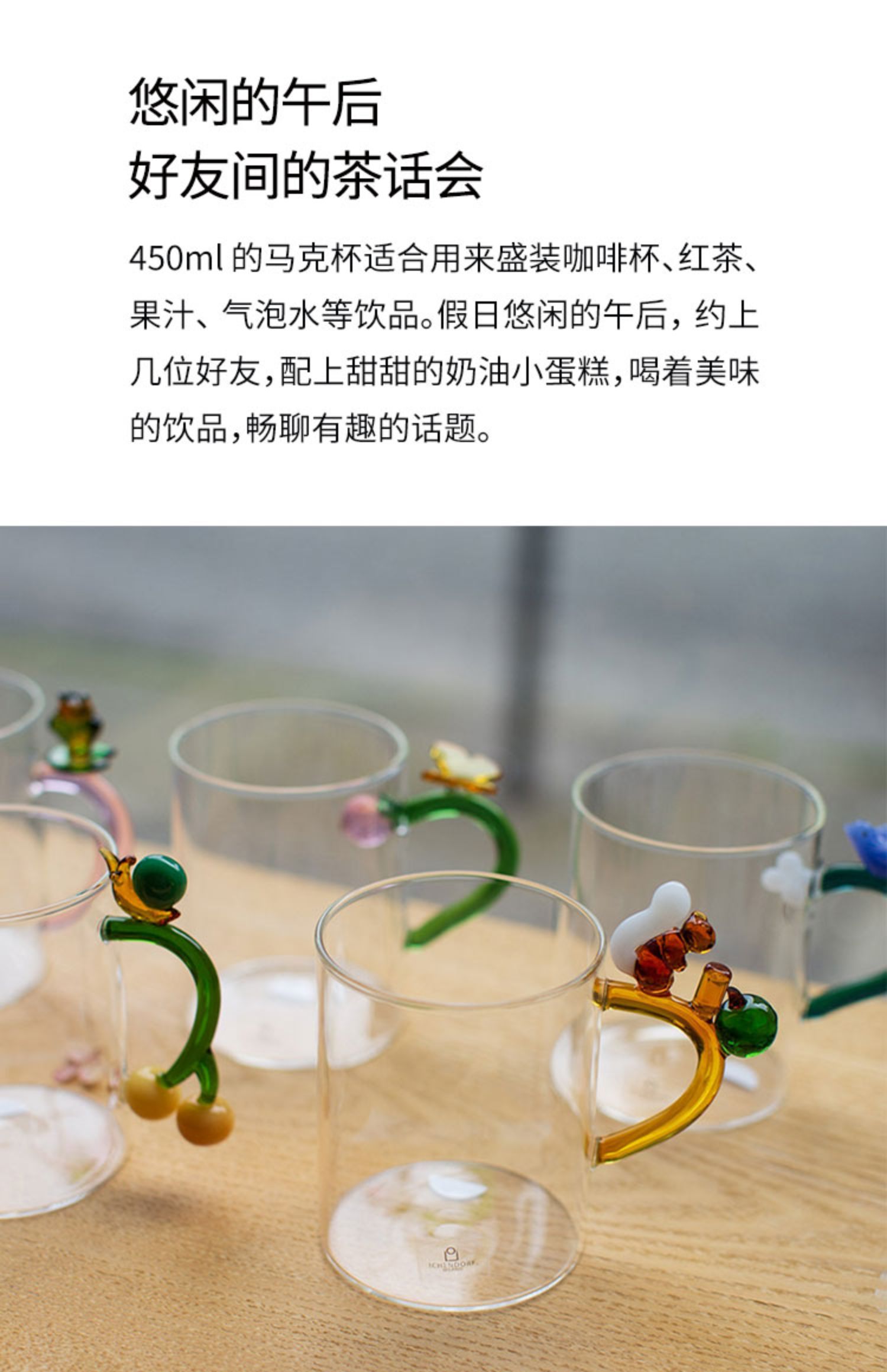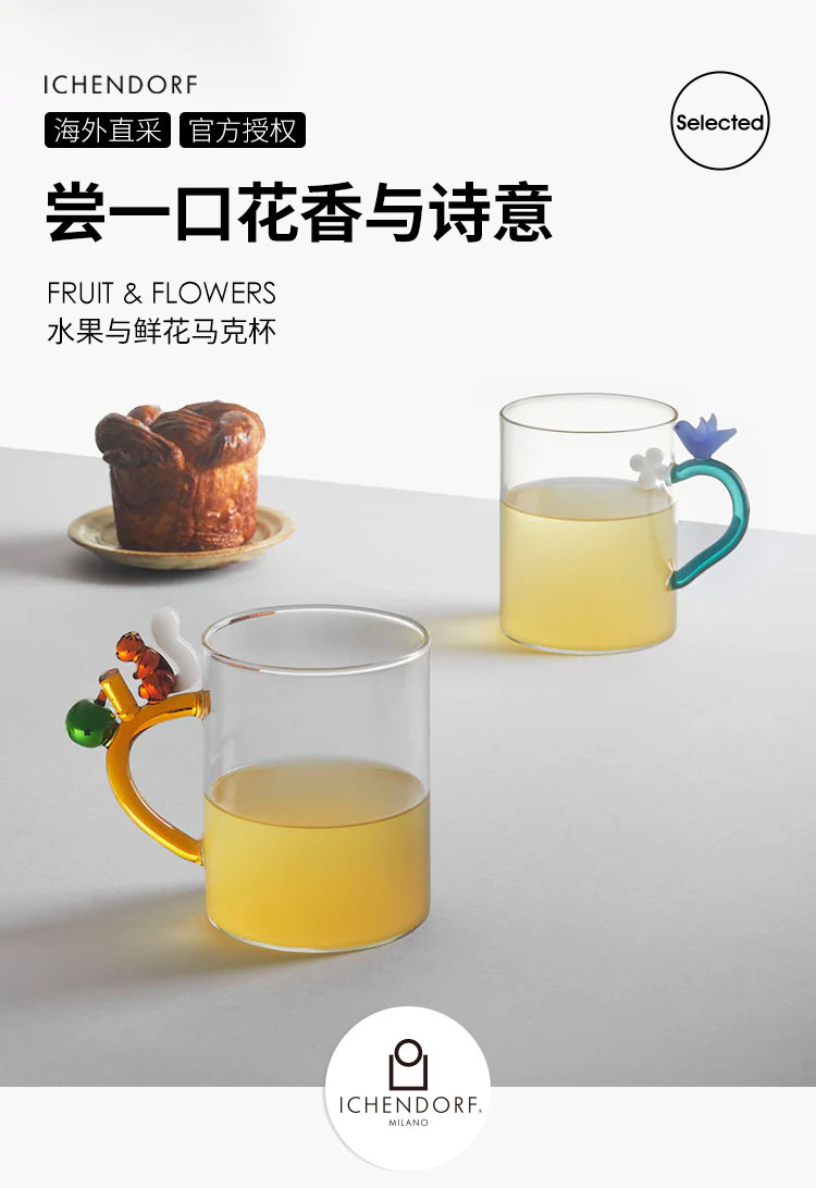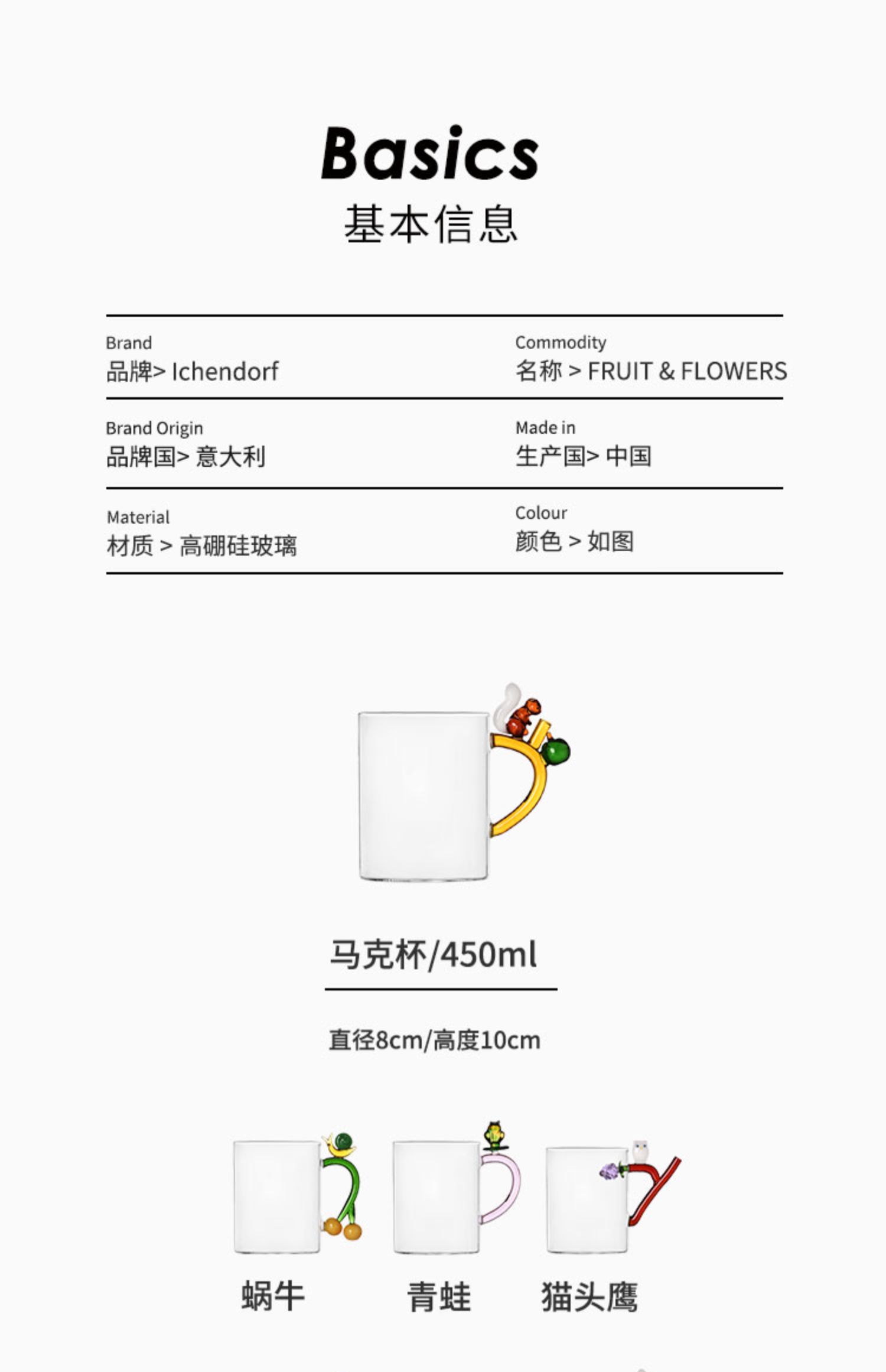 Ichendorf 花果挂⽿杯 450ml 立体动物马克杯高颜值透明玻璃咖啡杯 礼物