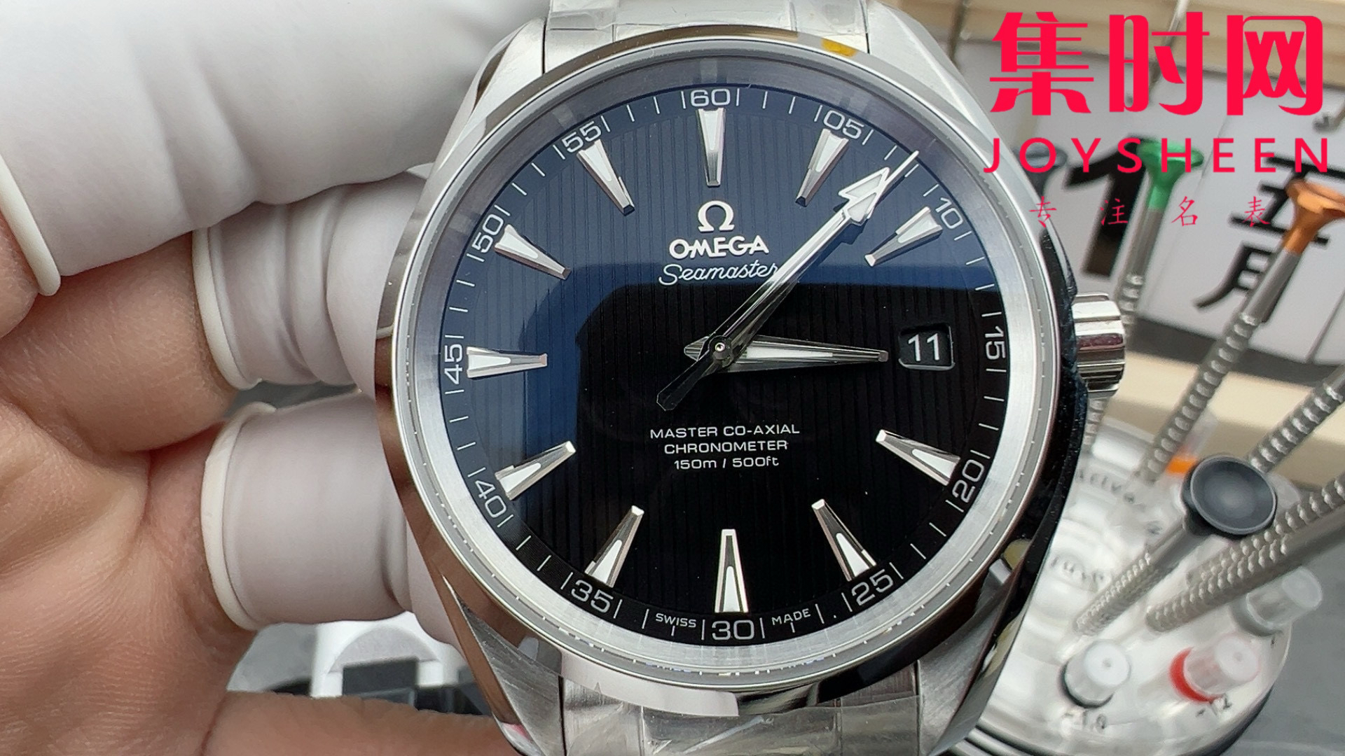 欧米茄VS海马150米系列 黑色盘 3点位日历 Aqua Terra 150米腕表 8500一体机 男士腕表 表径41.5mm 黄金尺寸,适配多数腕围,日常通勤与正式场合皆能hold住!