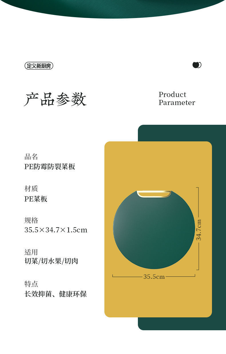 【高颜值 | 可挂可立可旋转】家用PE环保防霉砧板 圆形切菜板 水果案板厨房