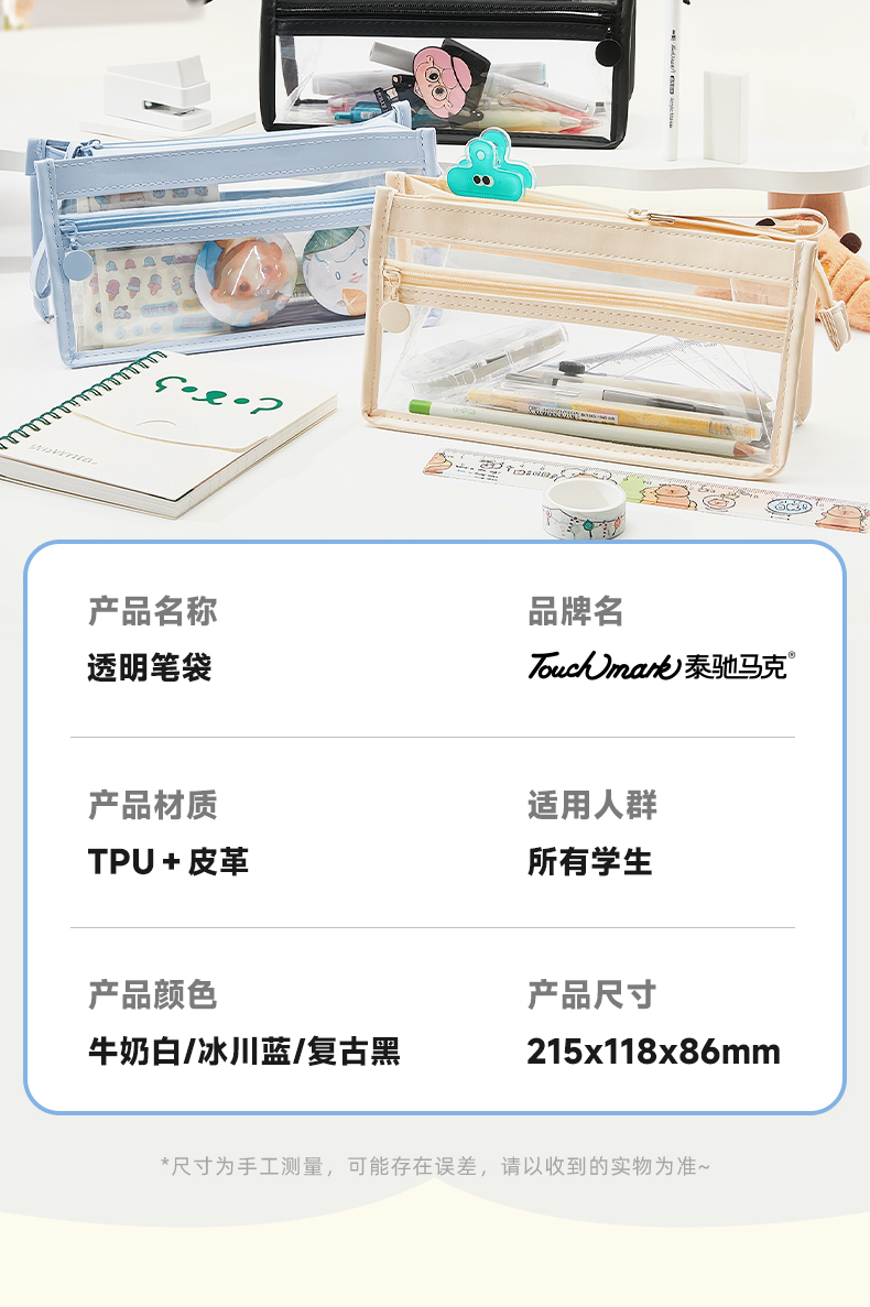 Touchmark泰驰马克ins风透明笔袋多巴胺笔袋