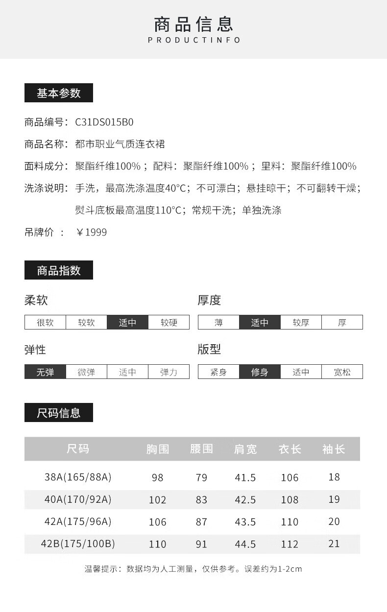 皮尔卡丹女装新款通勤都市职业修身连衣裙C31DS015B0