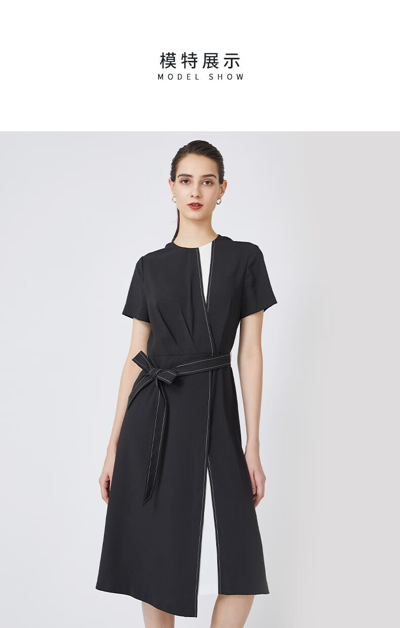 皮尔卡丹女装连衣裙衬衫V领短袖假两件通勤淑女裙子P3215D3075Z3