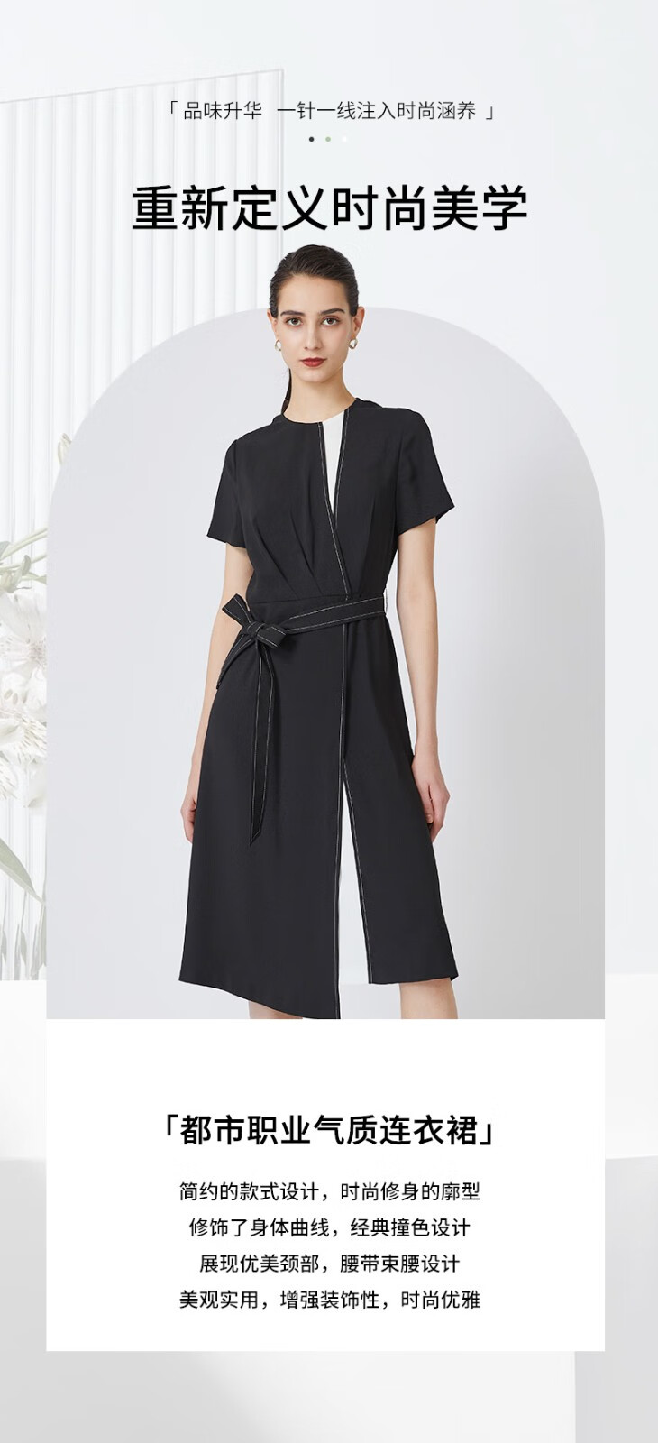 成熟、稳重、高贵典雅、大方得体 融合东方文化的含蓄和法国的浪漫 将创意的艺术性与消费需求相结合 为自信女性塑造高品质场合服装
