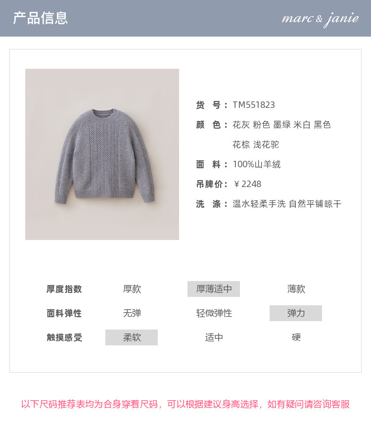 【100%山羊绒】马克珍妮男女童康赛妮云感保暖羊绒衫冬装551823